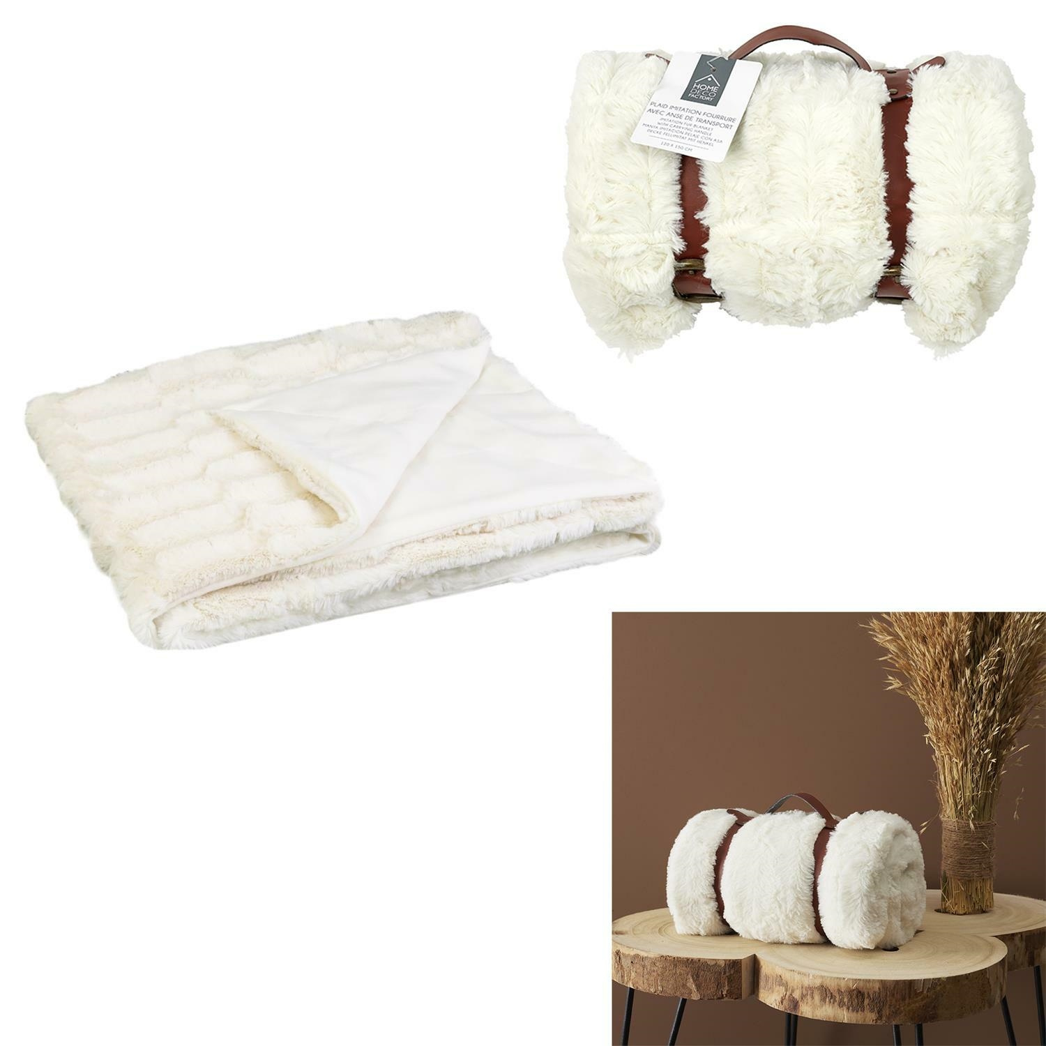 Koc Furry to biało-kremowy koc o bardzo miłej w dotyku strukturze z włókien poliestrowych. Koc Furry wyposazony został w skóropodobna sprzączkie, dzięki której możemy z łątwością przenosić zwinięty koc.Cechy produktu