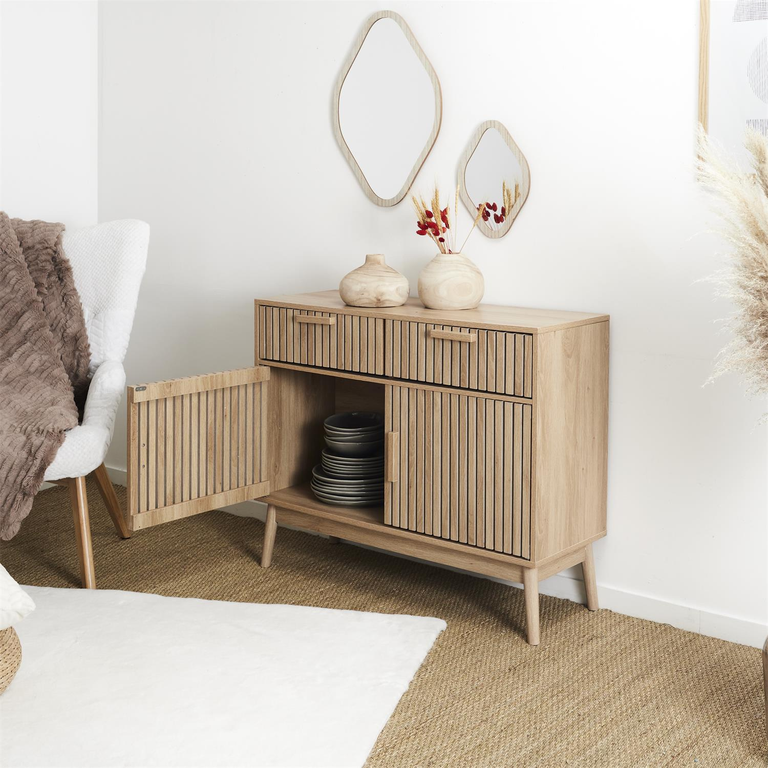 Komoda Klaus 2 szuflady, 2 szafki naturalna