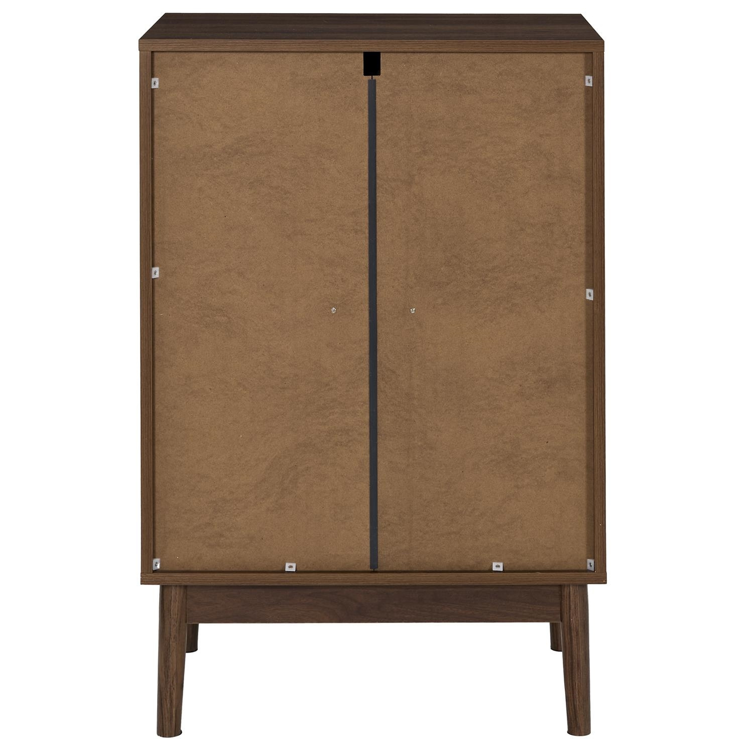 Komoda wymaga montażu Materiał: Płyta MDFw okleinie imitującej orzech. Nogi drewno sosnowe, uchwyty metal. Komoda wyposażona w 2 fronty za którymi kryją się dodatkowe półki. Max. obciążenie mebla 40kg.