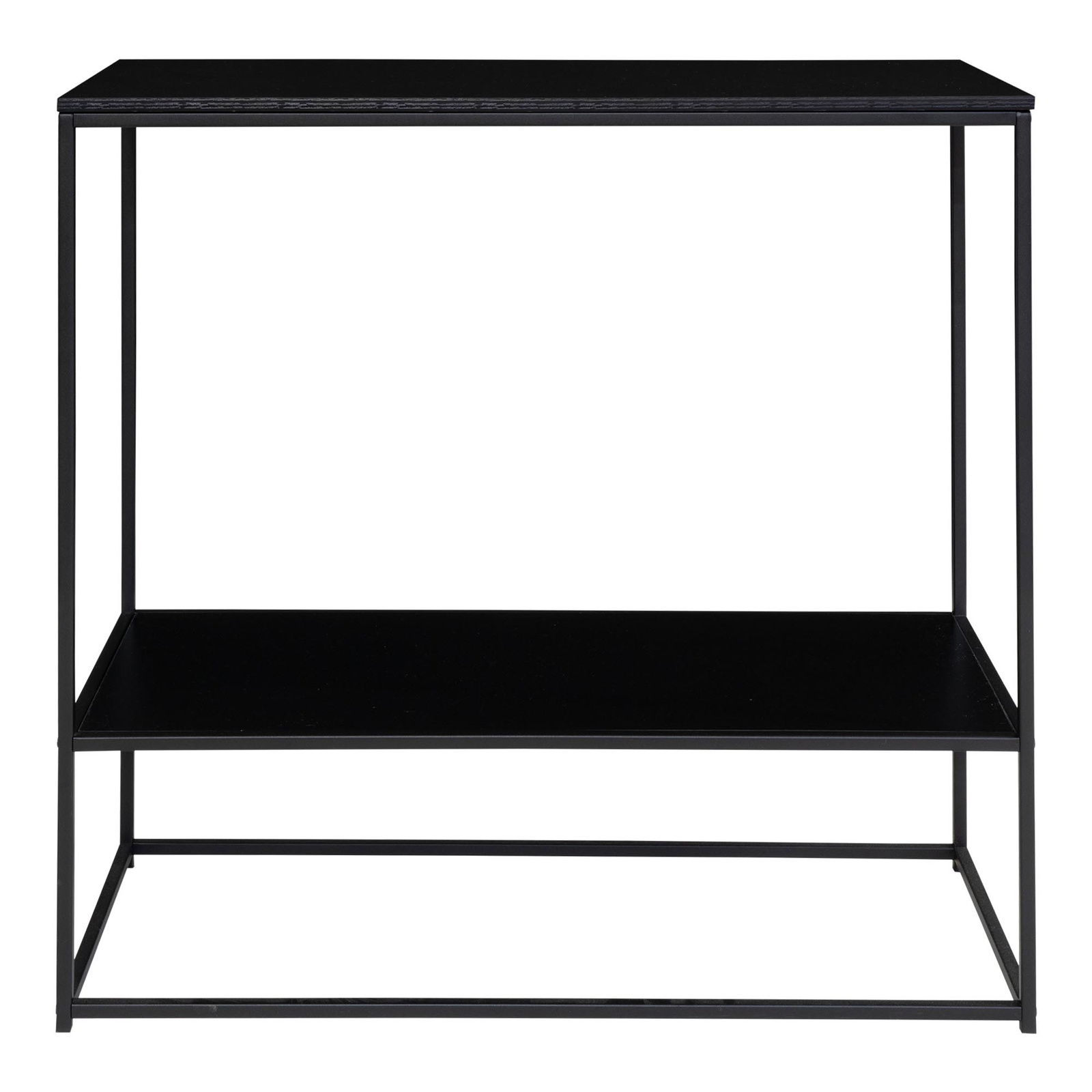 - Loftowa konsola Vita z blatem oraz półką w czarnej okleinie to niepowtarzalny mebel, który pełni kluczową rolę w każdym nowoczesnym przedpokoju lub salonie. Konsola to mebel, na którym możemy ustawić swój ulubiony wazon z suszonymi trawami pampasowymi, al