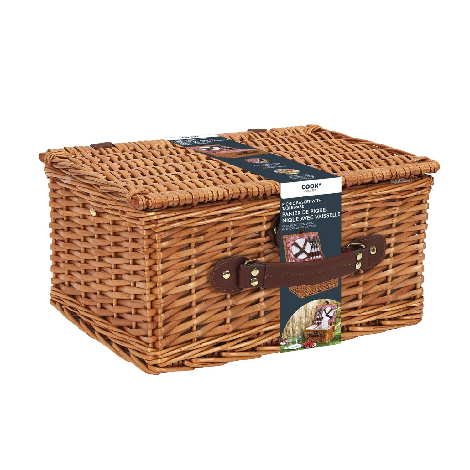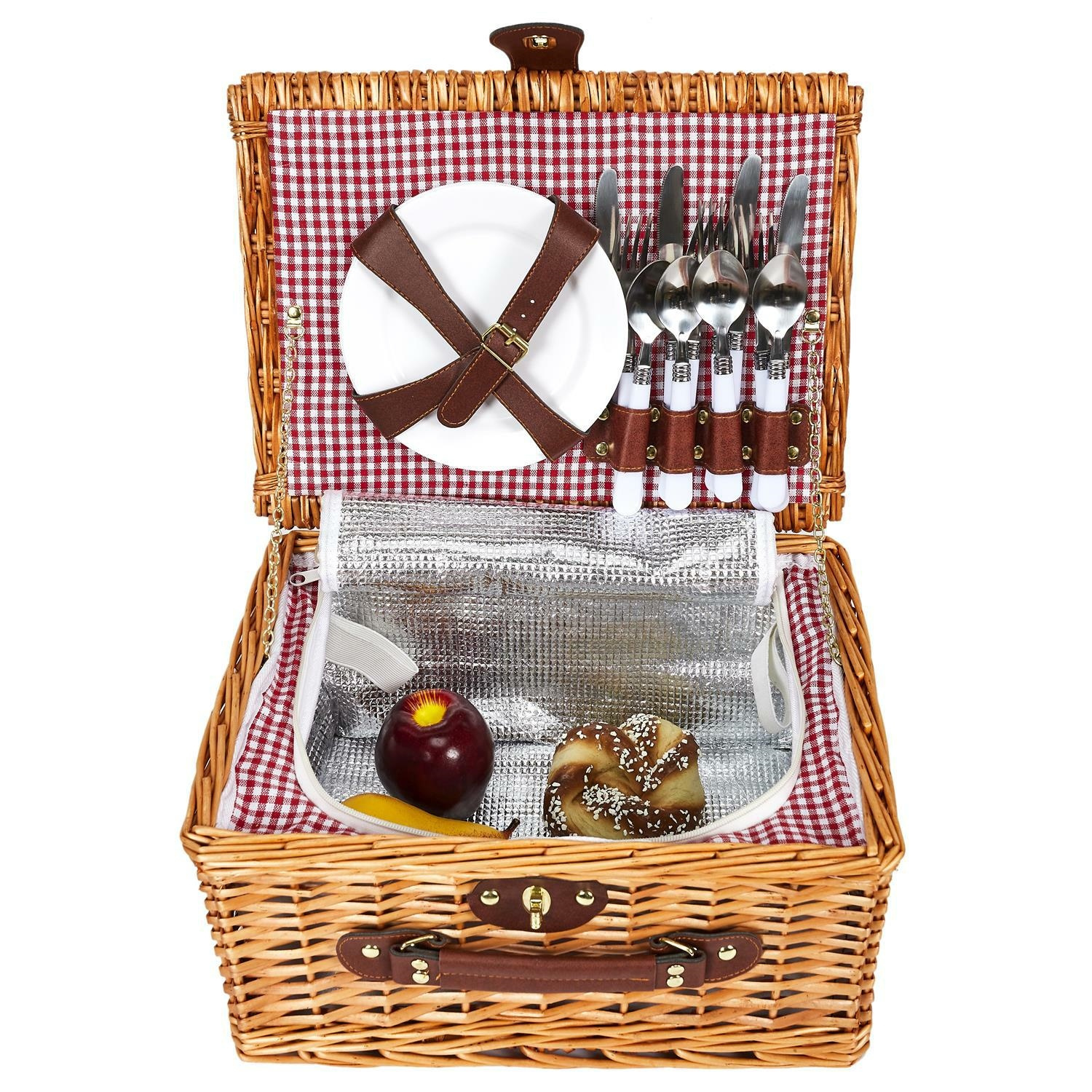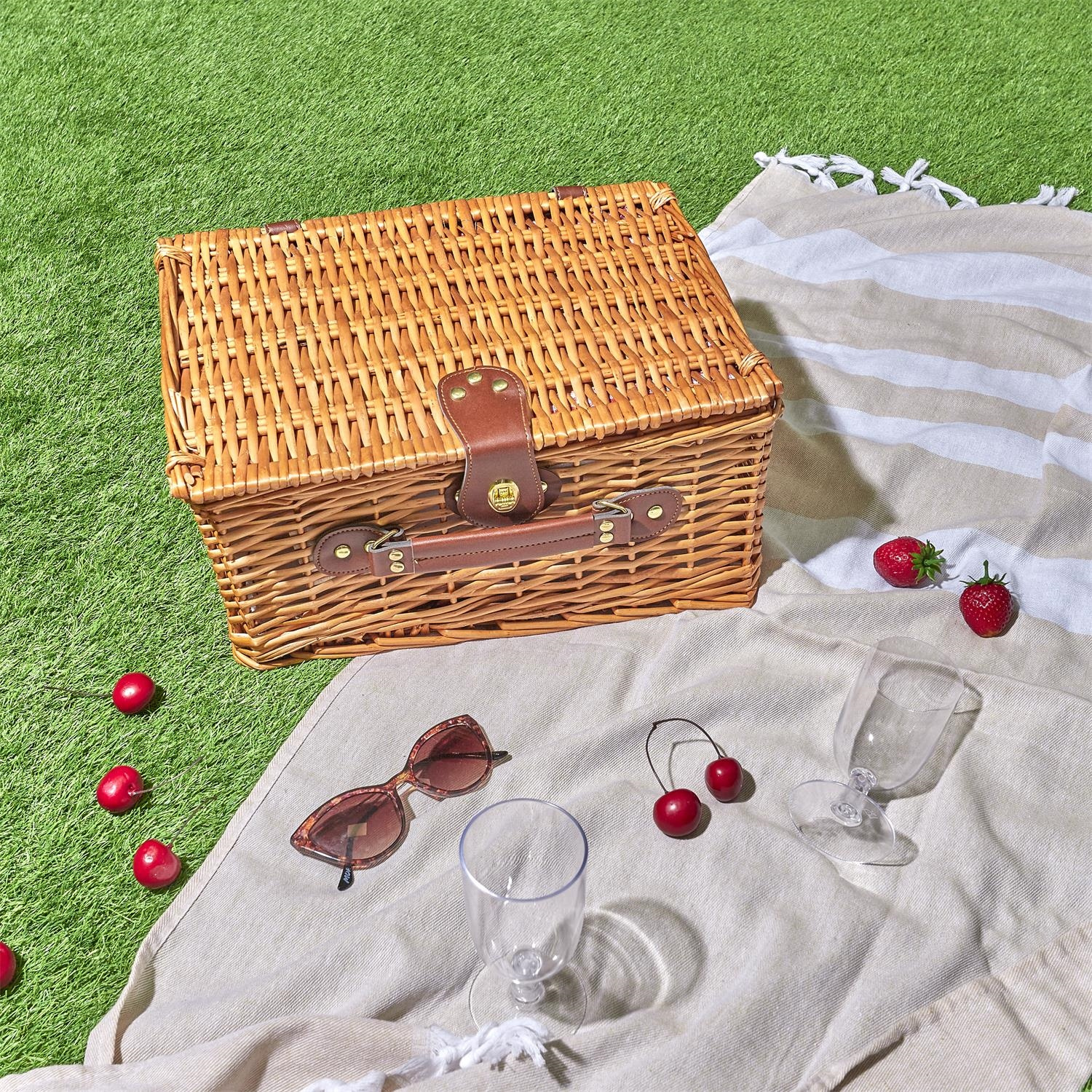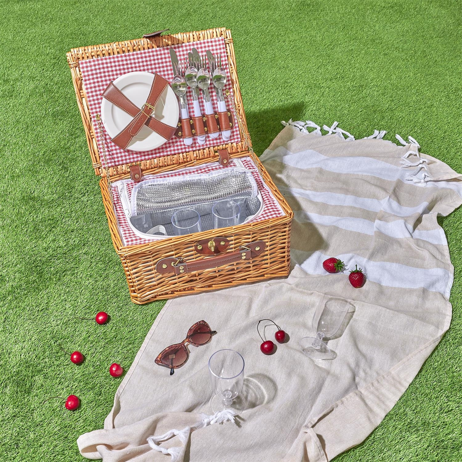 Kosz piknikowy z zastawą dla 4 osób wiklinowy