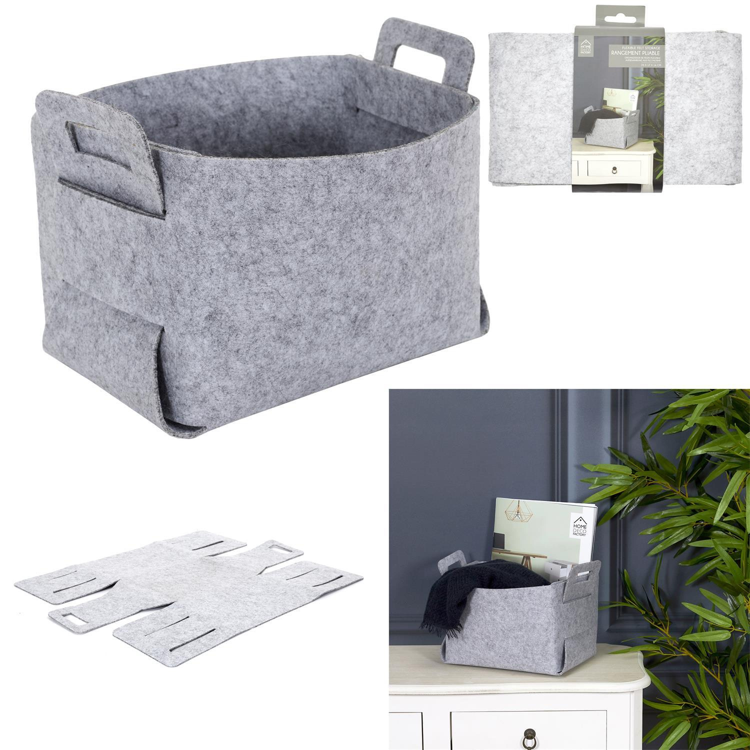- Składany kosz/ pudełko filcowe to idealny pojemnik do przechowania drobnych przedmiotów. Filcowe pudełko można złożyć gdy je potrzebujemy. Jest to idealny pojemnik do pstawienia w przedpokoju na szaliki lub czapki. Materiał: filc Wymiary kartonu: 23x22x44