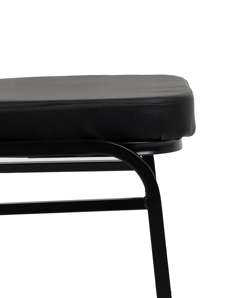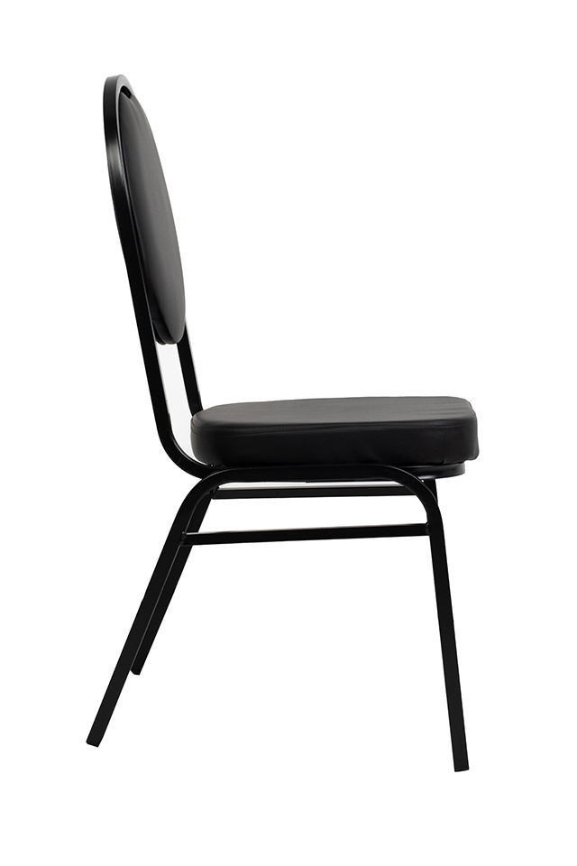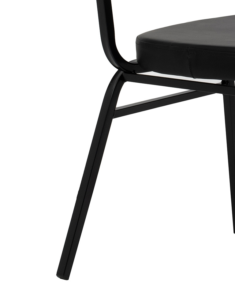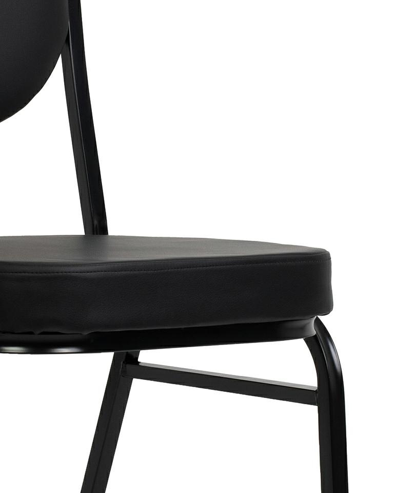 Krzesło bankietowe / konferencyjne HEBE czarne. Uniwersalne krzesło konferencyjno-bankietowe o eleganckim, ponadczasowym wyglądzie. Tapicerowanie czarną ekoskórą nadaje mu profesjonalny charakter i jest łatwe do utrzymania w czystości. Stabilna stalowa rama w kolorze czarnym podkreśla nowoczesny styl, a jednocześnie zapewnia solidność i odporność na intensywne użytkowanie. Prosty, ergonomiczny kształt sprawia, że krzesło doskonale sprawdzi się zarówno podczas konferencji, jak i uroczystości okolicznościowych. Model Hebe łączy funkcjonalność z estetycznym wyglądem, oferując komfort i trwałość w codziennym użytkowaniu. Wymiary: wys. 93,5 cm / szer. 44 cm / gł. 56 cm Wysokość do krawędzi siedziska: 46 cm Siedzisko: szer. 39 cm / gł. 40 cm Oparcie: wys. 40 cm / szer. 35 cm Rozstaw nóg: szer. 45 cm / gł. 51 cm Maksymalna nośność: 140 kg.Cechy produktu