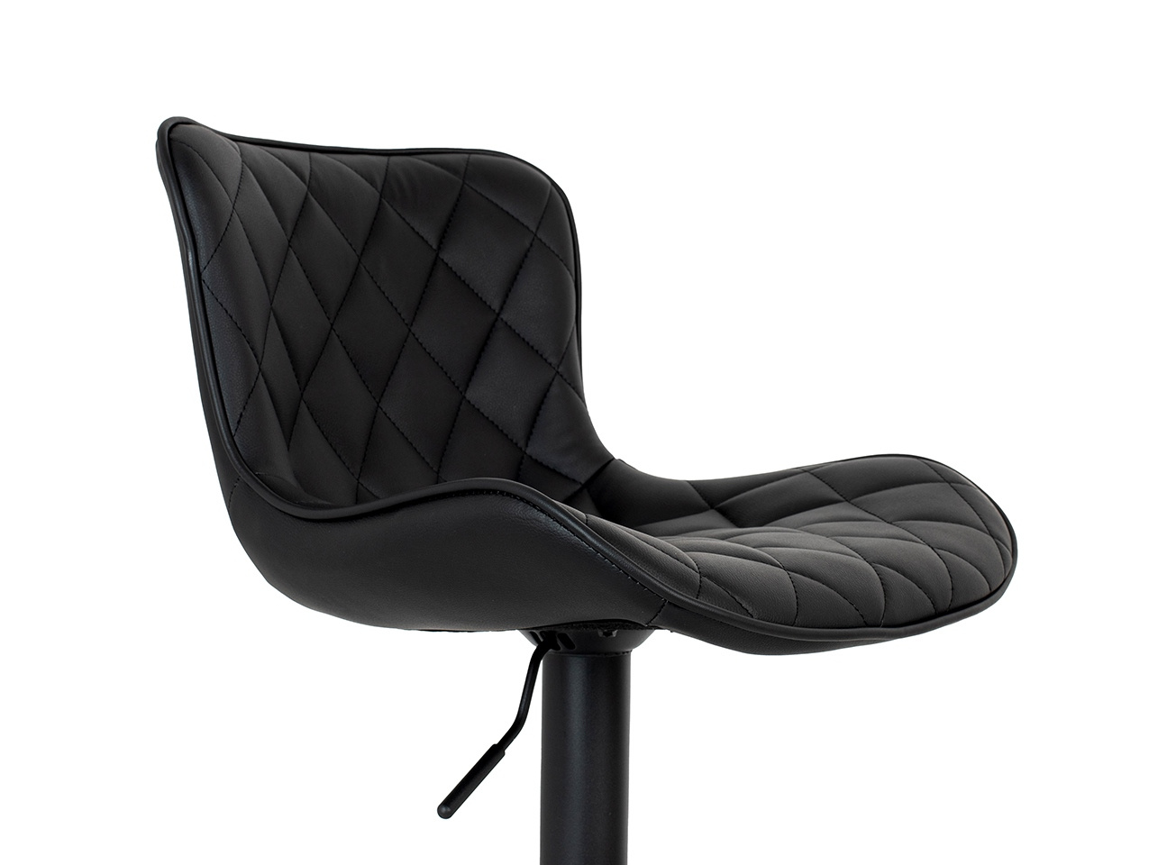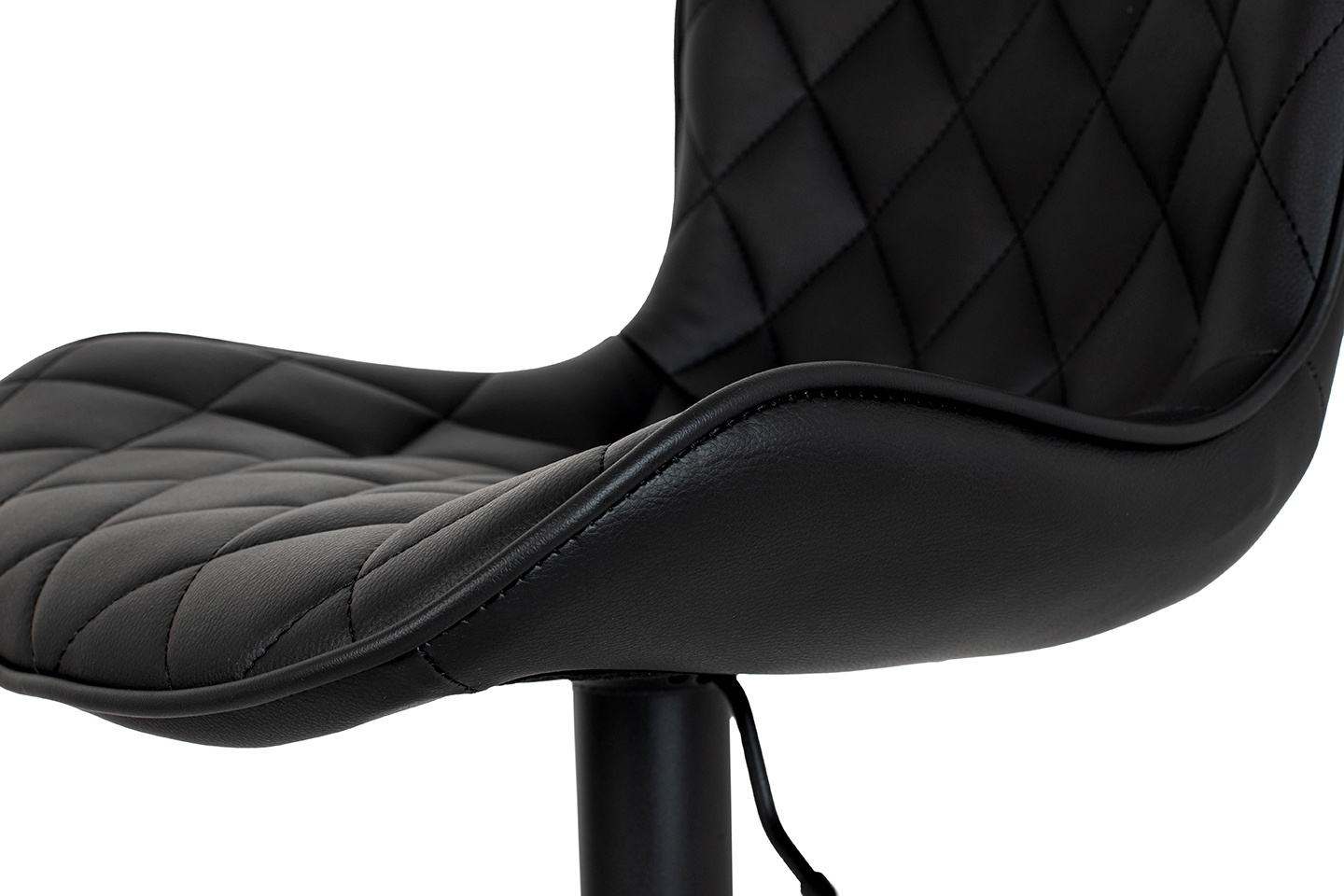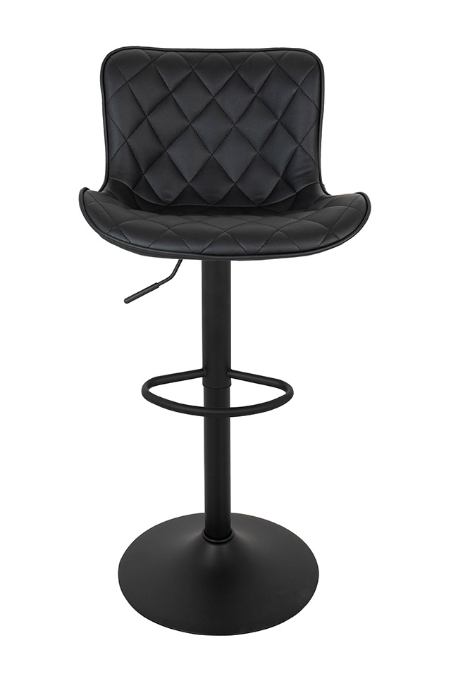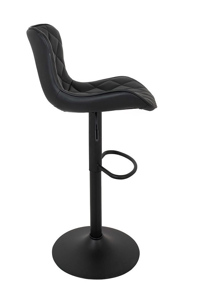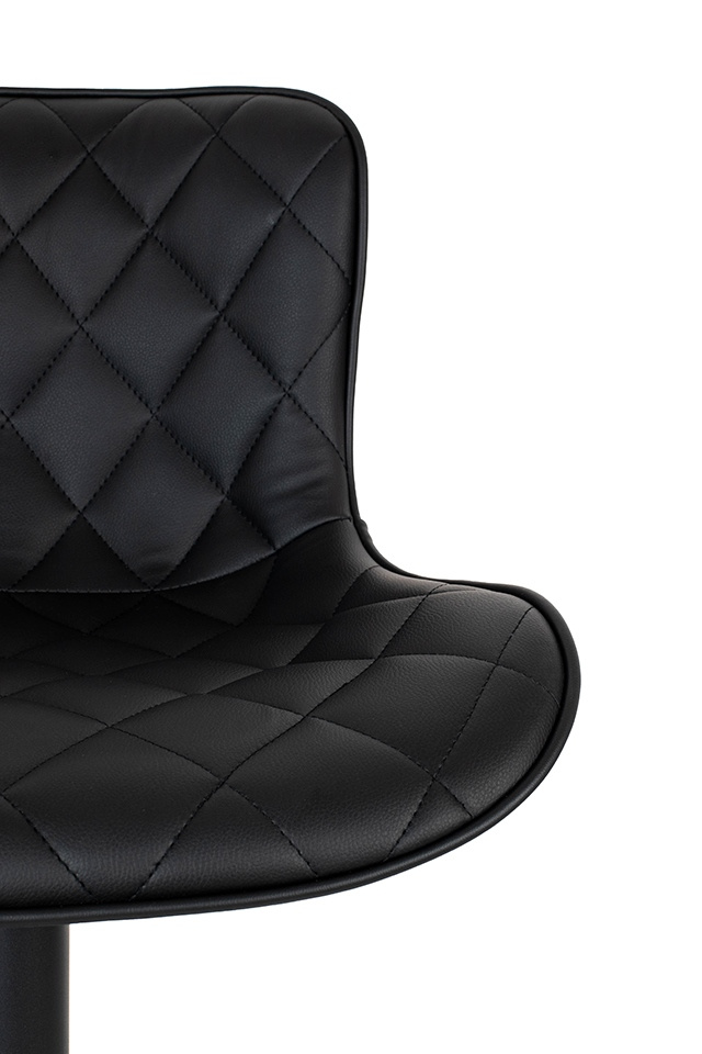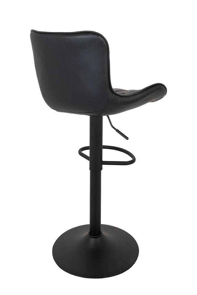 Krzesło barowe FAVIUS. Nowoczesny, minimalistyczny design idealny do loftowych wnętrz. Wyprofilowane siedzisko wykonano z czarnej skóry PU o pikowanym zdobieniu, co nadaje elegancki i nowoczesny wygląd. Czarna, matowa podstawa z podnóżkiem dodaje stabilności oraz wygodnego wsparcia dla nóg. Możliwość regulacji wysokości siedziska pozwala dopasować je do indywidualnych potrzeb i preferencji. Favius polecamy do uzupełnienia aranżacji kuchni, baru lub stolika barowego. Wymiary: wys. 82 cm - 107 cm / szer. 48 cm / gł. 51 cm Wysokość do krawędzi siedziska: 51 cm - 81 cm Siedzisko: szer. 48 cm / gł. 38 cm Oparcie: wys. 30 cm / szer. 40 cm Podstawa: śr. 43 cm Podnóżek: szer. 29 cm / gł. 18 cm / gr. 2 cm Wysokość do podnóżka: 15 cm - 40 cm Długość rączki do regulacji: 15 cm.Cechy produktu