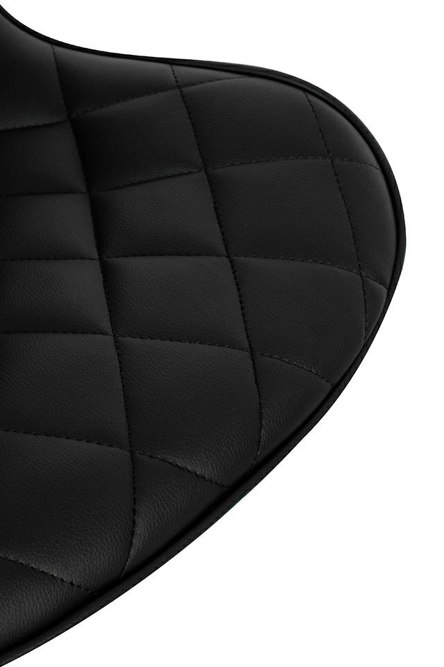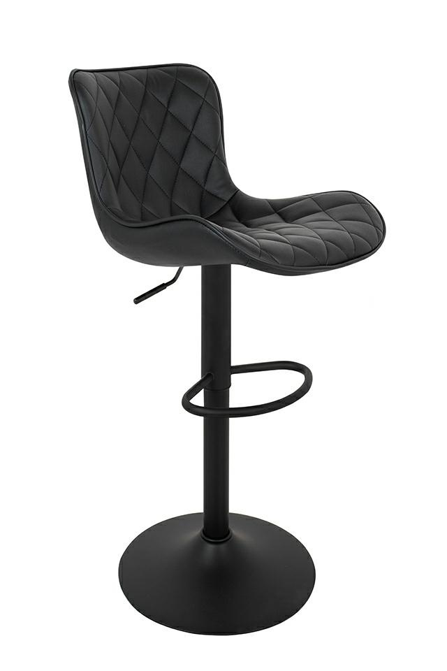 - Krzesło barowe FAVIUS. Nowoczesny, minimalistyczny design idealny do loftowych wnętrz. Wyprofilowane siedzisko wykonano z czarnej skóry PU o pikowanym zdobieniu, co nadaje elegancki i nowoczesny wygląd. Czarna, matowa podstawa z podnóżkiem dodaje stabilno