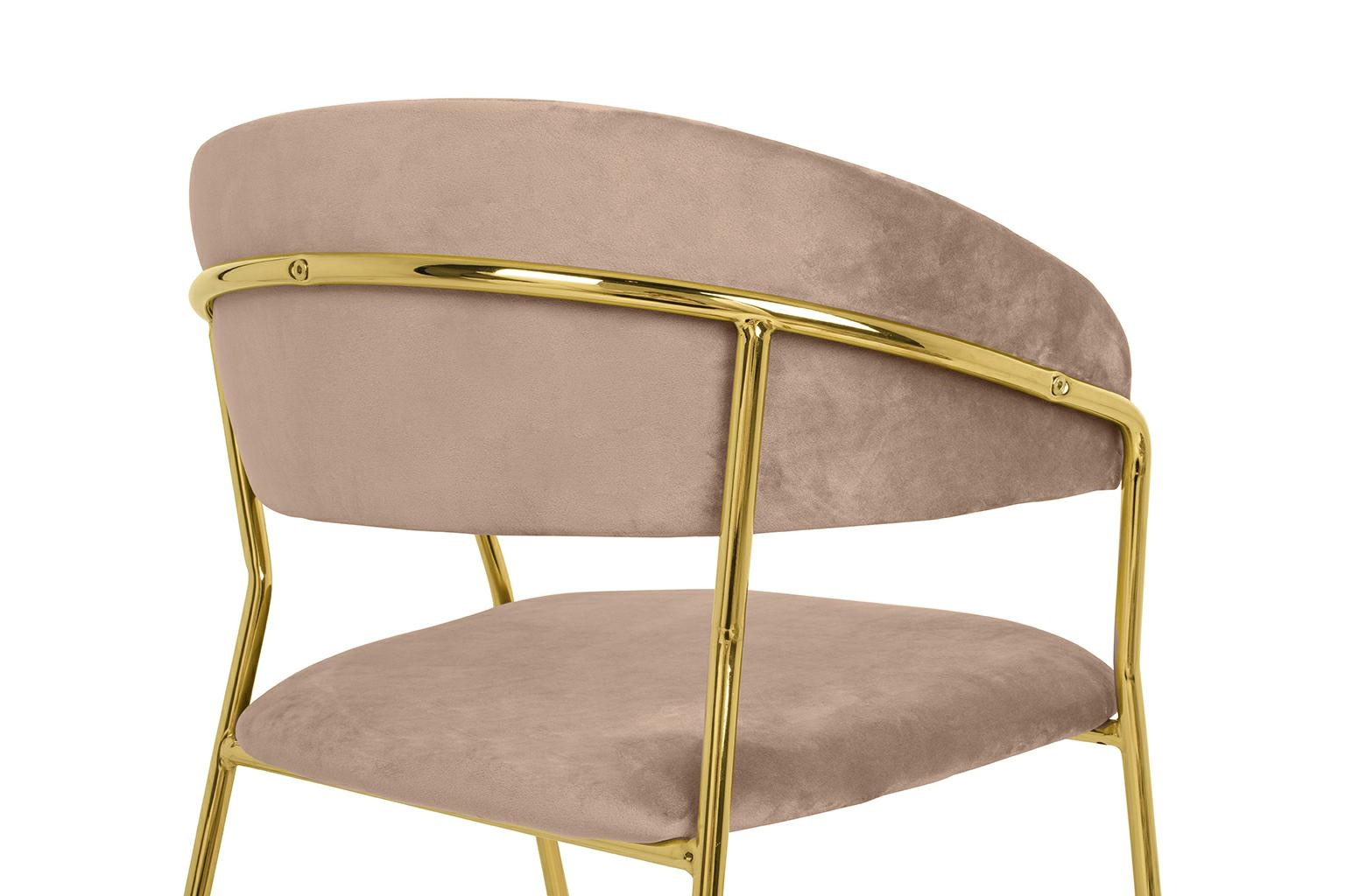 - Krzesło barowe MARGO w kolorze khaki. Siedzisko i oparcie tapicerowane miękkim i przyjemnym w dotyku welurem. Mocna i stabilna konstrukcja wykonana została z metalu w kolorze złotym, błyszczącym. Doskonałe połączenie modnej tkaniny i złota. Pionowe przesz