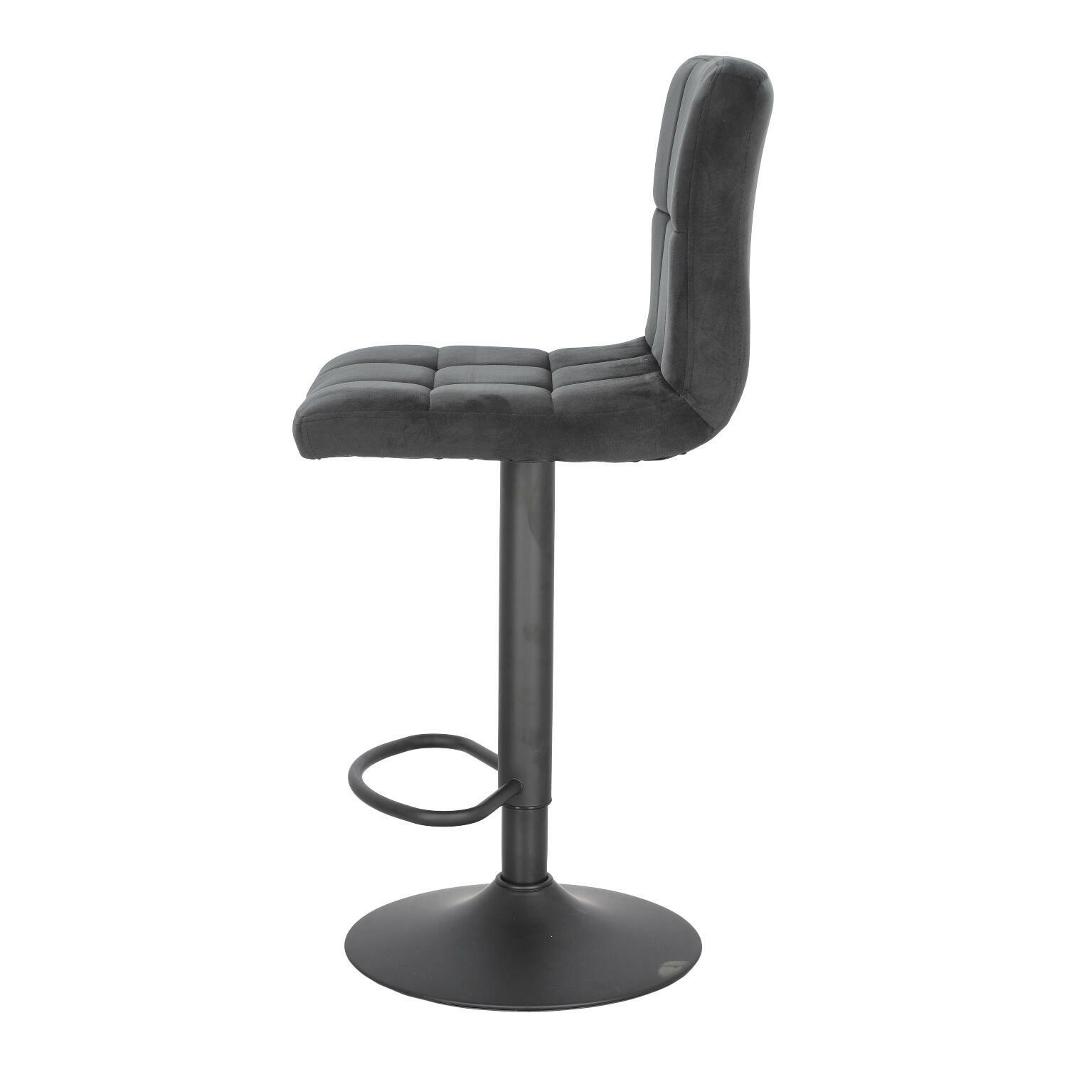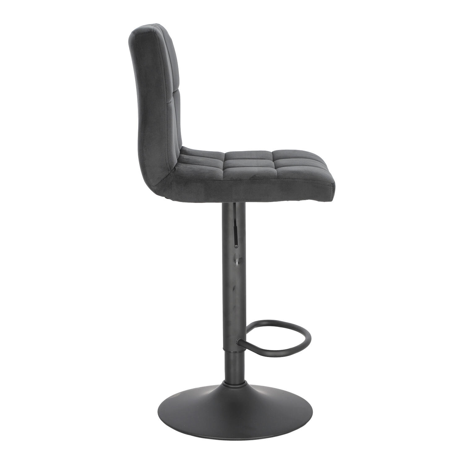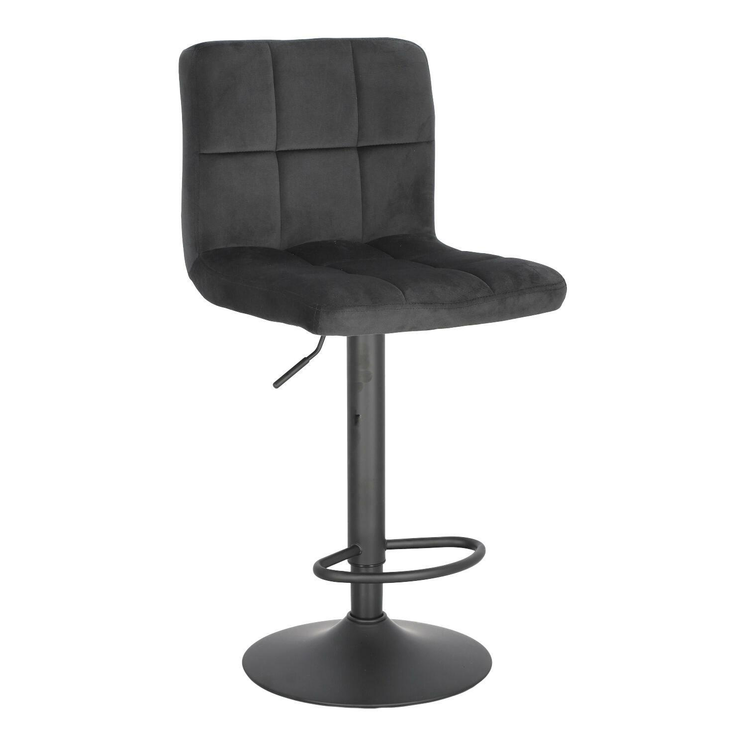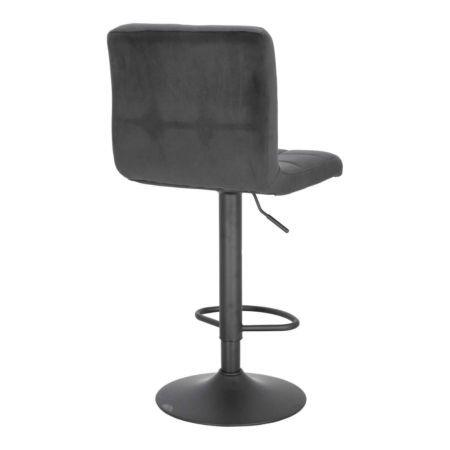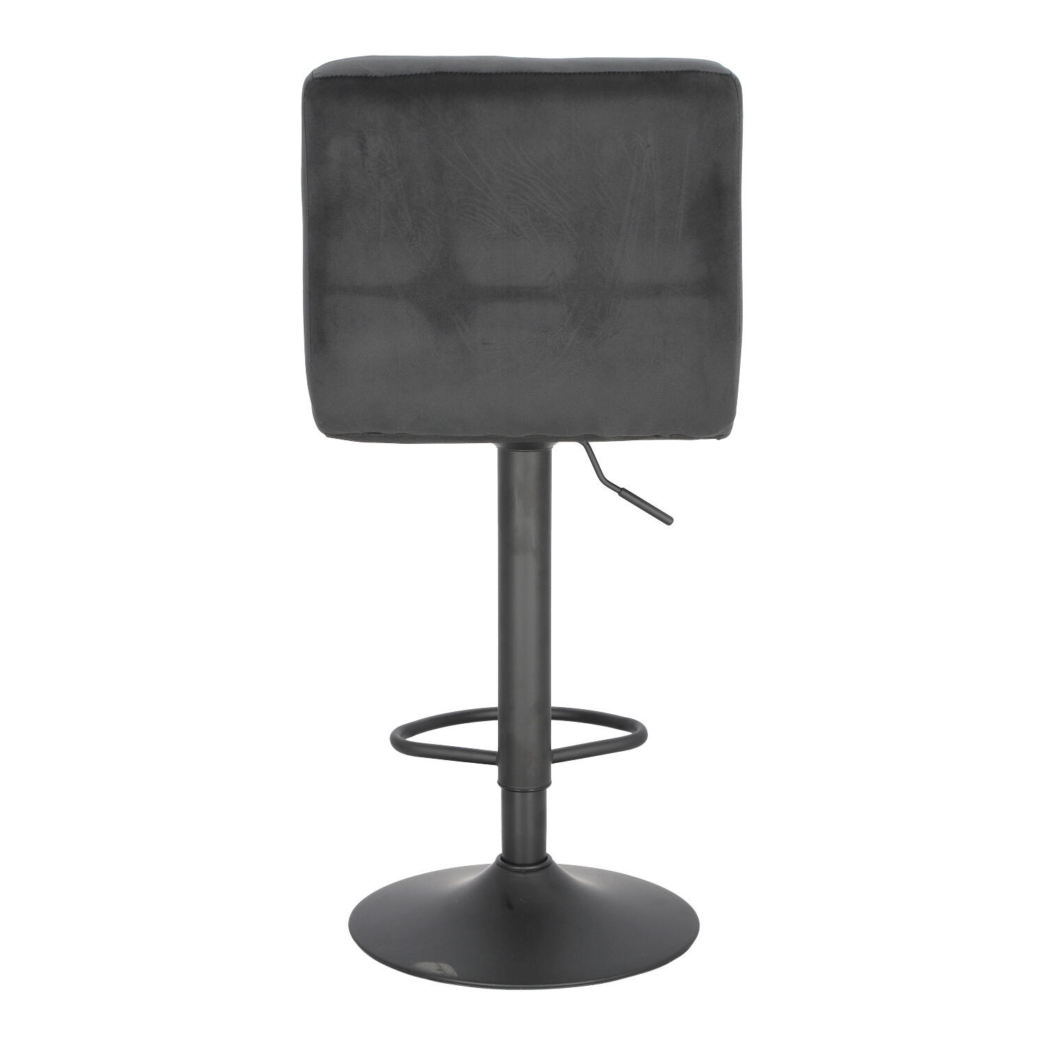 Hoker Dafne do modne regulowane krzesło barowe, które dostosuje się do naszej wyspy lub baru. Pikowane siedzisko oraz oparcie obite zostało miękką welwetową tkaniną. Pod tkaniną kryje się komfortowa pianka tapicerska o miękkiej i zwartej strukturze. Krzesło o regulowanej wysokości w skali 10 cm, pozwoli na dowolną konfigurację wysokości siedzenia. Na nodze hokera umieszczona została podpórka na stopy. Metalowa, malowana proszkowo podstawa ma kształt trąbki, tj smukła noga rozszerza się ku dołowi. Takie rozwiązanie jest stabilne. Wysokość:87-107 Szerokość: 40 Głębokość: 38 Wysokość siedziska: 63-83, Max. obciążenie: 120kgCechy produktu