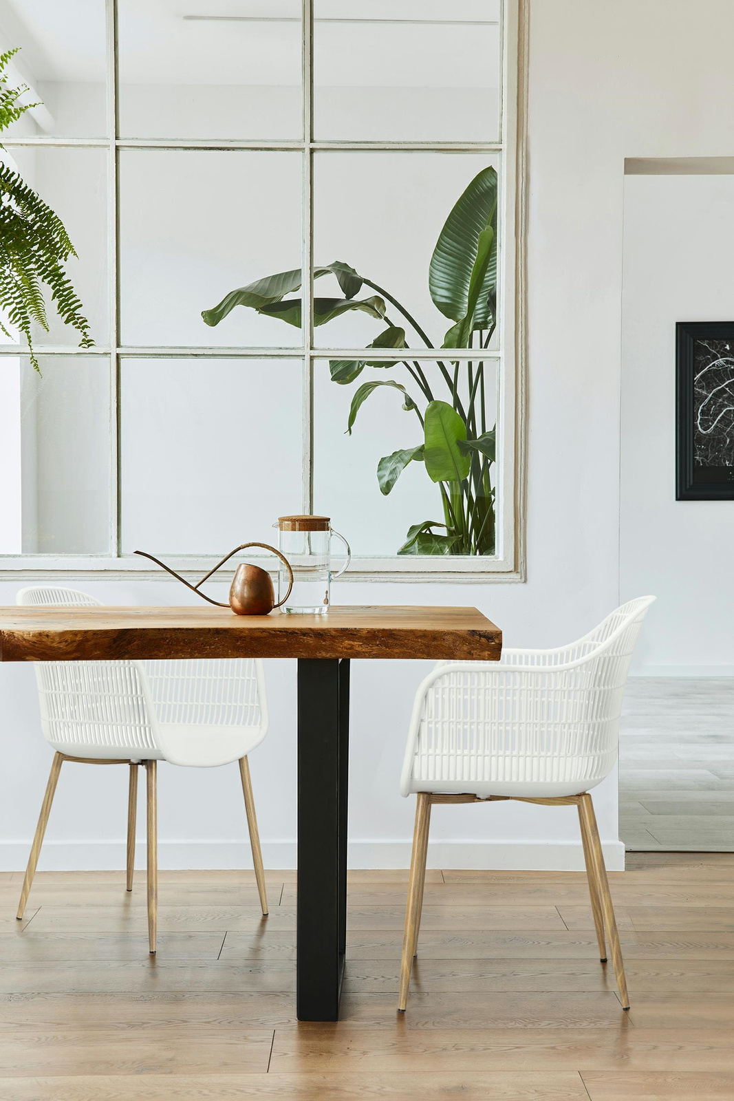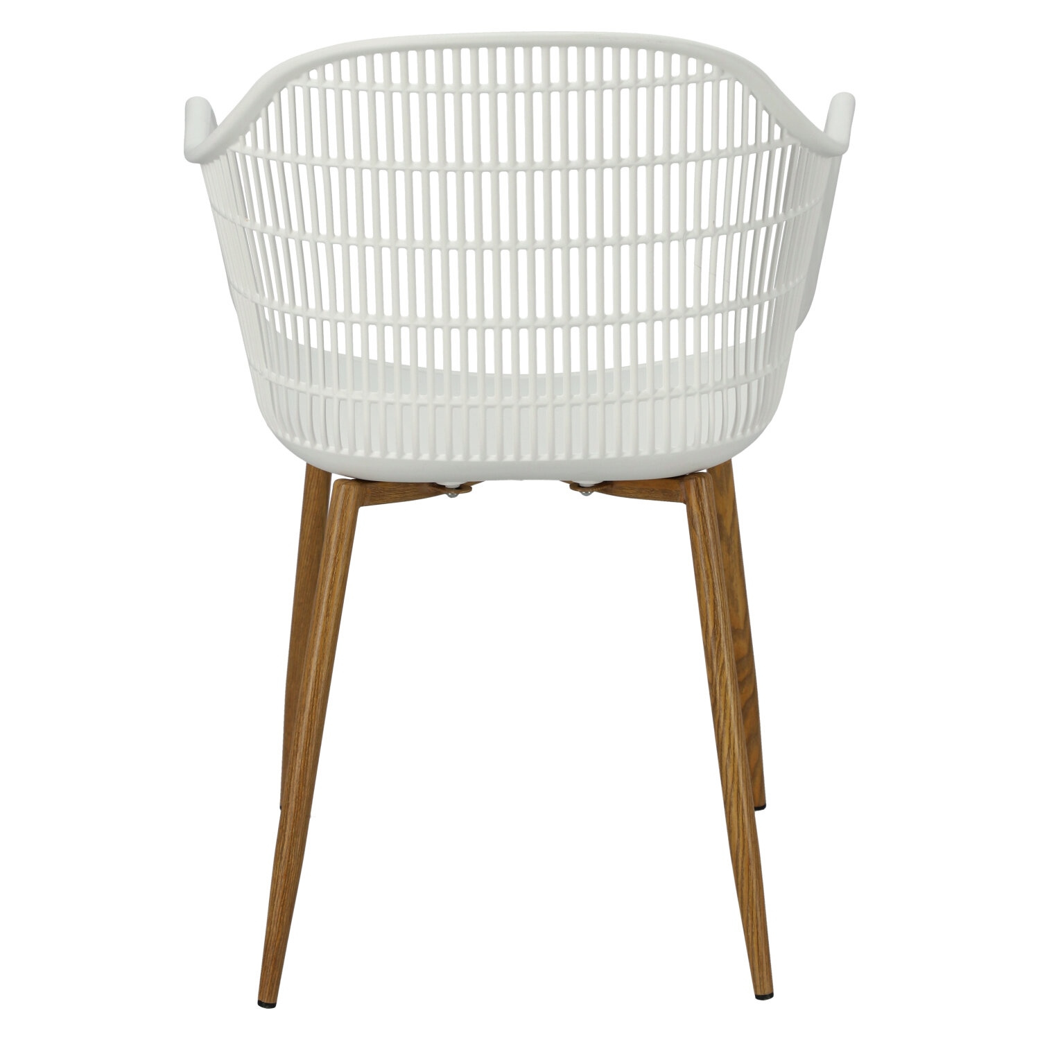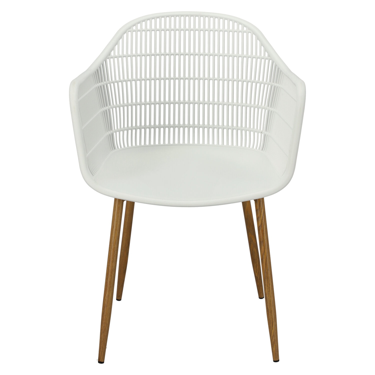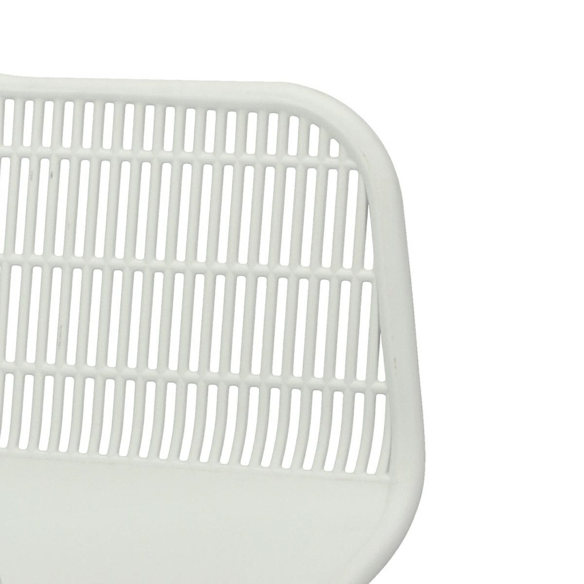 Nowoczesne krzesło Becker zostało wykonane z wytrzymałego tworzywa w kolorze białym. Polipropylen użyty w siedzisku posiada matowe wykończenie, jest łatwy w czyszczeniu i odporny na zabrudzenia, ponadto cechuje się również wytrzymałością. Charakterystyczne siedzisko, podłokietniki i oparcie przypominają siatkę. Podstawa krzesła wykonana została z metalu pokrytego okleiną o strukurze drewna. Okleina użyta w podstawie posiada półmatowe wykończenie. Maksymalne obciążenie krzesła wynosi 120kg. wysokość podłokietników od siedziska 27 cm głębokość siedziska 45 cm szerokość siedziska 48 cm WymiCechy produktu