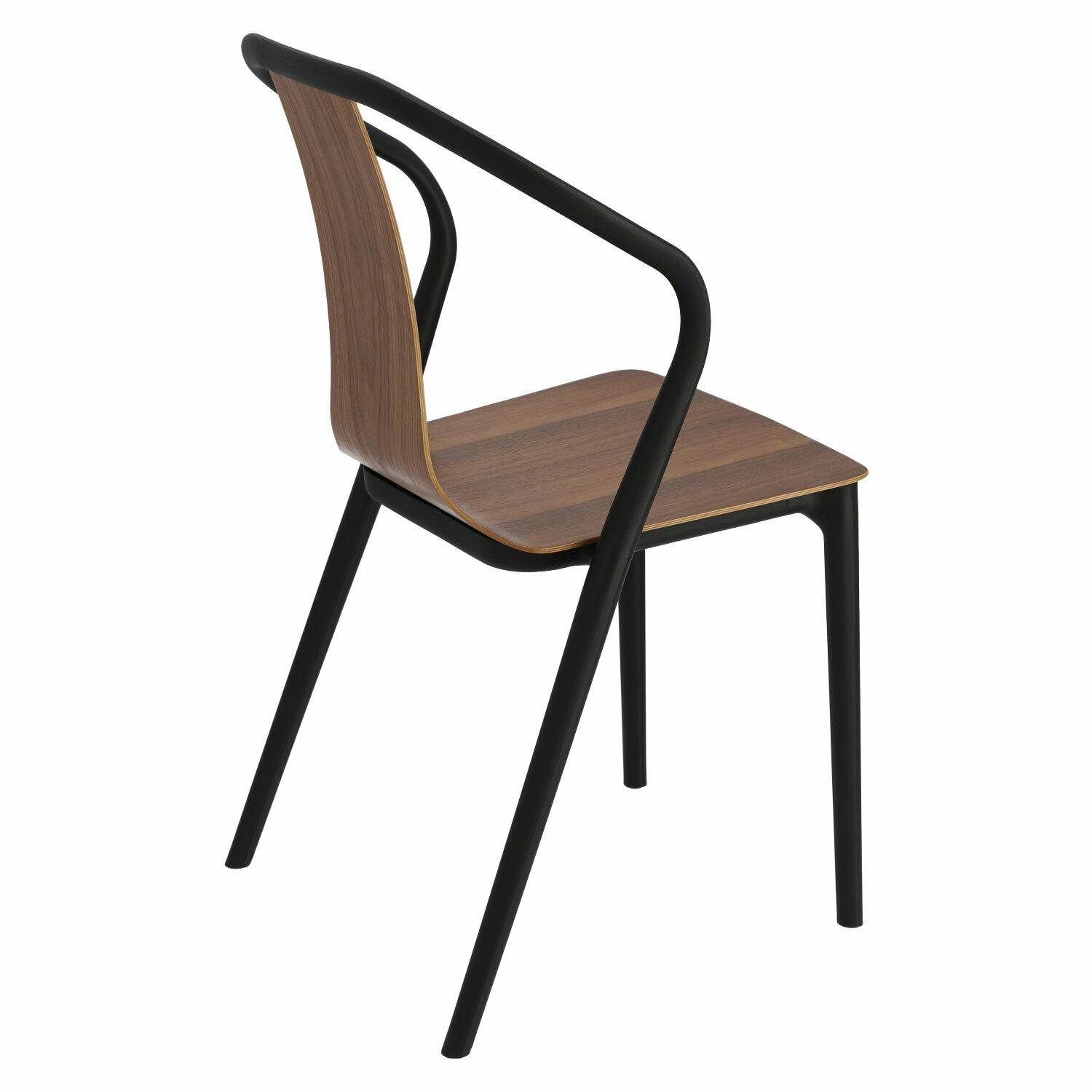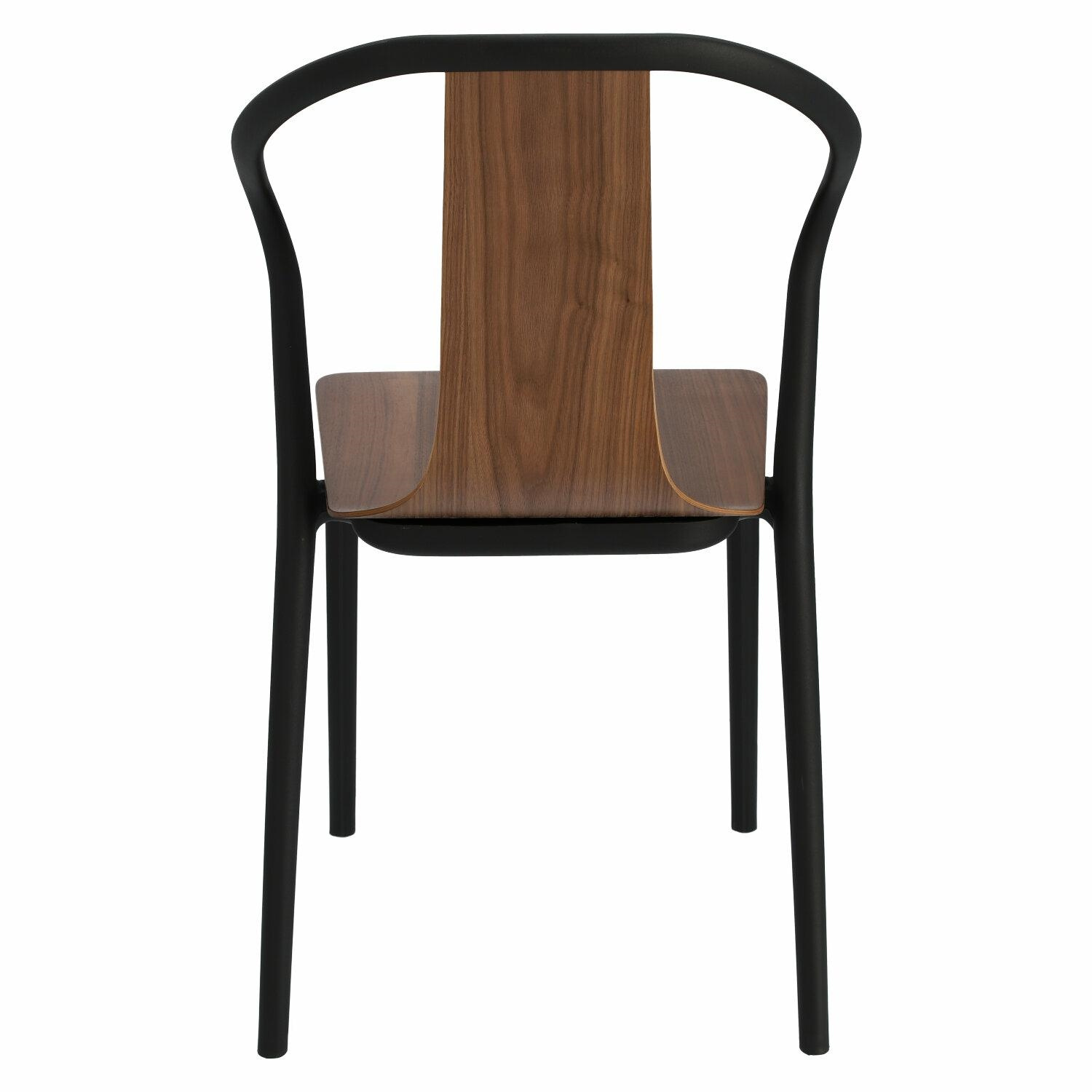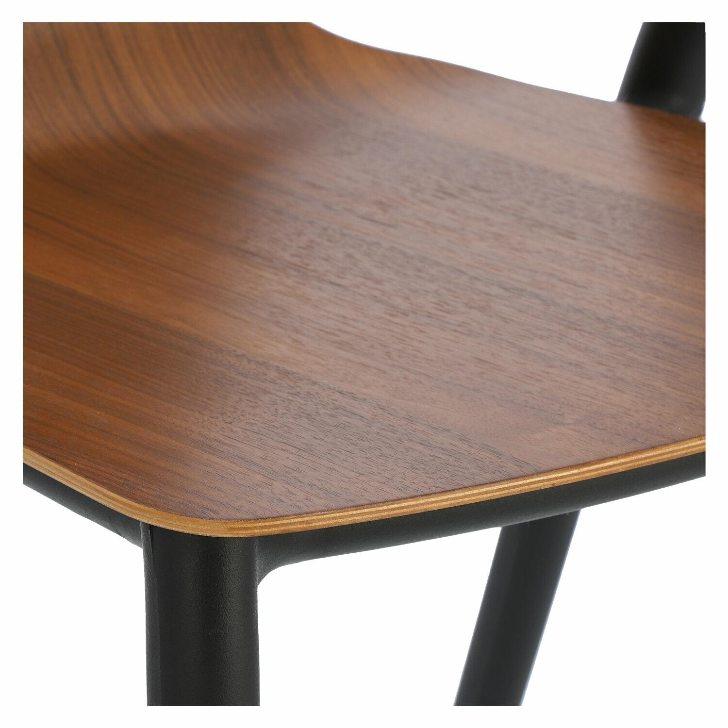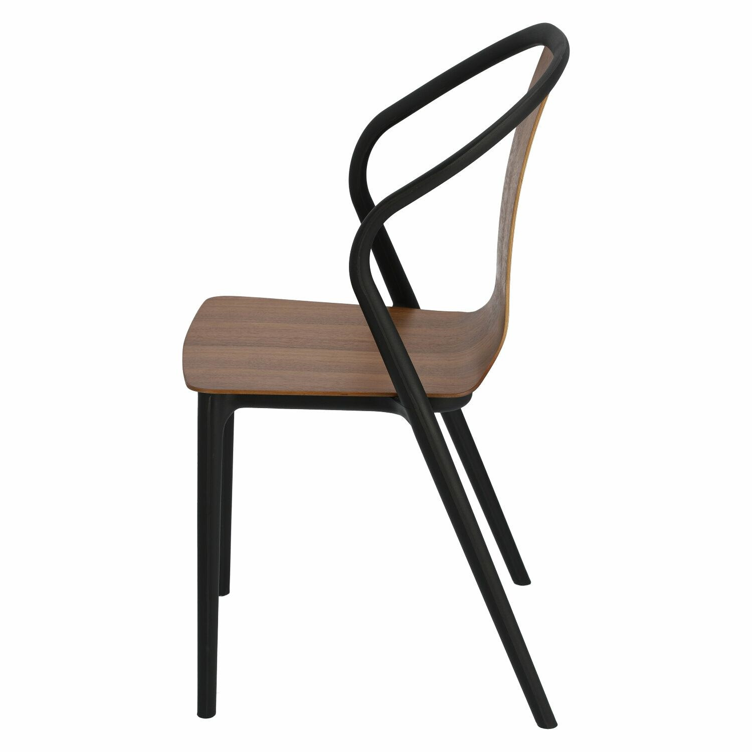 Nowoczesne krzesło Bella wykonane zostało z niezwykle wytrzymałego tworzywa oraz drewna. Siedzisko w orzechowym kolorze doskonale komponuje się z czarną podstawą. Polipropylen użyty w krześle ma matowe wykończenie, jest łatwy w czyszczeniu i odporny na zabrudzenia, natomiast wykonane ze sklejki siedzisko wykończone zostało w półmacie. Krzesło zaprojektowane zostało w stylu nowoczesnym. Krzesło jest lekkie, waży zaledwie 5kg, jego maksymalne obciążenie wynosi 100kg. Krzesło można sztaplować, nie wymaga montażu. Wysokość podłokietników: 73,5cm Wysokość siedziska: 47,5cm Głębokość siedziskaCechy produktu