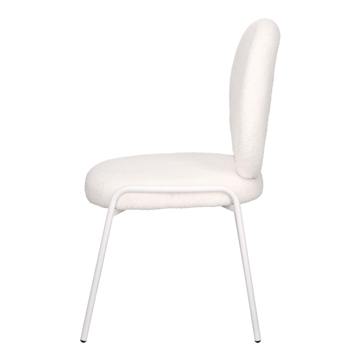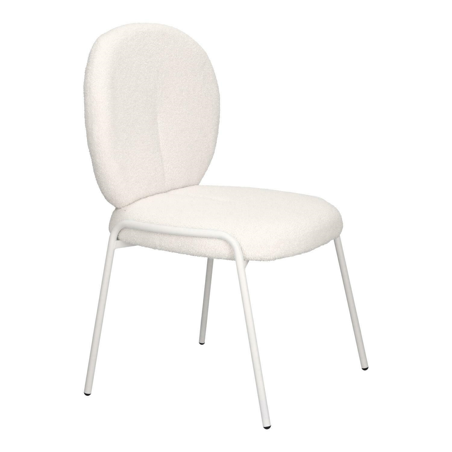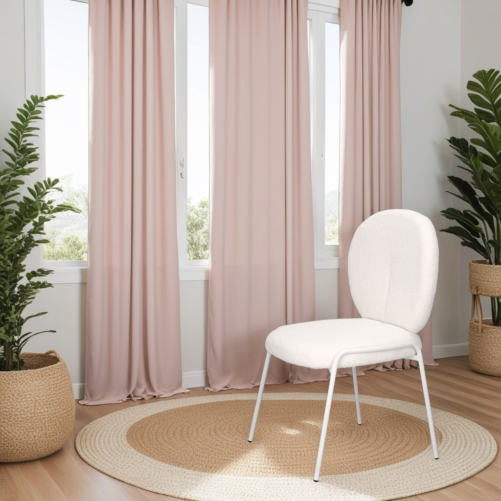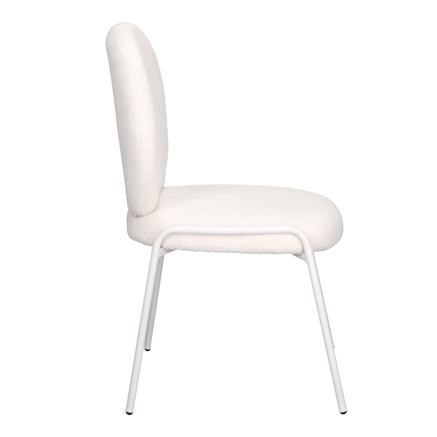 Stylowe krzesło Bianco w stylu boho z czterema metalowymi nogami malowanymi proszkowo na biało będzie kwintesencją modnego i jasnego salonu. Tapicerowane tkaniną boucle, która jest miękka i stylowa, zapewnia wyjątkowy komfort i elegancję. Idealne do wnętrz w stylu naturalnym o jasnym bądź beżowym wykończeniu. Krzesło Bianco łączy funkcjonalność z estetyką. Doskonale sprawdzi się w salonie, jadalni czy sypialni, wprowadzając ciepły, przytulny klimat. Bardzo wygodne krzesło Bianco jest idealne do długiego siedzenia i relaksu przy stole z rodziną lub znajomymi. Wymaga montażu. Max. obciążenie 120 kg Nie sztapluje się Nie nadaje się do użytku zewnętrznegoCechy produktu