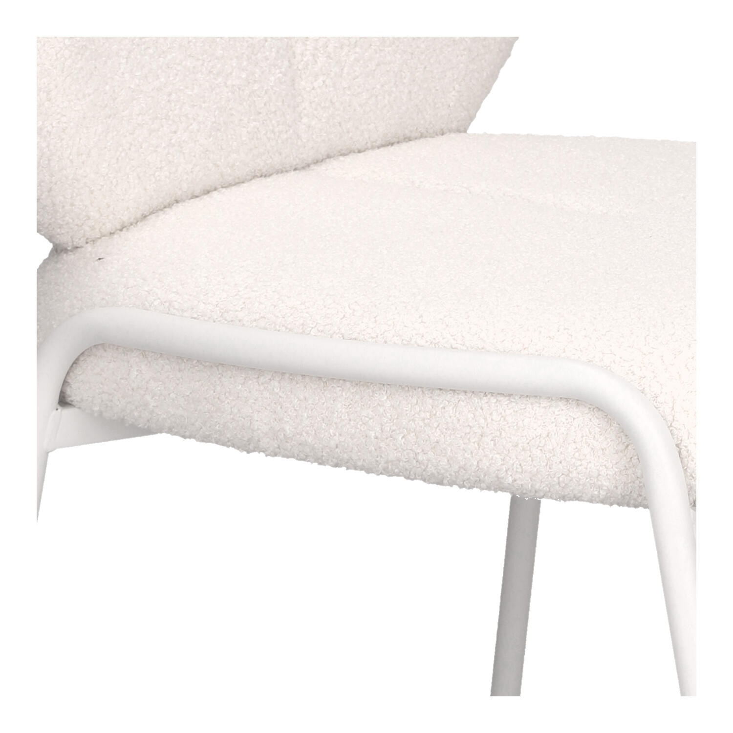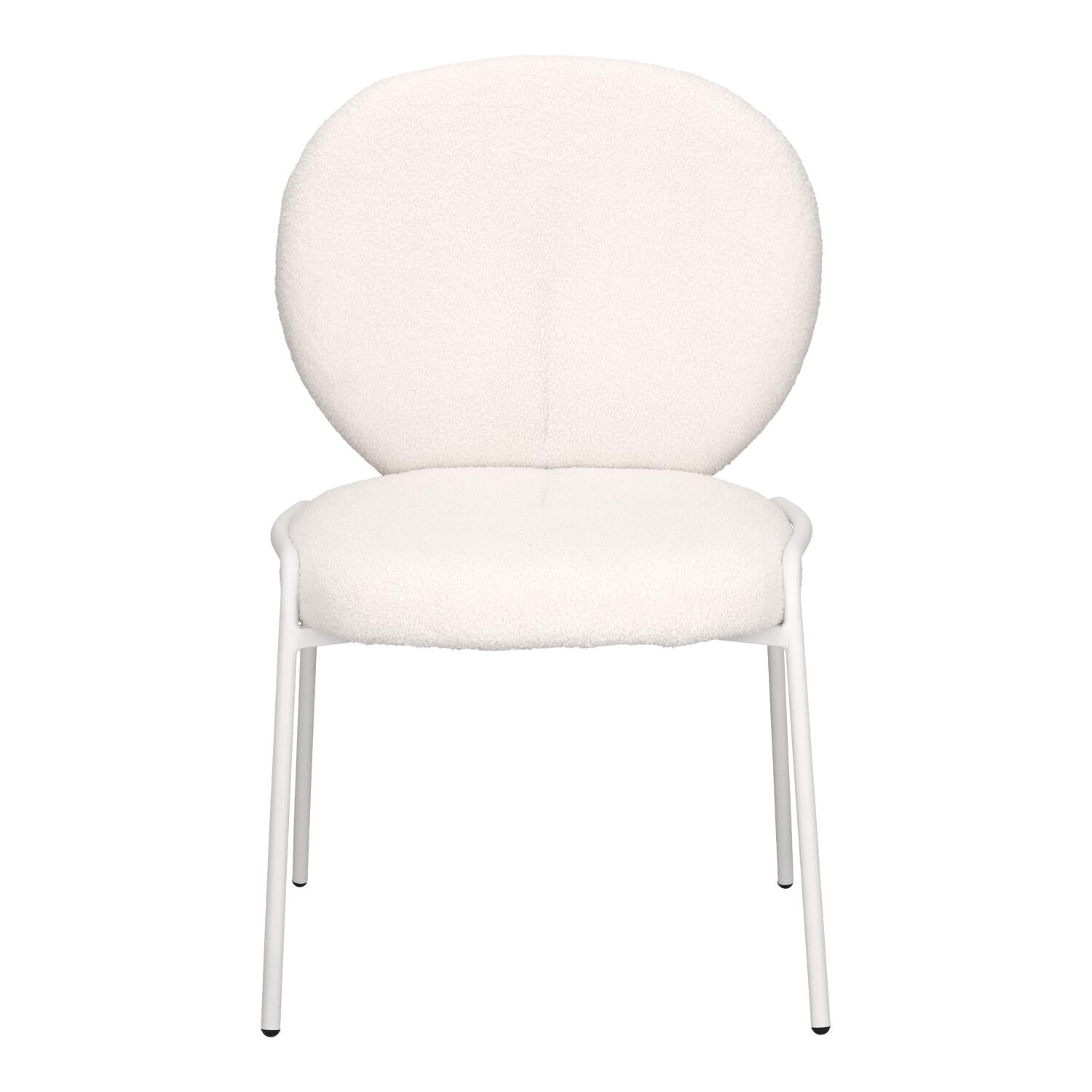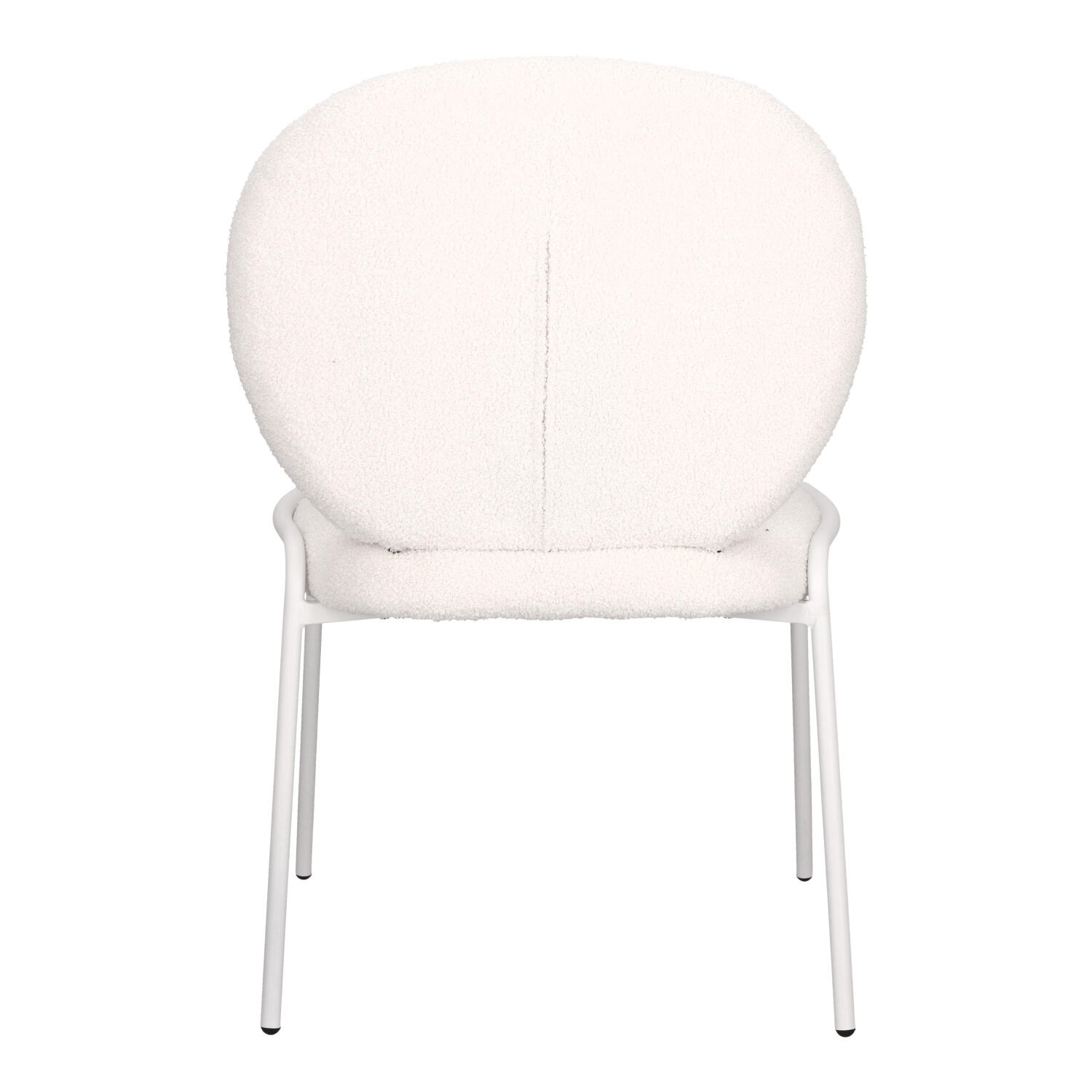 Stylowe krzesło Bianco w stylu boho z czterema metalowymi nogami malowanymi proszkowo na biało będzie kwintesencją modnego i jasnego salonu. Tapicerowane tkaniną boucle, która jest miękka i stylowa, zapewnia wyjątkowy komfort i elegancję. Idealne do wnętrz w stylu naturalnym o jasnym bądź beżowym wykończeniu. Krzesło Bianco łączy funkcjonalność z estetyką. Doskonale sprawdzi się w salonie, jadalni czy sypialni, wprowadzając ciepły, przytulny klimat. Bardzo wygodne krzesło Bianco jest idealne do długiego siedzenia i relaksu przy stole z rodziną lub znajomymi. Wymaga montażu. Max. obciążenie 120 kg Nie sztapluje się Nie nadaje się do użytku zewnętrznegoCechy produktu