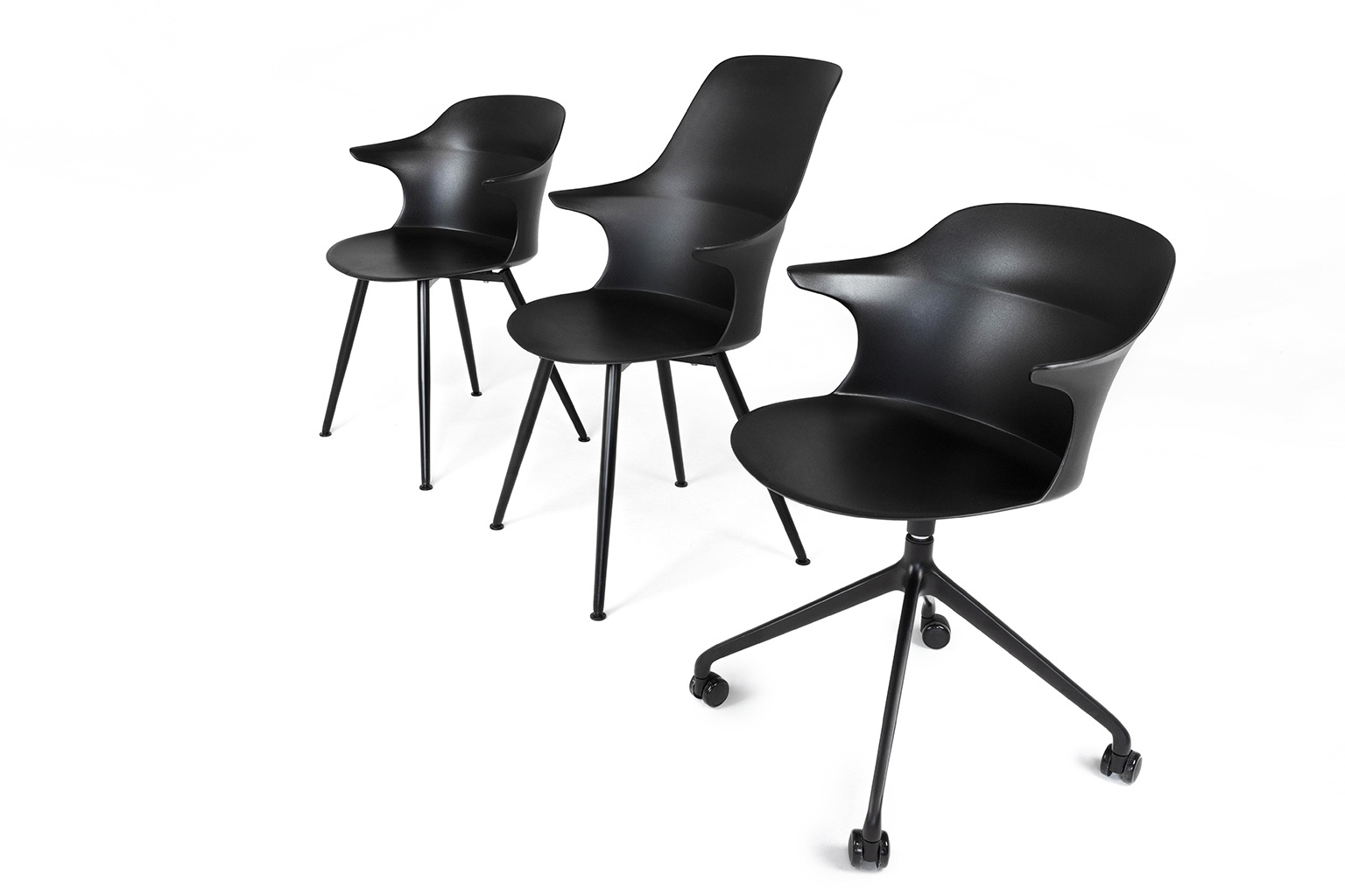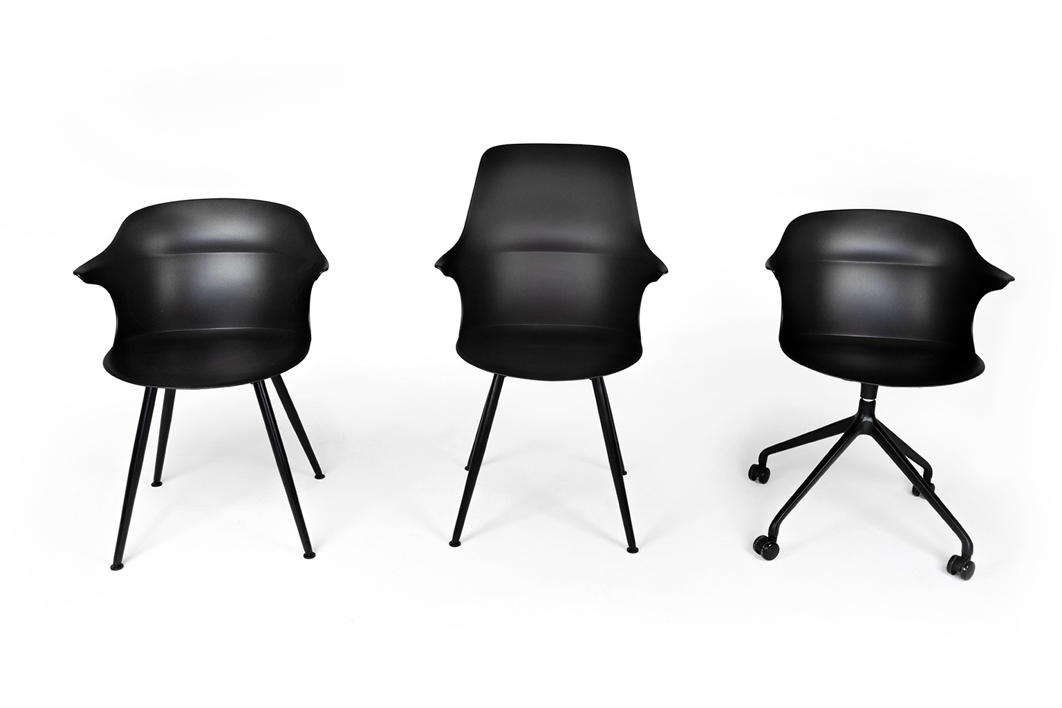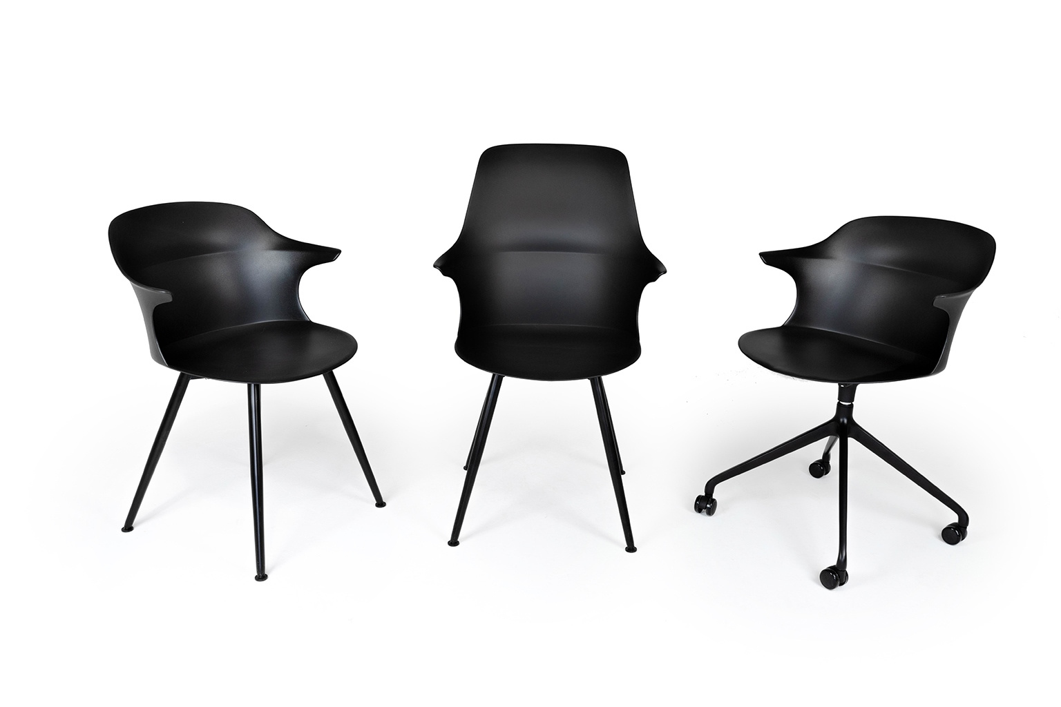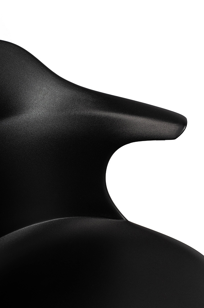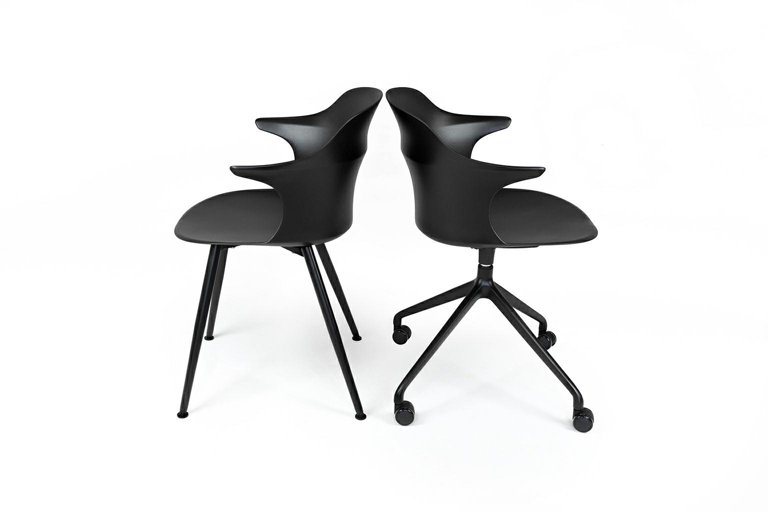 - Krzesło biurowe obrotowe BRAZO to produkt, który swoją nietypową formą z pewnością trafi w niebanalne gusta. Profilowane siedzisko zostało wykonane z wytrzymałego polipropylenu w kolorze czarnym. Nietypowe załamanie na oparciu przy podłokietnikach dodaje