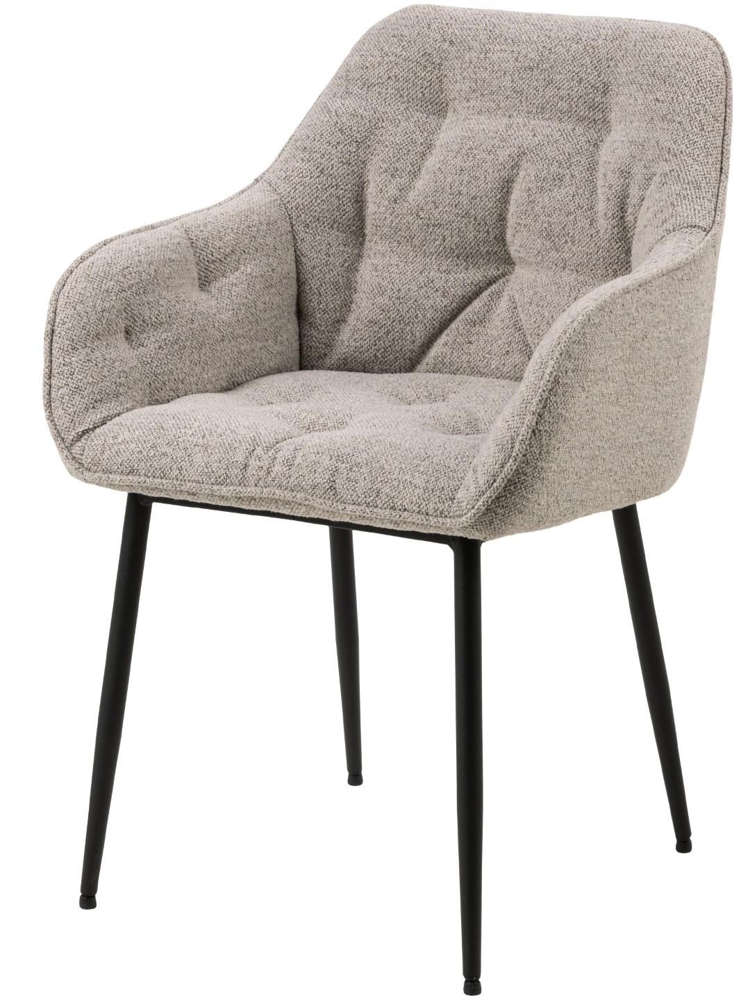 Krzesło Brooke jest krzesłem tapicerowanym miękką tkaniną Monza fabric beige 60. Krzesło posiada idealnie wyprofilowane podłokietniki, które tworzą z siedziskiem i oparciem spójną całość. Oparcie krzesła zostało ozdobione pikowaniem, które dodaje mu stylu. Podstawą krzesła są malowane proszkowo na czarno metalowe nogi. Maksymalne obciążenie: 120 kg. Waga Krzesła: 8,8 kg Wysokość oparcia: 37cm Szerokość siedziska: 41cm Głębokość siedziska: 40,5cm Ilość kartonów: 1 Wymiary kartonów: 61x58x52,5cmCechy produktu