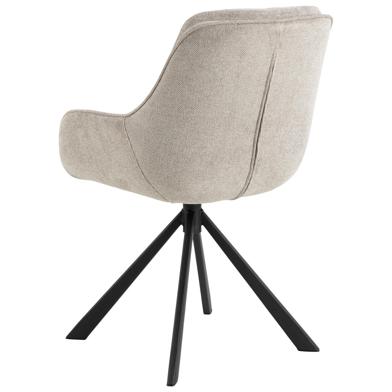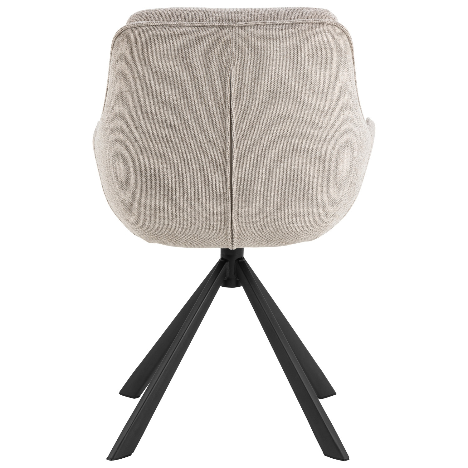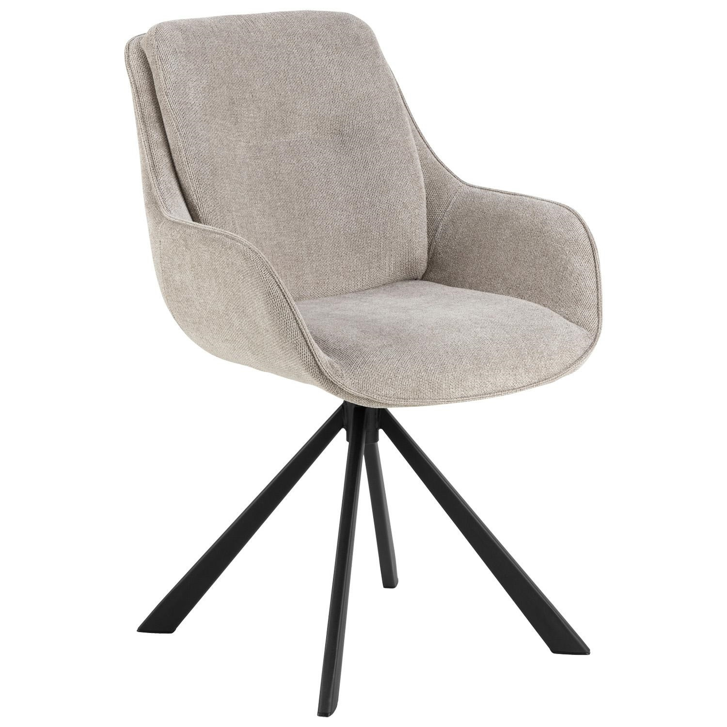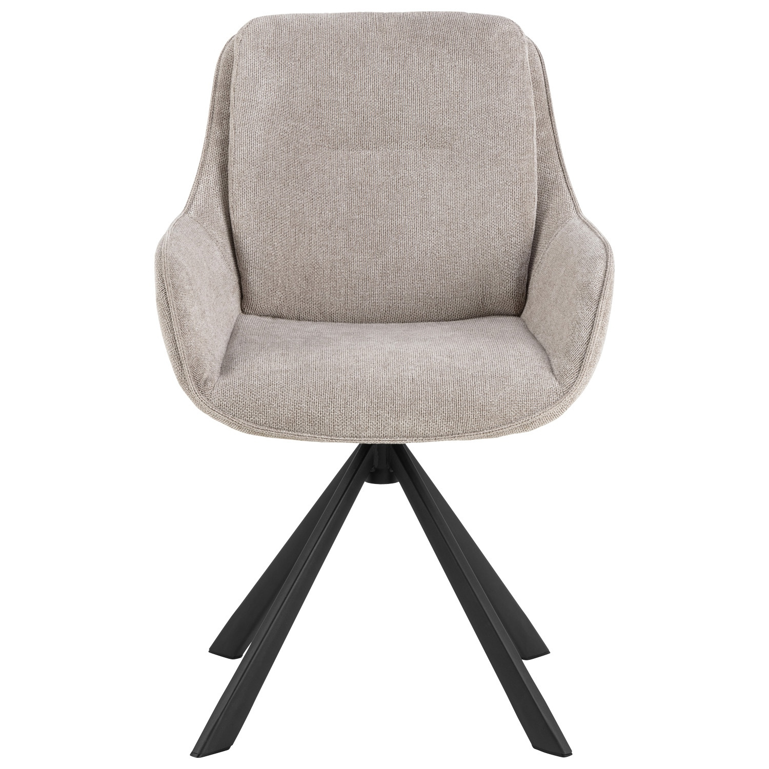 Krzesło do jadalni z podłokietnikami Carrie o eleganckich liniach wnosi do jadalni delikatny, przytulny design. Siedzisko posiada dodatkową warstwę o wyglądzie poduszki, przyszytą do oparcia, aby zapewnić przyjemne doznania i komfortowe oparcie. Dzięki szenilowemu obiciu w kolorze beżowym krzesło zapewnia kojące uczucie. Poruszanie się jest również łatwe, ponieważ siedzisko spoczywa na czarnej 4-gwiazdkowej podstawie z funkcją obrotu. Krzesło do jadalni Carrie w tkaninie Caso sand 4 FR, 4-gwiazdkowa podstawa z matowej, czarnej, szorstkiej stali malowanej proszkowo z poziomymi przeszyciami, obrotowa i z zamkiem błyskawicznym, EWykonane z materiałów ognioodpornych. Certyfikat FSC. Wysokość oparcia 43 cm Szerokość siedziska 44 cm Głębokość siedziska 43 cm Wysokość podłokietnika od podłogi 63 cm Szerokość podłokietnika 3 cm Głębokość podłokietnika 28 cm Wysokość podłokietnika 16 cm Max. obciążenie 110kgCechy produktu