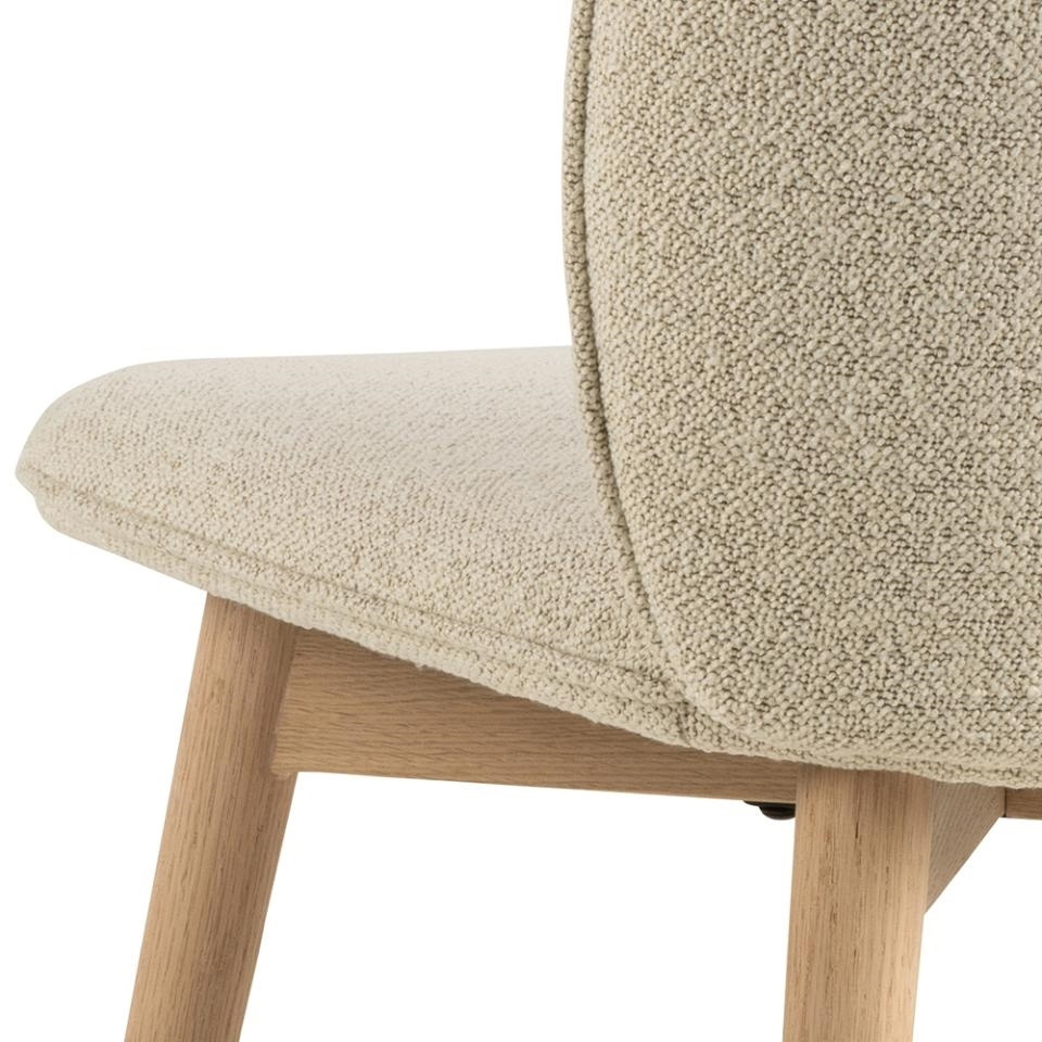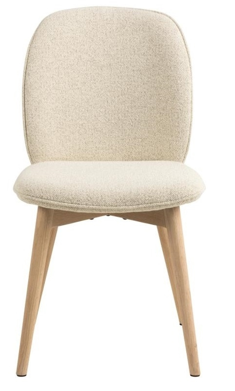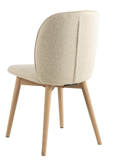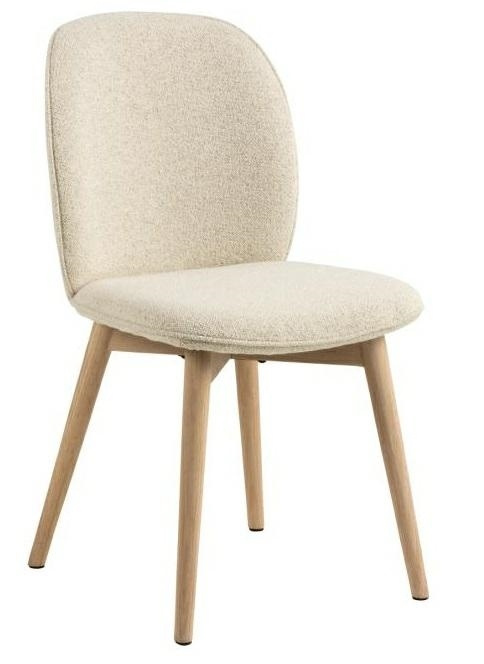 Krzesło Cindy to sposób na elegancką jadlanie lub salon. Zaokrąglone oparcie zapewni wsparcie podczas wystawnej kolacji lub śniadania. Krzesło tapicerowane jest miękką tkaniną typu bouclé o kręconej strukturze, która nadaje mu nowoczesnego charakteru. Aby nadać mu lekki, skandynawski wygląd, wsparto go na drewnianych nogach olejowanych oraz bielonych. Nogi krzesła zostały wykonane z bardzo trwałego drewna kauczukowego. Wygodne krzesło do jadalni w nowoczesnym, skandynawskim stylu . Tapicerowane beżową tkaniną typu bouclé . Ozdobione lamówką. Nogi z kauczuku olejowane i bielone . Certyfikat FSC. Zaprojektowany przez Christinę Aagaard. Wysokość oparcia: 43cm Szerokość siedziska: 49cm Głębokość siedziska: 44,5cm Max. obciążenie 110kg Wymaga montażu. Waga krzesła: 7,6kg Wymiary kartonu: 68x38x55cm Max. 2szt w kartonieCechy produktu