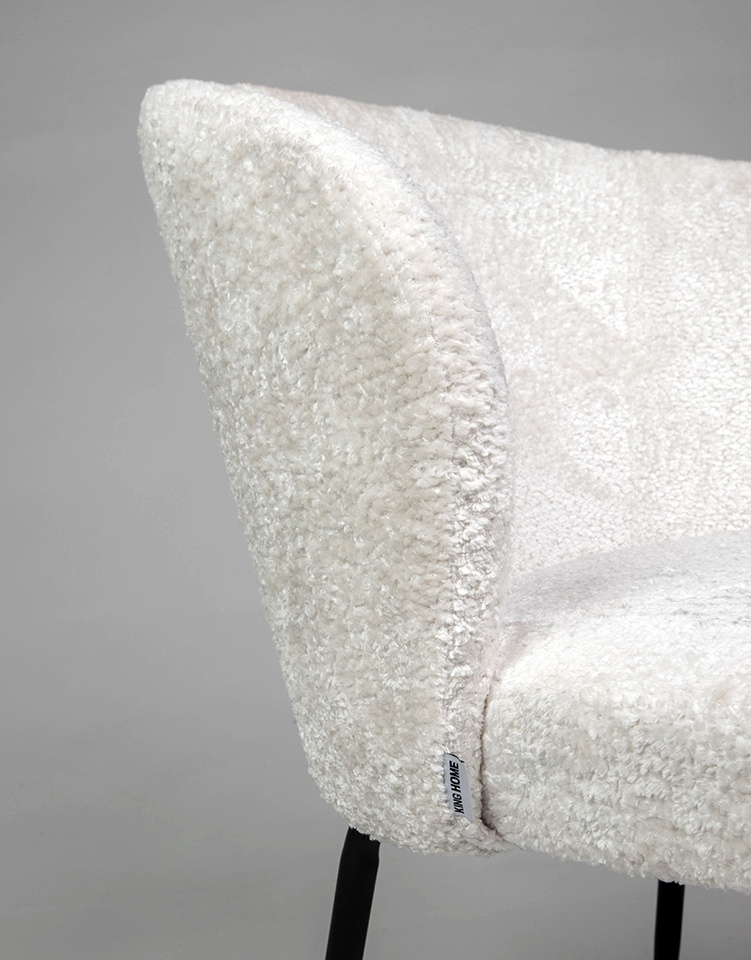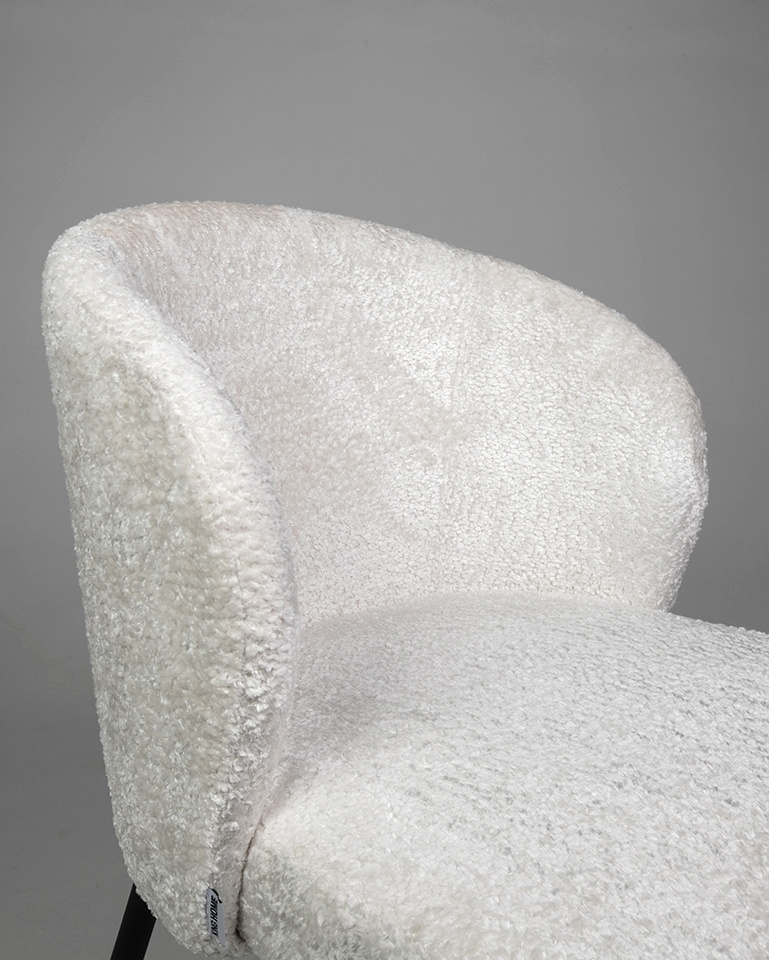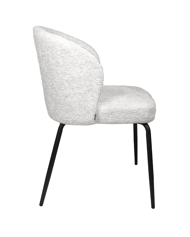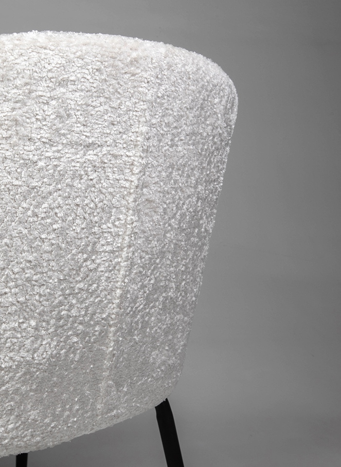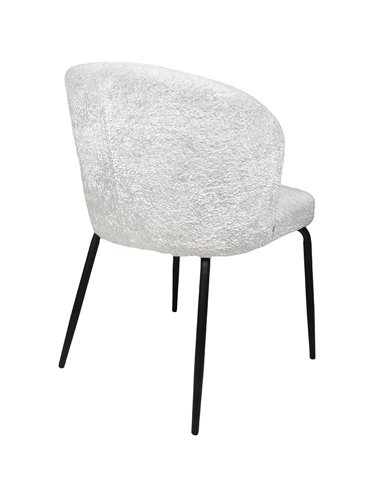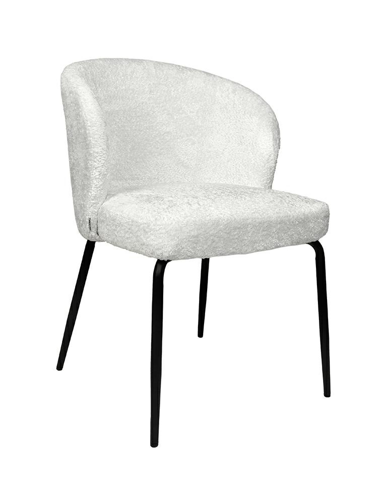 Krzesło GRETA białe. Stylowe połączenie nowoczesności, elegancji i komfortu. Siedzisko pokryte tkaniną w eleganckiej bieli, zachwyca miękkością szenilu. Zaokrąglone oparcie oraz wygodne siedzisko zapewniają komfort i ergonomię na najwyższym poziomie. Smukłe, czarne metalowe nogi podkreślają nowoczesny styl, nadając jednocześnie lekkości całej konstrukcji. Greta idealnie wpisuje się w minimalistyczne wnętrza, wnosząc do nich subtelną elegancję i ponadczasowy design. To doskonały wybór dla osób ceniących wysoką jakość, estetykę i funkcjonalność. Wymiary: wys. 81 cm / szer. 56 cm / gł. 59 cm Wysokość do krawędzi siedziska: 47 cm Siedzisko: szer. 50 cm / gł. 47 cm Oparcie: wys. 35 cm Waga netto: 7,5 kg Wymiary opakowania: 65 cm / 60 cm / 71 cm.Cechy produktu