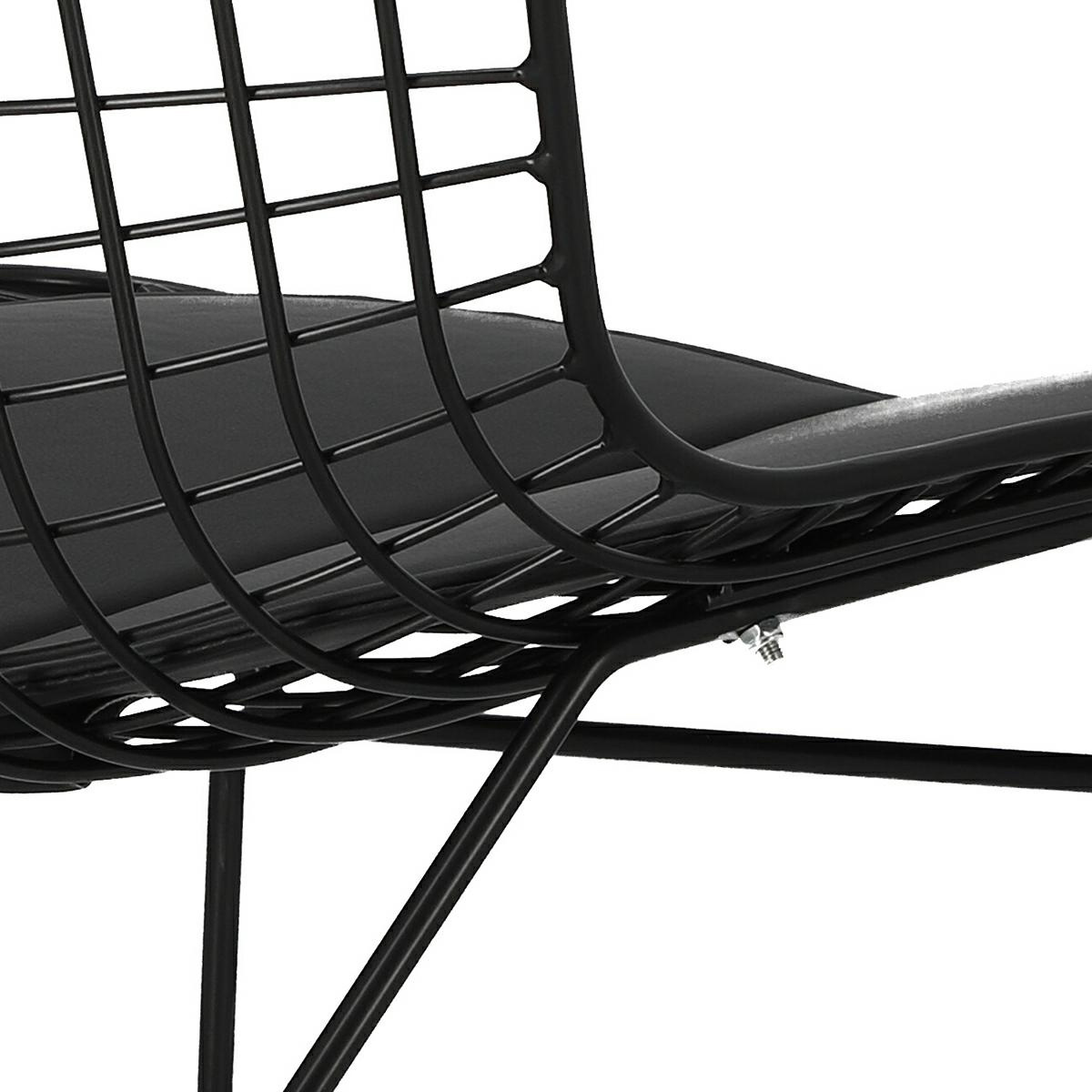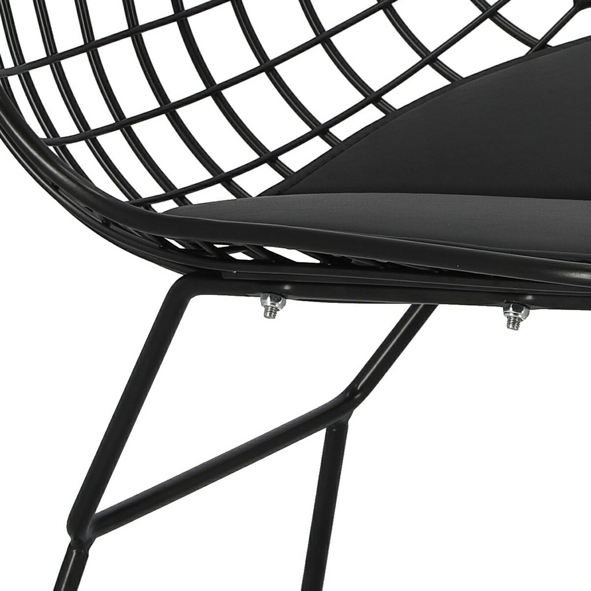 Designerskie krzesło Harry to projekt inspirowany Diamond chair. Niebanalna czarna konstrukcja krzesła zachwyci swoja formą każdego. Kształt krzesła oraz detale sprawiają, że przykuwa ono wzrok każdego i sprawia, że pomieszczenie, w którym ono stoi, staje się wyraźne i pełne kontrastu. Harry został w całości wykonany z metalu, pomalowanego proszkowo na czarno, dzięki czemu nabrał on industrialnego i loftowego charakteru. Oparcie i siedzisko to metalowa kratka, której brzegi zakończone zostały grubszą metalową otoczką. Podstawa krzesła w kształcie płoz przykręcana jest do siedziska za pomocą 4 śrub. Aby zwiększyć komfort wypoczynku, na siedzisku umieszczono wygodną i miękką poduszkę. Zamontowane stopki przy podstawie, zapobiegające rysowaniu podłogi i zwiększające stabilność. Szerokość siedziska: 40 cm Głębokość siedziska: 42 cm Grubość nogi: 1cm Wymiary kartonu: 73x62x65 cmCechy produktu