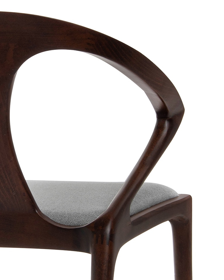 Krzesło INEZ orzech / szare. Elegancka propozycja do jadalni, która łączy klasyczny design z nowoczesnym akcentem. Wykonane w całości z litego drewna orzechowego, cechuje się trwałością i naturalnym pięknem, które dopełnia szara poducha zapewniająca komfort siedzenia. Ponadczasowa forma i szyk sprawiają, że doskonale wpisuje się w każde wnętrze, dodając mu wyrafinowanego charakteru. Krzesło Inez idealnie komponuje się ze stołem jadalnianym Ufo, tworząc harmonijny zestaw, który podkreśla elegancję przestrzeni jadalnianej. Wymiary: wys. 82 cm / szer. 57 cm / gł. 62 cm Wysokość do krawędzi siedziska: 48 cm Wysokość do podłokietników: 73 cm Siedzisko: szer. 45 cm / gł. 35 cm Oparcie: wys. 38 cm / szer. 35 cm Rozstaw nóg: szer. 57 cm / gł. 54 cm.Cechy produktu
