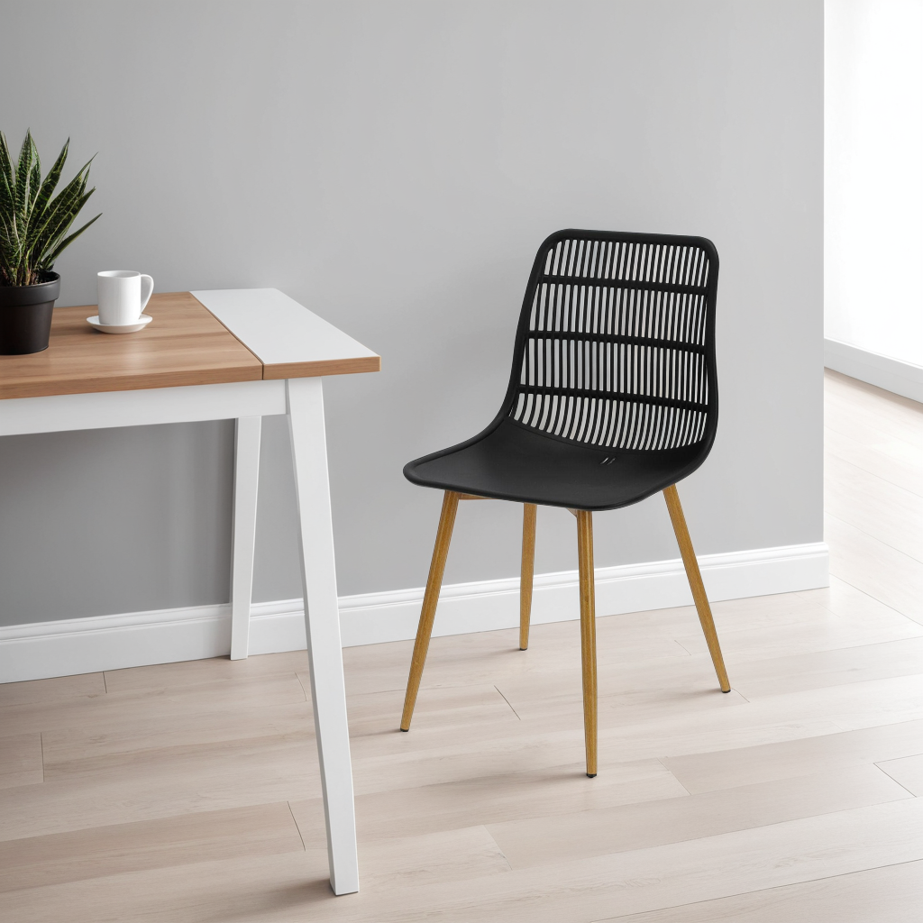 Modne, niedrogie krzesło Klaus to przede wszystkim wygoda i minimalizm. Krzesło Klaus prezentuje się innowacyjne, dzięki połączeniu ciekawego siedziska z mocnego polipropylenu oraz metalowej podstawy w okleinie imitującej drewno. Drewniane akcenty to nieodzowny element krzesła w stylu skandynawskim Polipropylenowe siedzisko jest niezwykle łatwe w utrzymaniu go w czystości więc, uniwersalne krzesło Klaus sprawdzi się przy stole kuchennym jak i w przestrzeni publicznej np. restauracji. Szerokość siedziska: 46cm Głębokość siedziska: 43cm Max ilość szt. w kartonie: 4 Wymiary kartonu: 68x48x60 cmCechy produktu