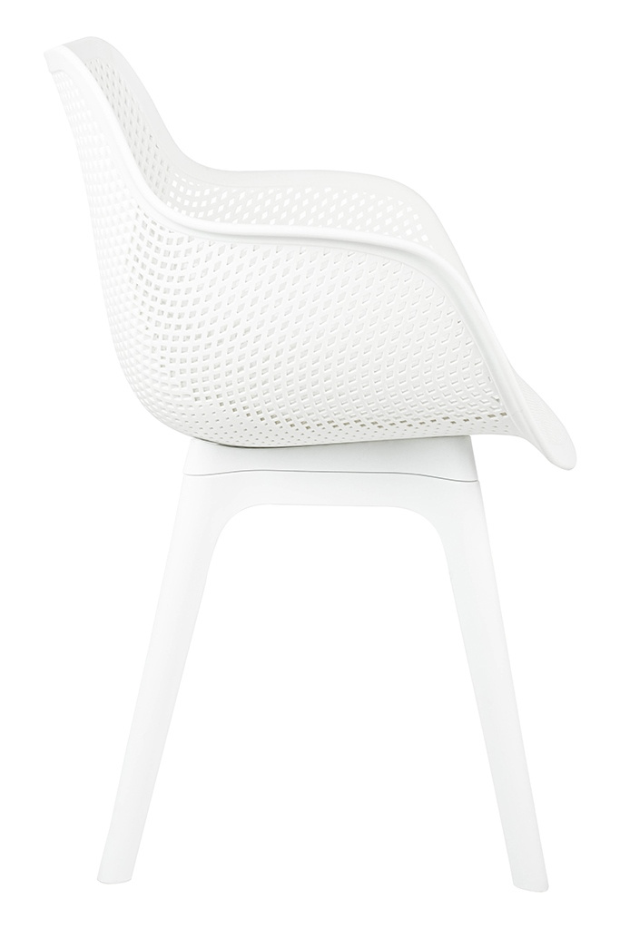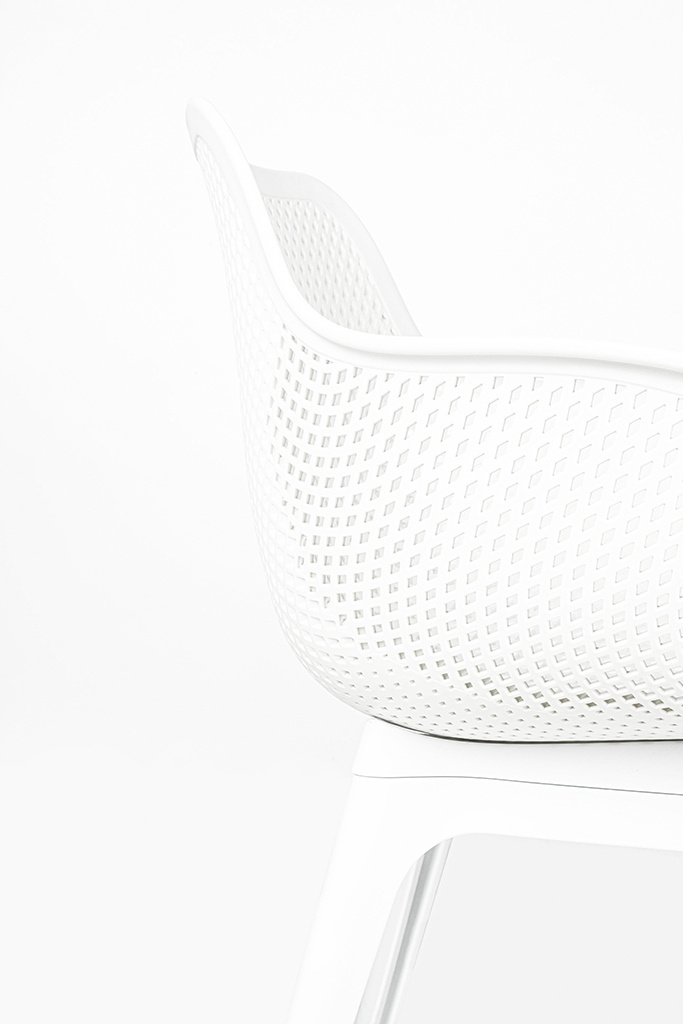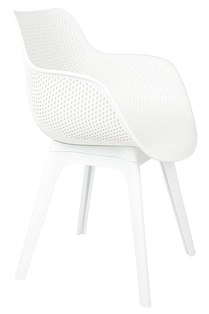 Krzesło LANDI białe - polipropylen. Wyjątkowy design połączony z funkcjonalnością. W całości wykonane z polipropylenu, tworzywa, które łączy w sobie lekkość i wyjątkową trwałość. Ażurowa forma siedziska nadaje lekkości i nowoczesnego charakteru, sprawiając, że krzesło prezentuje się elegancko i stylowo w każdej przestrzeni. Biały kolor wprowadza świeżość i lekkości, sprawiając, że doskonale rozjaśnia przestrzeń. Wytrzymałe wykonanie zapewnia bezpieczeństwo i komfort użytkowania do 130 kg. Idealnie sprawdza się zarówno wewnątrz pomieszczeń, jak i na zewnątrz, zachowując swój wygląd mimo zmiennych warunków pogodowych. Wymiary: wys. 83 cm / szer. 57 cm / gł. 55,5 cm Wysokość do krawędzi siedziska: 44 cm Siedzisko: szer. 43 cm / gł. 43 cm Oparcie: wys. 40 cm / szer. 42 cm Podłokietniki: dł. 30 cm / szer. 2 cm Rozstaw nóg: przód szer. 45 cm / tył szer. 45 cm / gł. 45 cm Możliwość sztaplowania: tak Wymiary opakowania: 64 cm / 60 cm / 65 cm.Cechy produktu