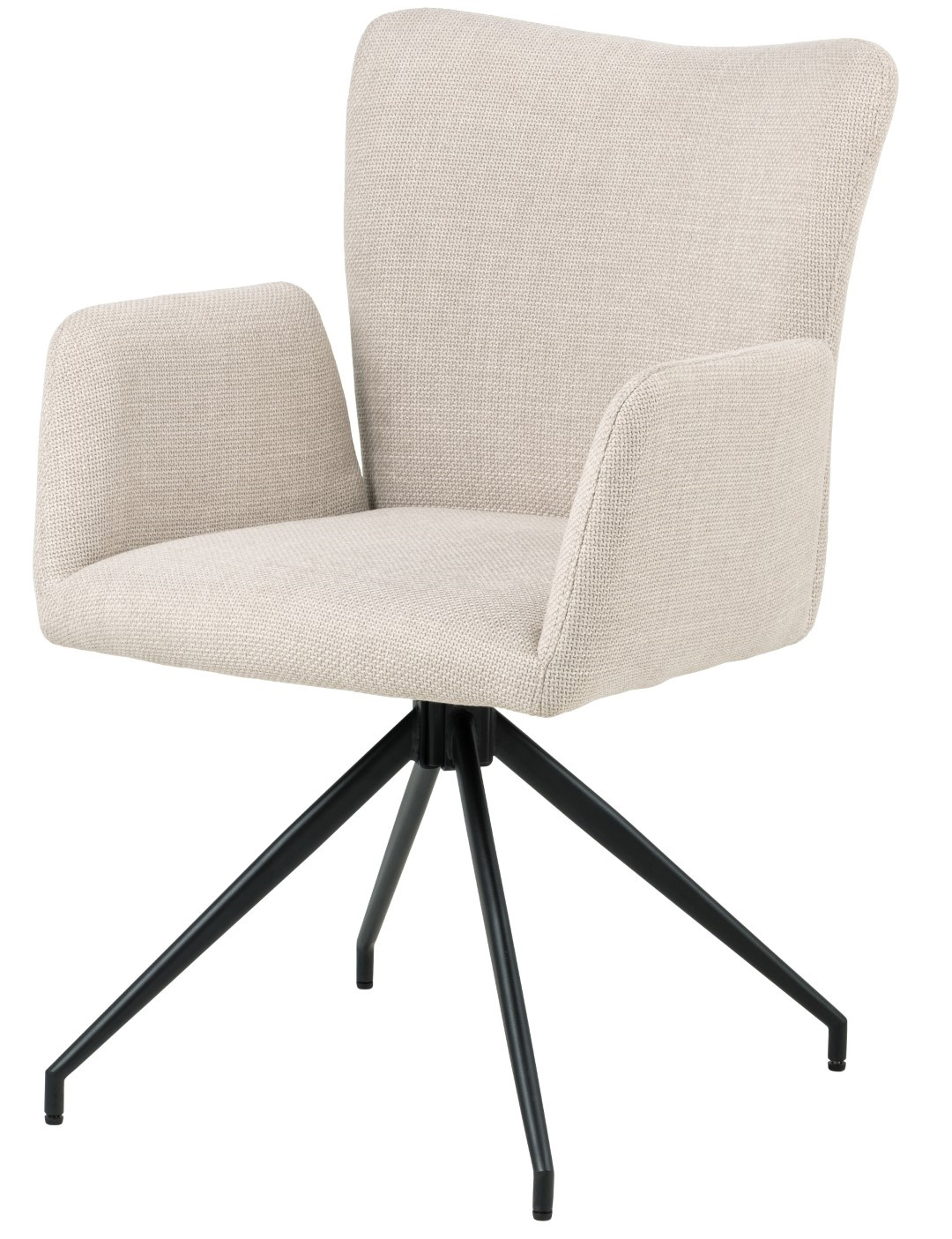 Krzesło Laura nadaje się do sali konferencyjnej, jadalni, a nawet nowoczesnej restauracji. Jest odpowiednio wyprofilowane, aby zapewnić najwyższy poziom komfortu. Posiada wygodne, wysokie podłokietniki. Jego podstawę stanowią cztery nogi malowane proszkowo na czarny kolor w matowym wykończeniu. Górna część krzesła wypełniona jest pianką poliuretanową i tapicerowana tkaniną Basel fabric beige 24. Krzesło posiada funkcję obrotu. Ilość kartonów: 1 Wymiary kartonów: 57,5x66x59cm Waga kartonów: 11,7kgCechy produktu