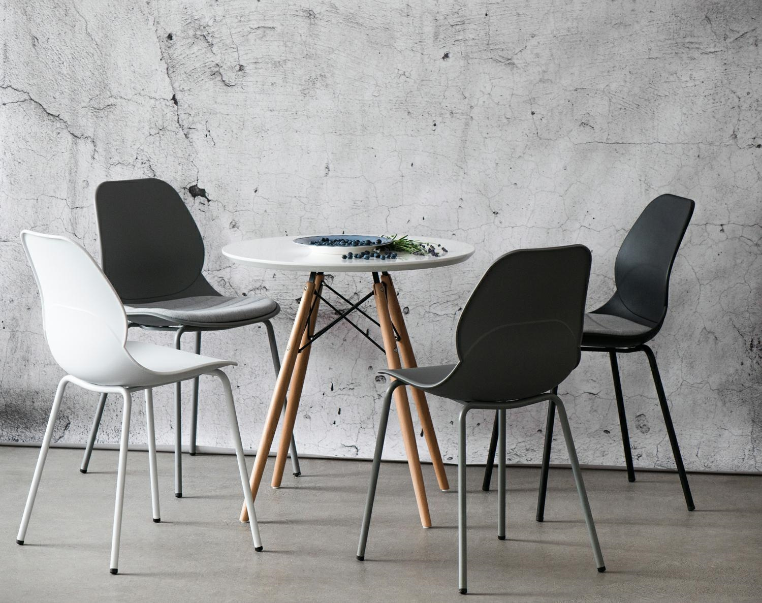 Nowoczesne krzesło Layer 4 to mebel użytkowy, który doskonale sprawdzi się w przestrzeni biurowej, publicznej, restauracyjnej czy hotelowej. Polipropylenowe siedzisko wykończone w macie o geometrycznych kształtach razem z podstawą wykonaną z metalu malowanego proszkowo na kolor siedziska o wykończeniu w połysku tworzy doskonały mebel codziennego uzytku. Krzesło nie tylko wpasuje się w przestrzeń pomieszczeń HORECA, ale również w domowe przestrzenie- pokoju dziecięcym, nowoczesnej jadalni czy kuchni. Krzesło Layer 4 dostępne w 3 wersjach kolorystycznych oraz w wersji z poduszką. Jego waga wynoCechy produktu