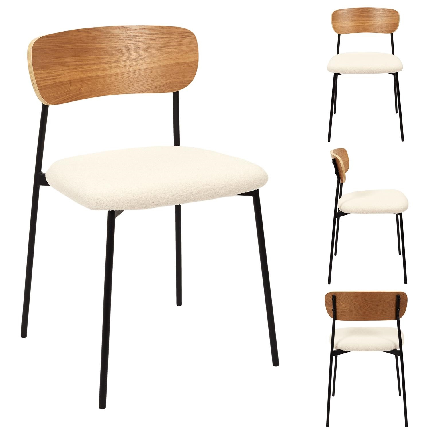 Krzesło Loki to mebel w stylu vintage. Minimalistyczny kształt mebla nawiązuje trochę do szkolnych krzesełek na których mogliśmy się pilnie uczyć w szkole. Krzesło to połączenie miękkiej tkaniny boucle, fornirowanego oparcia ze sklejki oraz metalowych, malowanych poszkowo na czarno nóg. Maksymalne obciążenie 110kg Wymaga montażu. Max. 4 krzesła w kartonieCechy produktu
