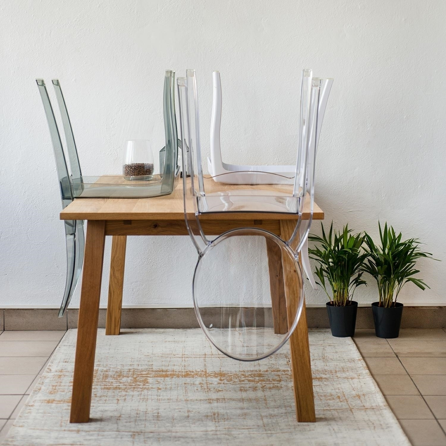 Krzesło Mia to klasyczna forma w nowoczesnym wydaniu. Mia pięknie zaprezentuje się w sypialni, przy domowej toaletce, czy też przy stole w jadalni. Wersja transparentna wykonana jest z polikarbonu, natomiast wariant nieprzezroczysty powstał z poliamidu. Krzesła Mia nadają się do sztaplowania (do 4 sztuk), dlatego też są łatwe w przechowywaniu. Max. ilość szt. w kartonie: 4 Wymiary kartonu: 70x56x109cmCechy produktu