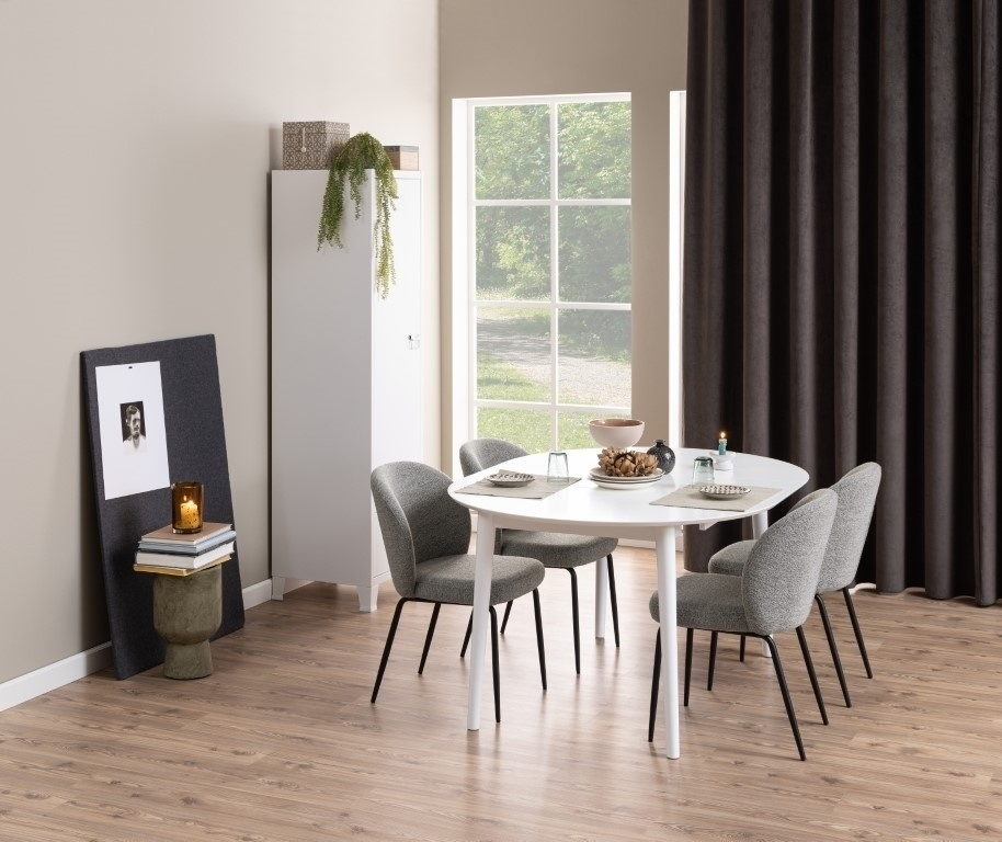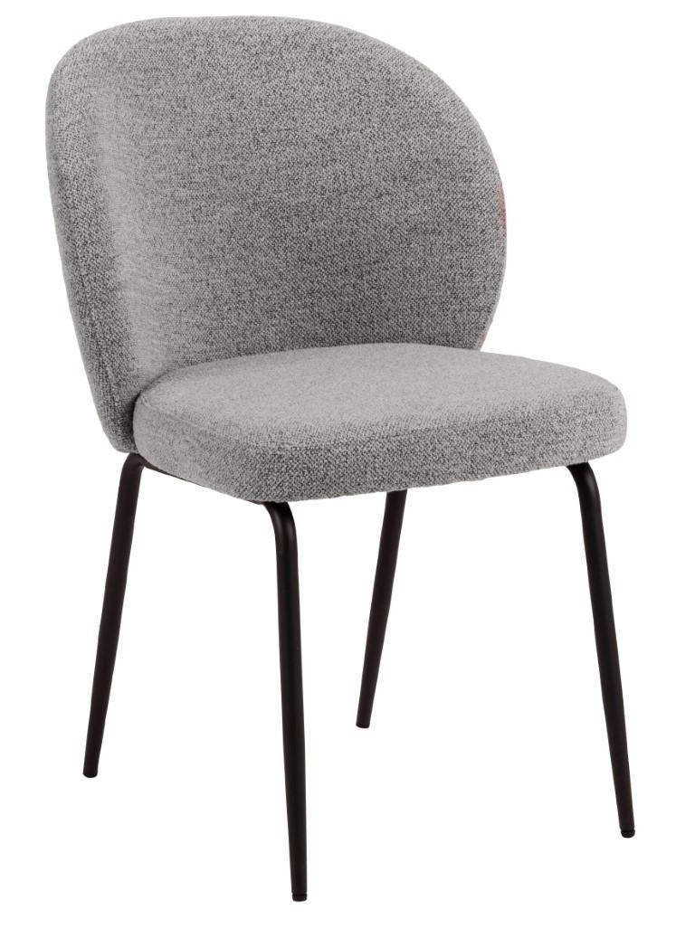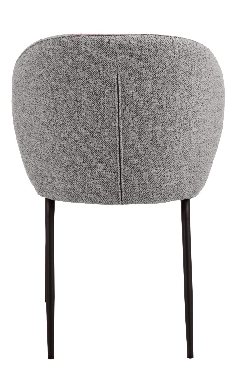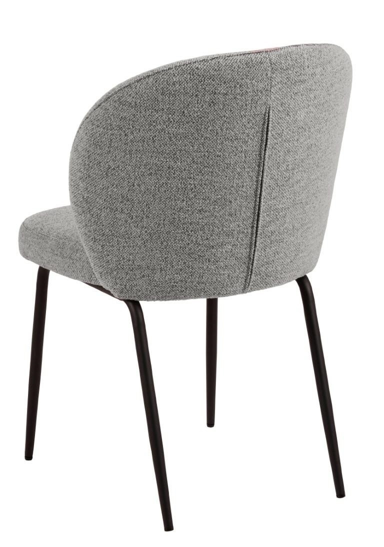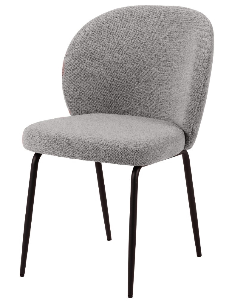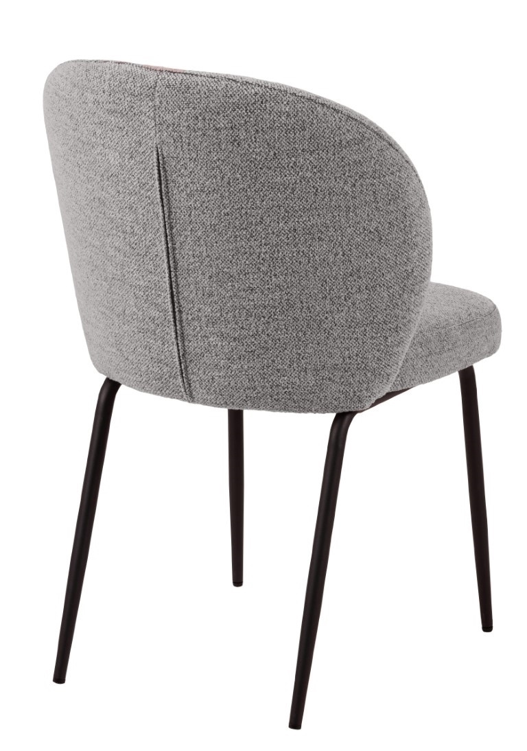 - Krzesło Patricia posiada wygodne, szerokie oparcie. Tak samo jak siedzisko wypełnione jest gęstą pianką poliuretanową. Ich pokrycie stanowi tkanina Monza fabric grey 120. Podstawę krzesła stanowią cztery metalowe nogi malowane proszkowo na kolor czarny. K