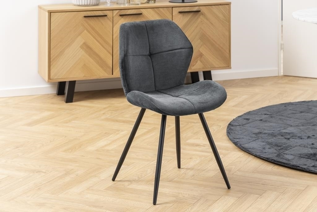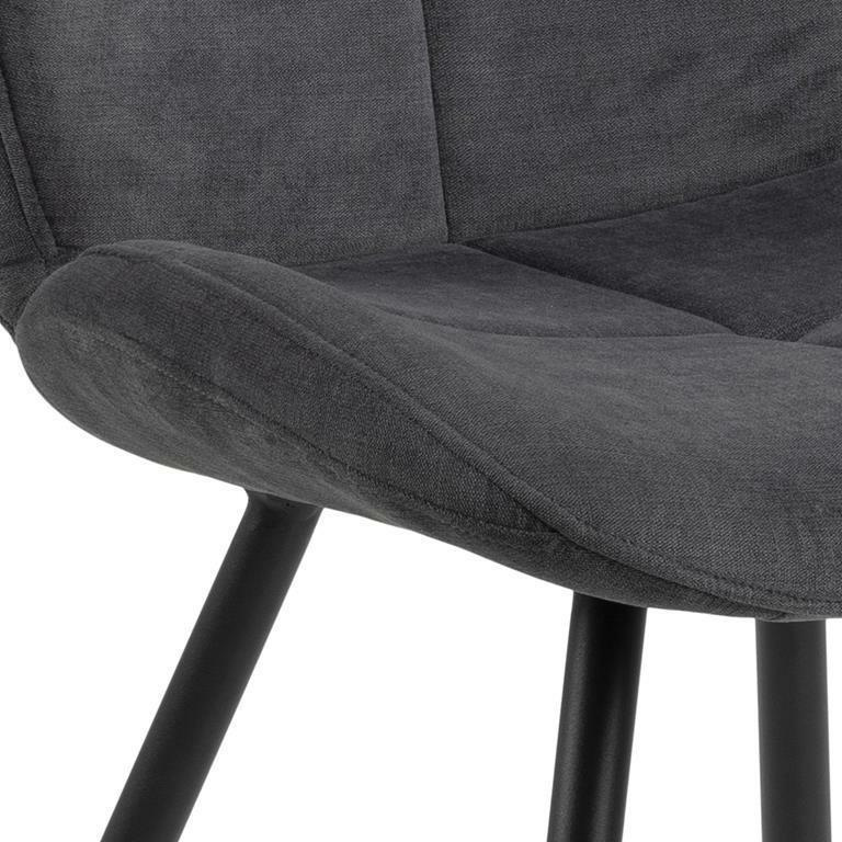 Krzesło Petri to projekt o nowoczesnym designie idealny dla osób ceniących nietypowe wzornictwo. Siedzisko i oparcie krzesła z pianki poliuretanowej tapicerowane jest tkaniną Holly fabric anthracite 28. Uwaga zwraca ciekawy, nieco ścięy kształt oparcia oraz dekoracyjne przeszycia i pikowanie. Podstawę krzesła stanowią cztery smukłe, delikatnie rozchodzące się na boki nogi z malowanego proszkowo metalu w kolorze czarnym. Krzesło Petri to propozycja idealna do domowej jadalni oraz przestrzeni komercyjnych tj. restauracje. Ilość kartonów: 1 Wymiary kartonów: 68x48x43cm Waga kartonów: 7,4kgCechy produktu
