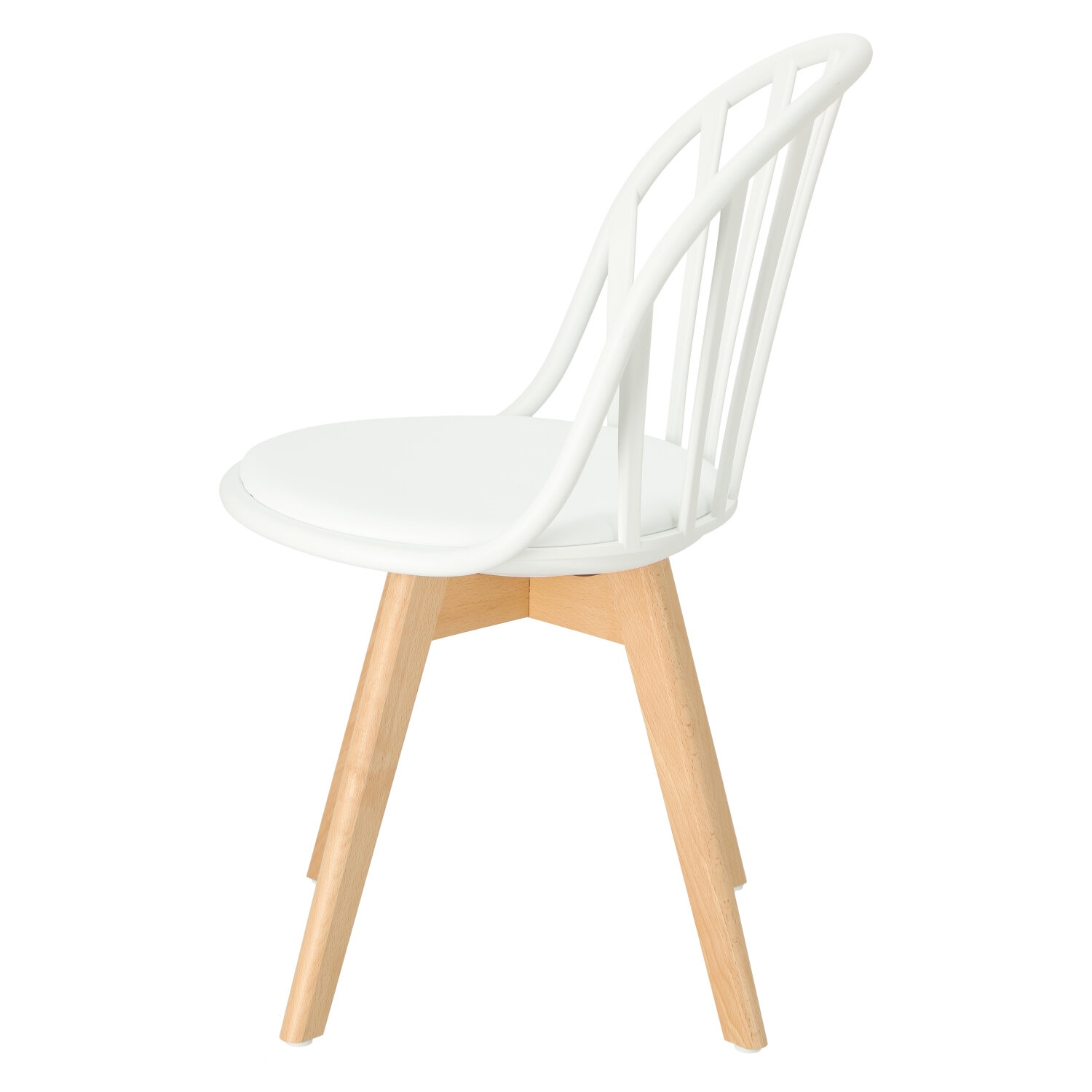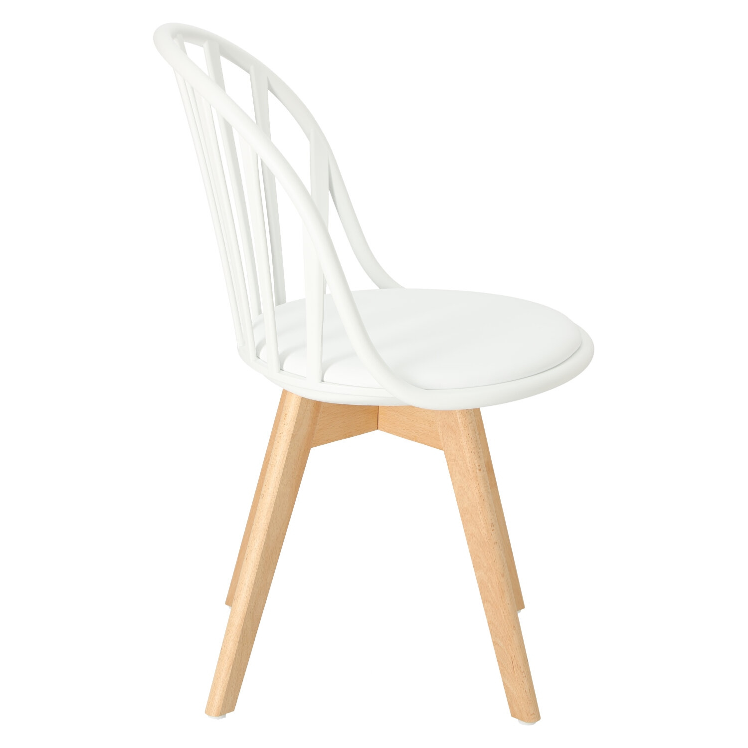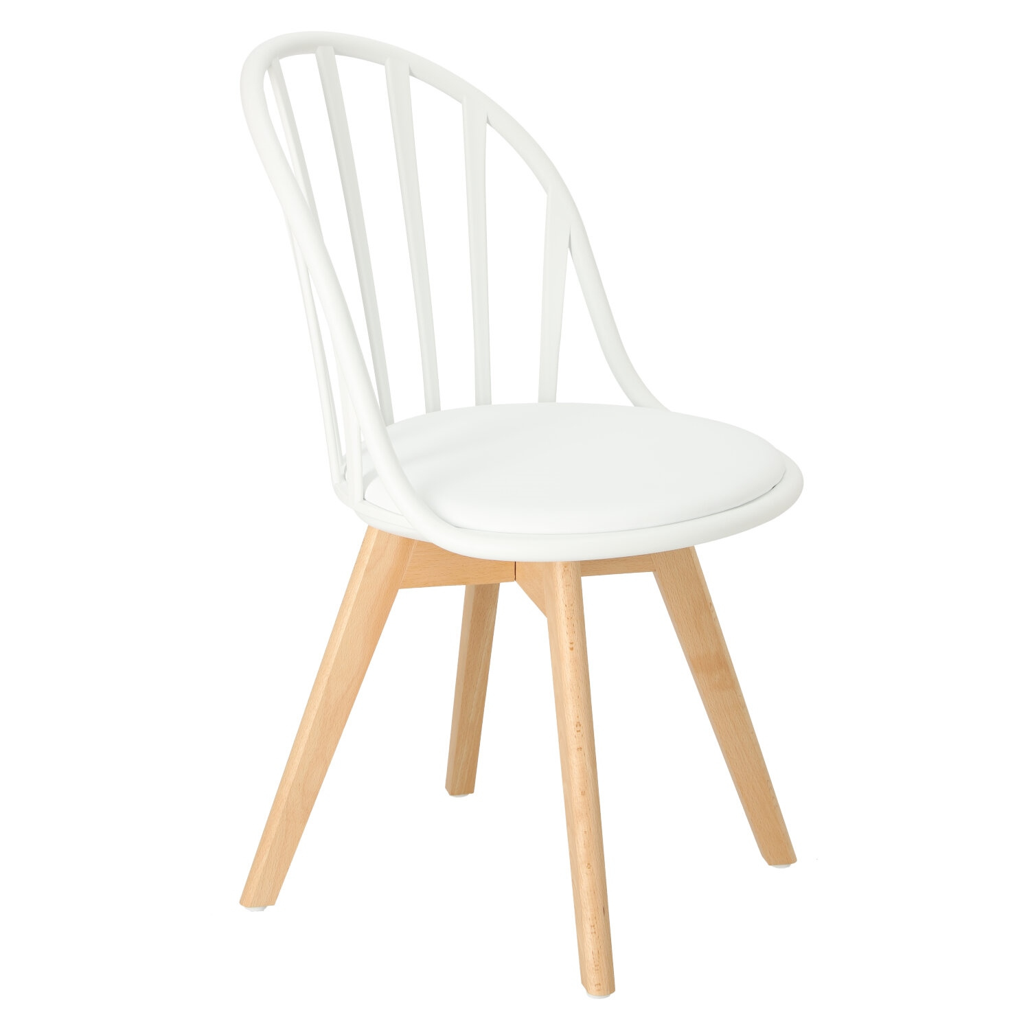 Krzesło Sirena doskonale odnajdzie się w nowoczesnej aranżacji, zarówno jadalnianej, jak i biurowej, stając się jej wizytówką. Wyposażony został w miękką poduszkę, pokrytą eko skórą w kolorze białym, która zapewni maksimum komfortu każdemu użytkownikowi. Praktyczne otwory w oparciu nadają całości oryginalnego wyglądu, jednocześnie gwarantując odpowiedni poziom wentylacji. Podstawę krzesła stanowią nogi z drewna bukowego, trwałego i wytrzymałego, co gwarantuje użytkowanie przez długie lata. Usytuowany na niej siedzisko, wykonane zostało z polipropylenu. Polipropylen charakteryzuje się doskonałą wytrzymałością i odpornością na wodę, temperaturę i uszkodzenia mechaniczne. Tworzywo jest bardzo łatwe w utrzymaniu czystości, zatem bez problemu usuniesz z niego wszelkie zabrudzenia. Wymiary kartonu: 70*65*52cm Max. ilość szt. w kartonie: 4