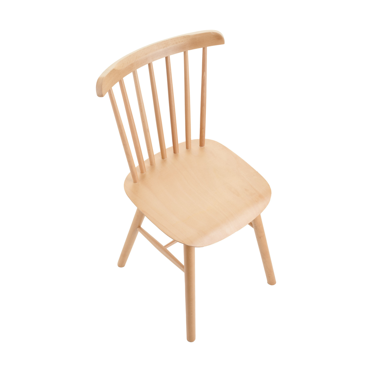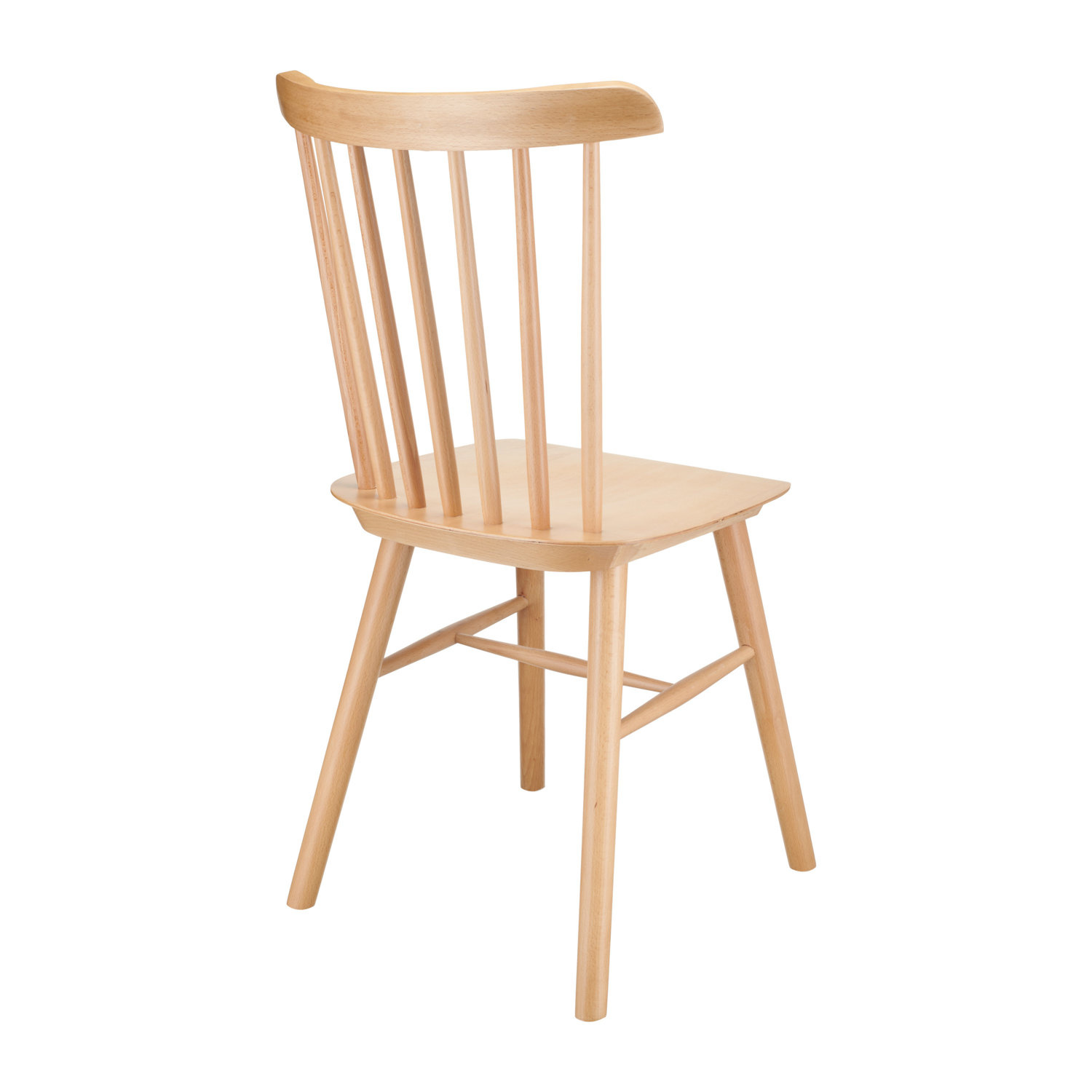 Szczebelki zostały równomiernie rozstawione, co zapewnia odpowiednie podparcie dla pleców oraz lekkość wizualną całej konstrukcji.