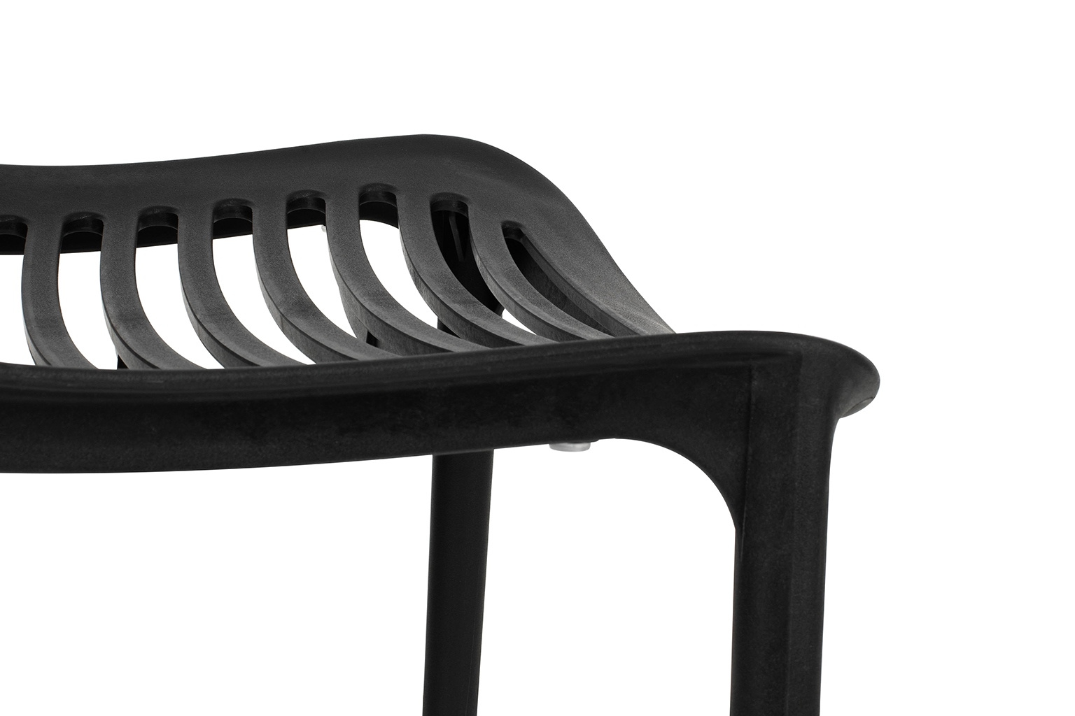 Krzesło SUNNY czarne - polipropylen. Design, w którym estetyka spotyka się z wygodą. Wykonane z polipropylenu, materiału lekkiego, a jednocześnie niezwykle trwałego i odpornego na codzienne użytkowanie, łączy w sobie estetykę z praktycznością. Głęboka czerń wprowadza do przestrzeni nutę luksusu. Idealnie pasuje do wnętrz o zróżnicowanym stylu, od eleganckiej klasyki po współczesny minimalizm. Wytrzymałe wykonanie zapewnia bezpieczeństwo i komfort użytkowania do 130 kg. Doskonale odnajdzie się zarówno w domowych wnętrzach, jak i w przestrzeniach komercyjnych, wnosząc do nich lekkość i styl. Wymiary: wys. 84,5 cm / szer. 48,5 cm / gł. 61 cm Wysokość do krawędzi siedziska: 43 cm Siedzisko: szer. 42 cm / gł. 45 cm Oparcie: wys. 41 cm / szer. 48,5 cm Rozstaw nóg przód szer. 46 cm / tył szer. 49,5 cm / gł. 47 cm Możliwość sztaplowania: Tak Wymiary opakowania: 51 cm / 77 cm / 97 cm.Cechy produktu