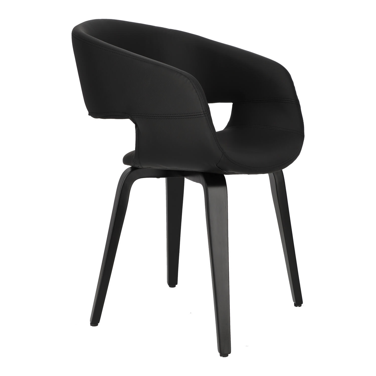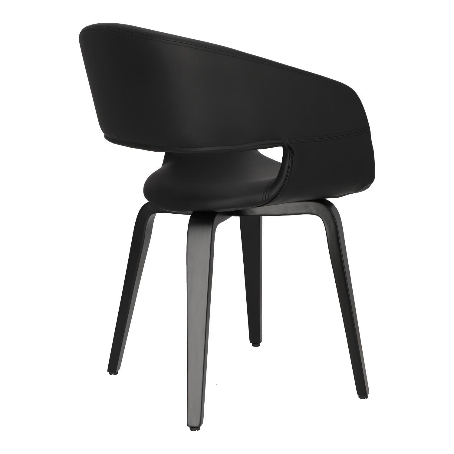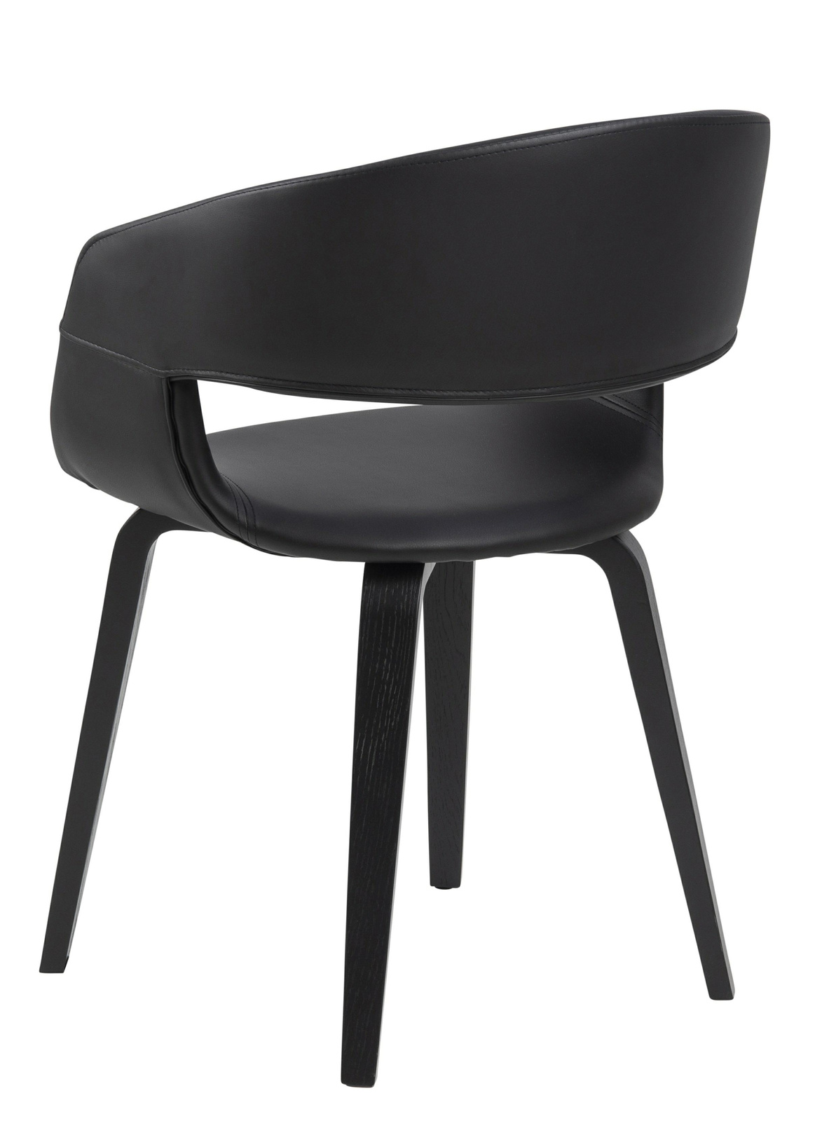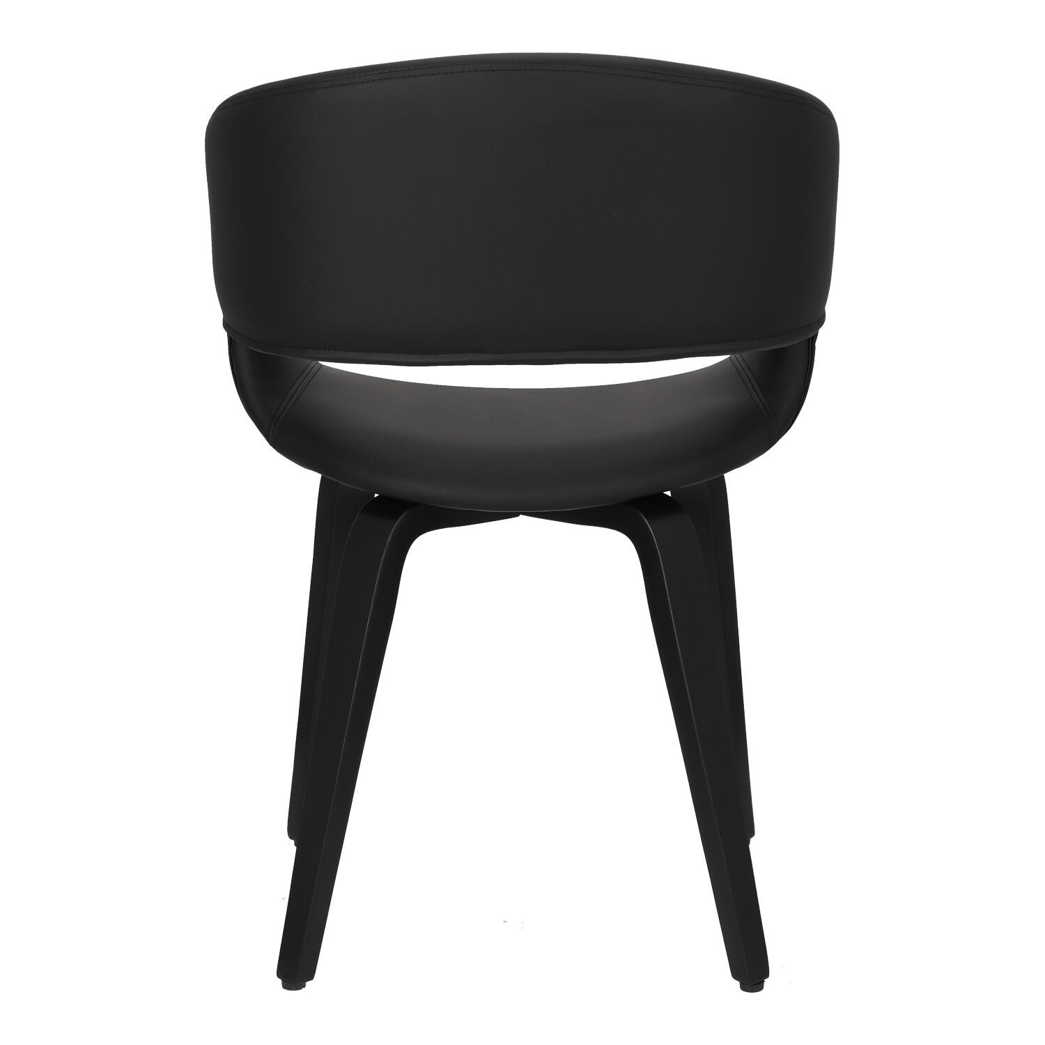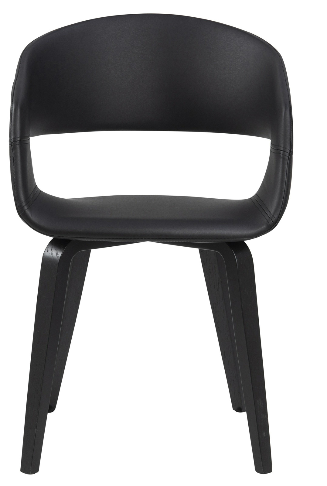 Ponadczasowe krzesło Nova o niebanalnym kształcie sprawdzi się zarówno w salonie, kuchni, jak i jadalni. Krzesło Nova wpasuje się do wnętrz w stylu nowoczesnym, skandynawskim, czy industrialnym. Cztery drewniane, krzyżujące się pod siedziskiem nóżki gwarantują odpowiednią stabilność i bezpieczeństwo. Zostały wykonane z giętego forniru dębowego pomalowanego na kolor czarny. Siedzisko zostało wykonane z wysokiej jakości czarnej skóry ekologicznej, która jest bardzo wytrzymała i pięknie się prezentuje. Półokrągłe wycięcie w oparciu sprawi, że krzesło Nova będzie niezwykle ciekawym elementem wystCechy produktu