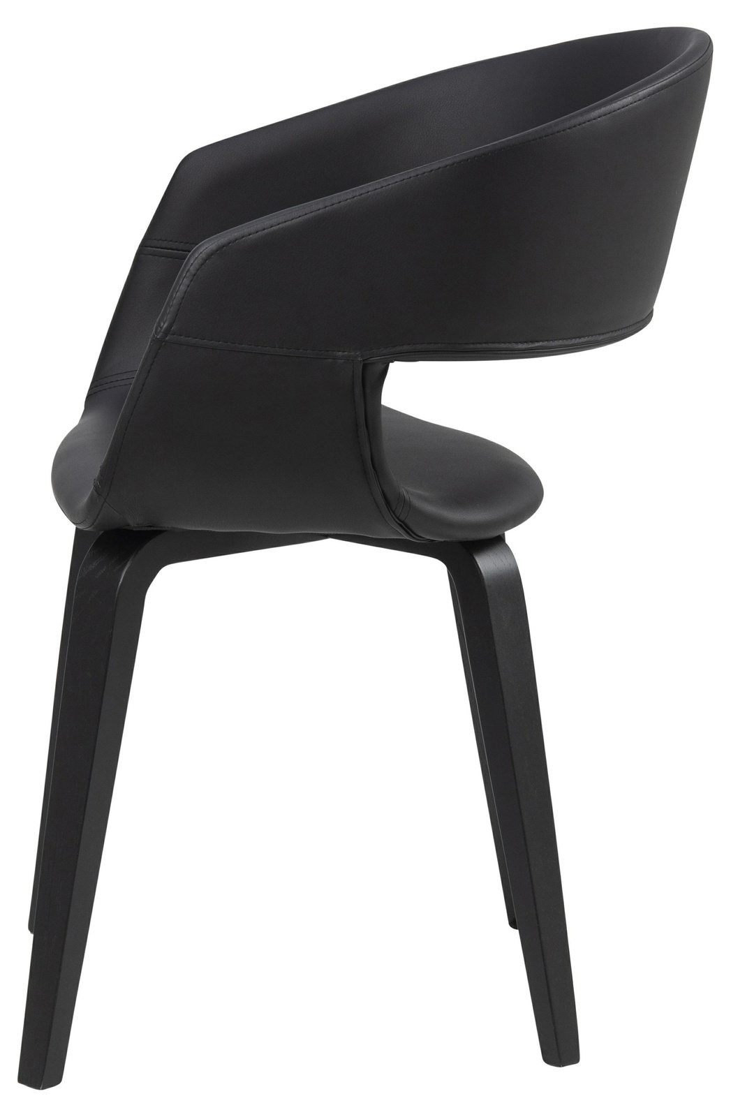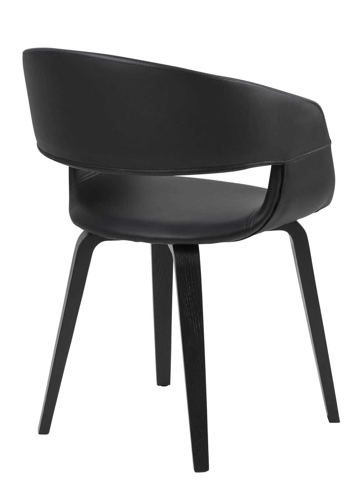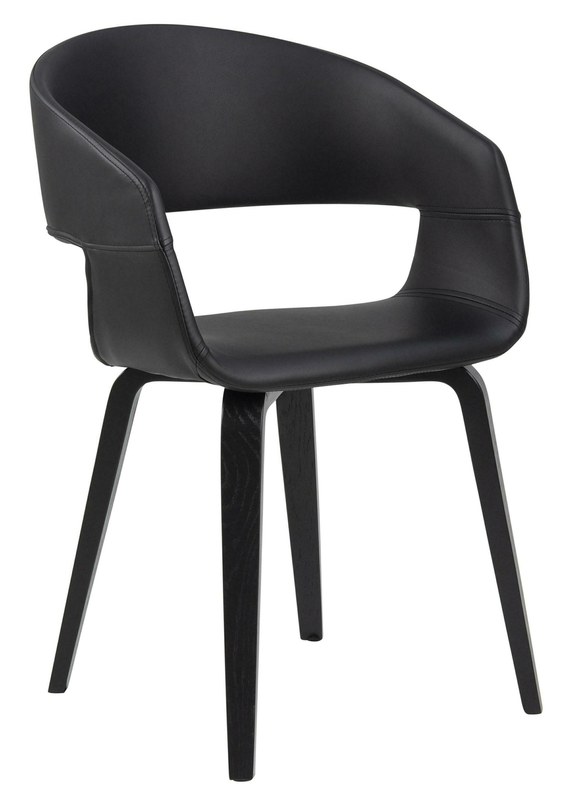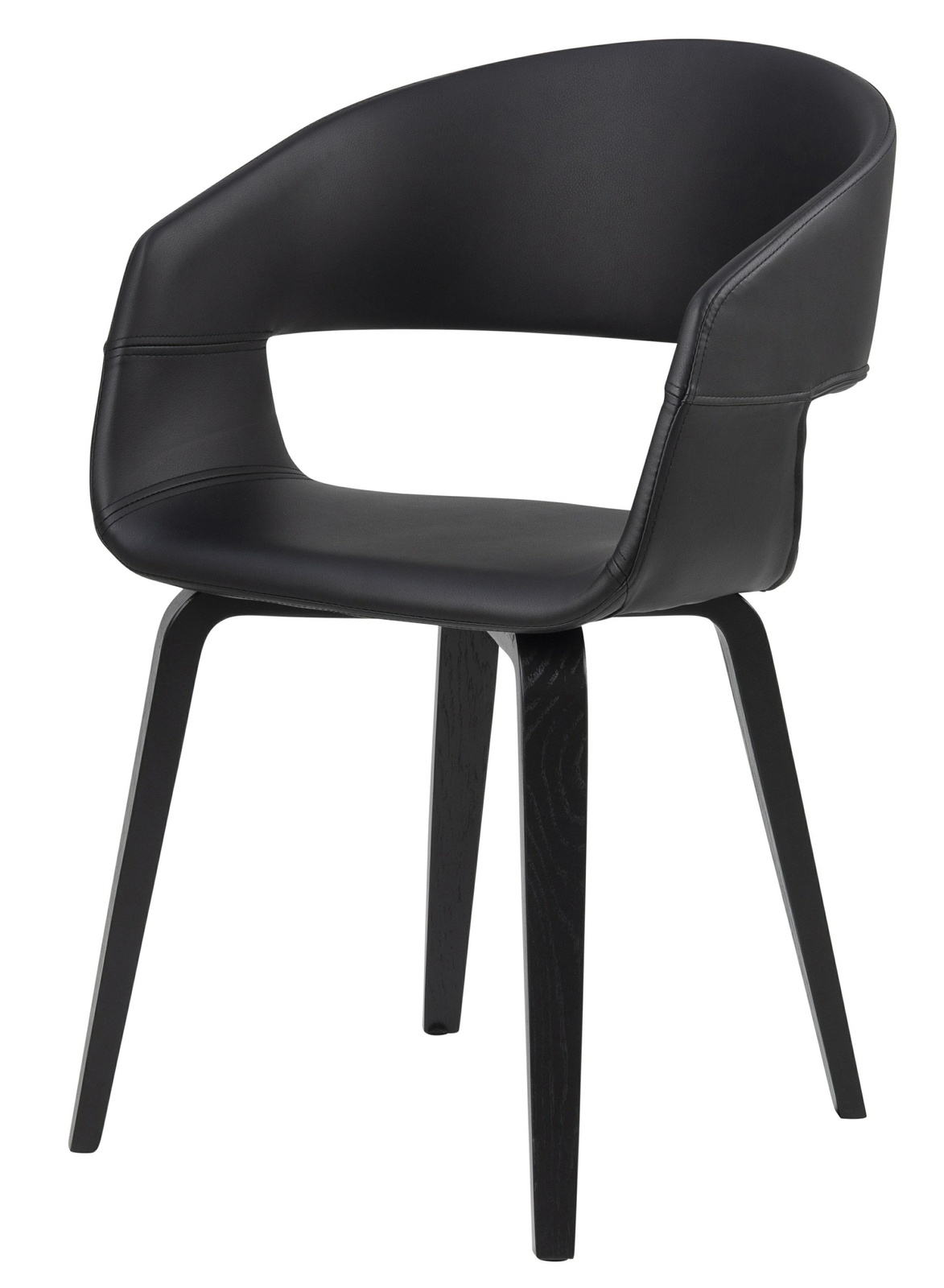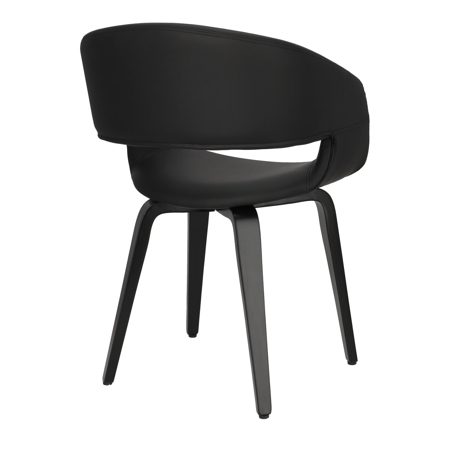 Ponadczasowe krzesło Nova o niebanalnym kształcie sprawdzi się zarówno w salonie, kuchni, jak i jadalni. Krzesło Nova wpasuje się do wnętrz w stylu nowoczesnym, skandynawskim, czy industrialnym. Cztery drewniane, krzyżujące się pod siedziskiem nóżki gwarantują odpowiednią stabilność i bezpieczeństwo. Zostały wykonane z giętego forniru dębowego pomalowanego na kolor czarny. Siedzisko zostało wykonane z wysokiej jakości czarnej skóry ekologicznej, która jest bardzo wytrzymała i pięknie się prezentuje. Półokrągłe wycięcie w oparciu sprawi, że krzesło Nova będzie niezwykle ciekawym elementem wystCechy produktu