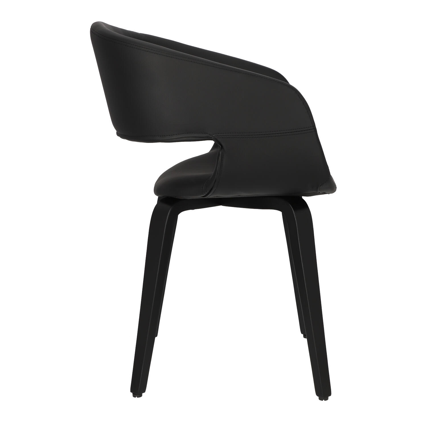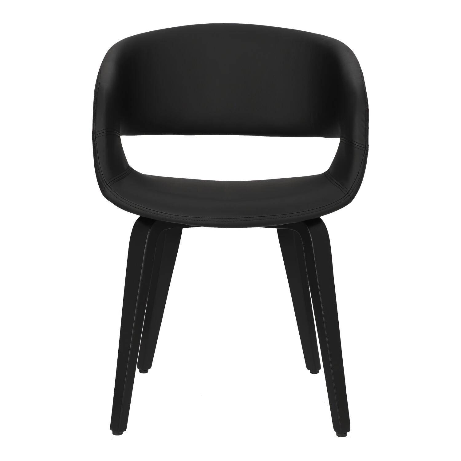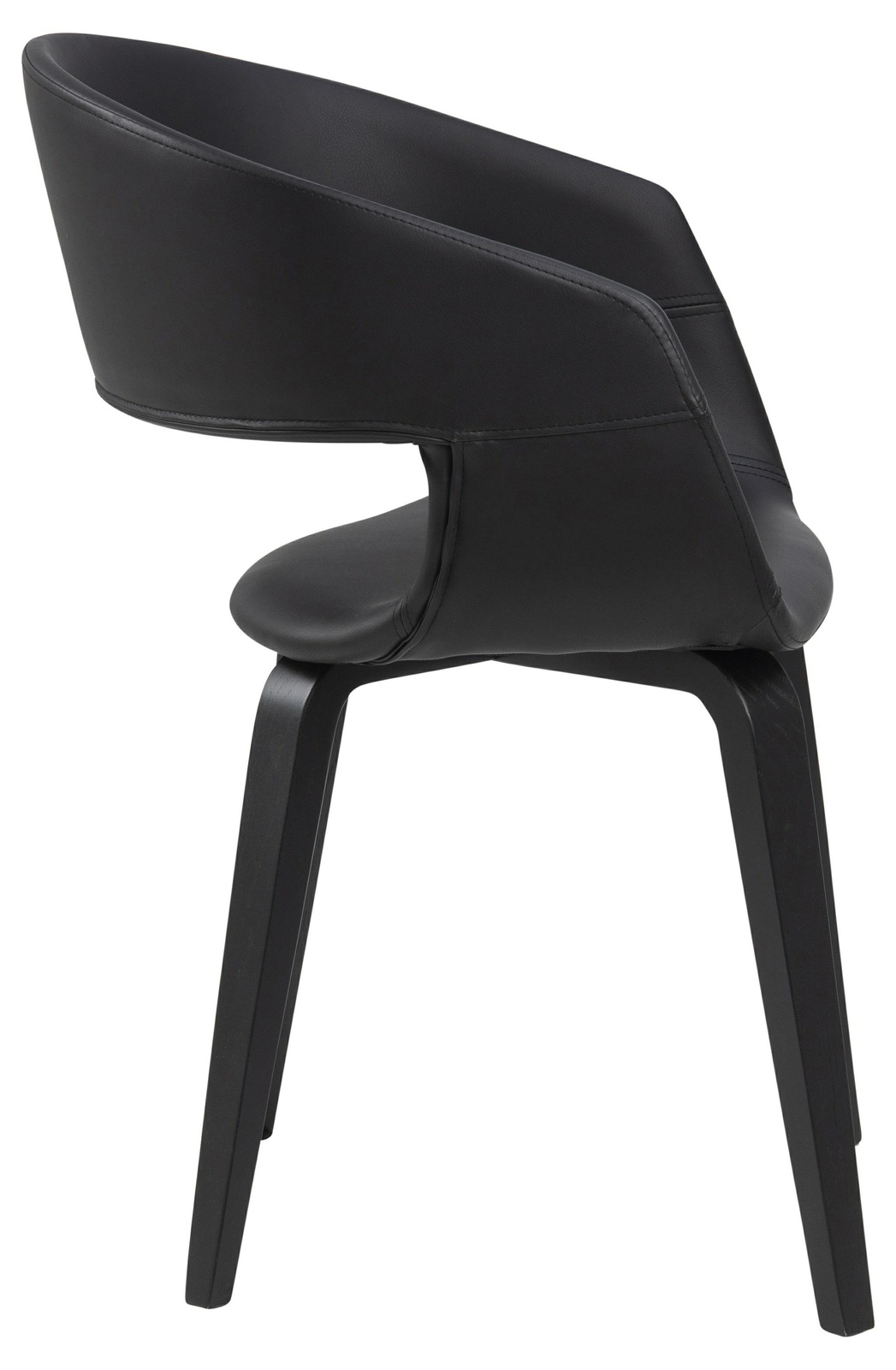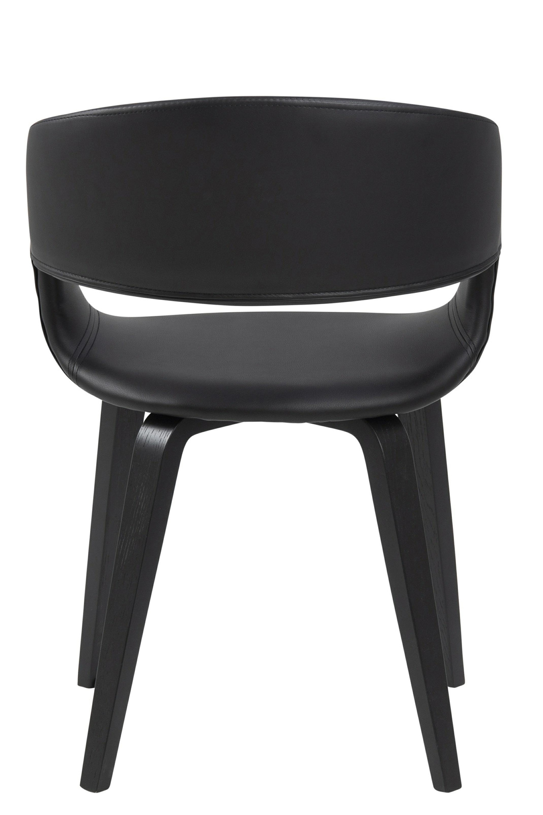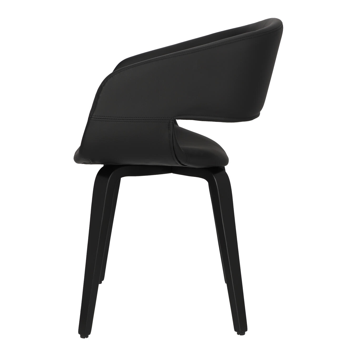 Ponadczasowe krzesło Nova o niebanalnym kształcie sprawdzi się zarówno w salonie, kuchni, jak i jadalni. Krzesło Nova wpasuje się do wnętrz w stylu nowoczesnym, skandynawskim, czy industrialnym. Cztery drewniane, krzyżujące się pod siedziskiem nóżki gwarantują odpowiednią stabilność i bezpieczeństwo. Zostały wykonane z giętego forniru dębowego pomalowanego na kolor czarny. Siedzisko zostało wykonane z wysokiej jakości czarnej skóry ekologicznej, która jest bardzo wytrzymała i pięknie się prezentuje. Półokrągłe wycięcie w oparciu sprawi, że krzesło Nova będzie niezwykle ciekawym elementem wystCechy produktu