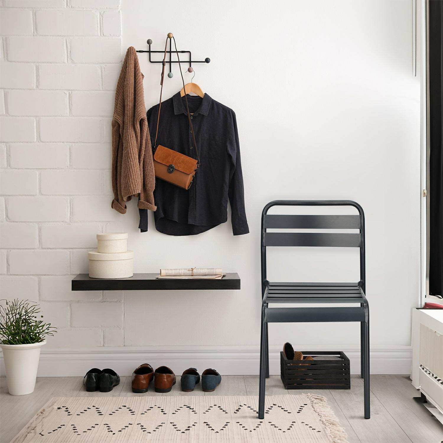 Wykonane w całości metalowe krzesło Terra to idealny mebel na balkon, taras lub do ogrodu. Minimalistyczne krzesło lakierowane proszkowo może być używane na zewnątrz. Poziome listwy krzesła gwarantują wentylację oraz wygodę użytkowania. Krzesło Terra sztapluje się. Można układać w stosy do 6 szt. Szerokość siedziska: 38 cm. Głębokość siedziska 38 cm. Grubość nóg 2,4 cm. Waga krzesła 5,5 kg Nie wymaga montażu Max. 4 szt w kartonie Wymiary kartonu: 88x62x50 cm. Waga kartonu: 24cmCechy produktu