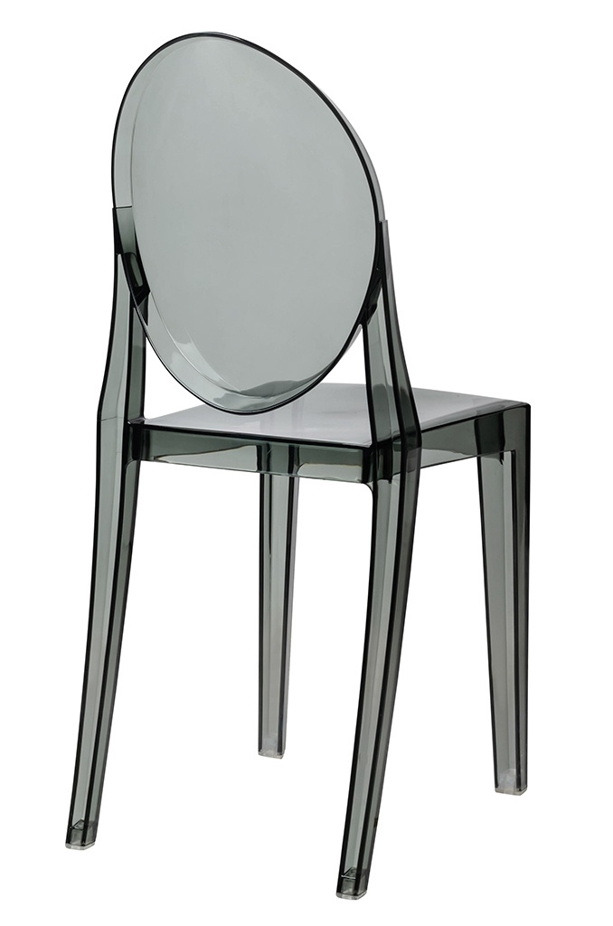 - Krzesło Victoria w całości wykonane zostało z dymionego poliwęglanu. Dzięki temu, optycznie zabiera mniej przestrzeni. Doskonale sprawdzi się w nowoczesnych i klasycznych wnętrzach. Wymiary: wys. 90,5 cm / szer. 38 cm / gł. 49,5 cm Wysokość do krawędzi si