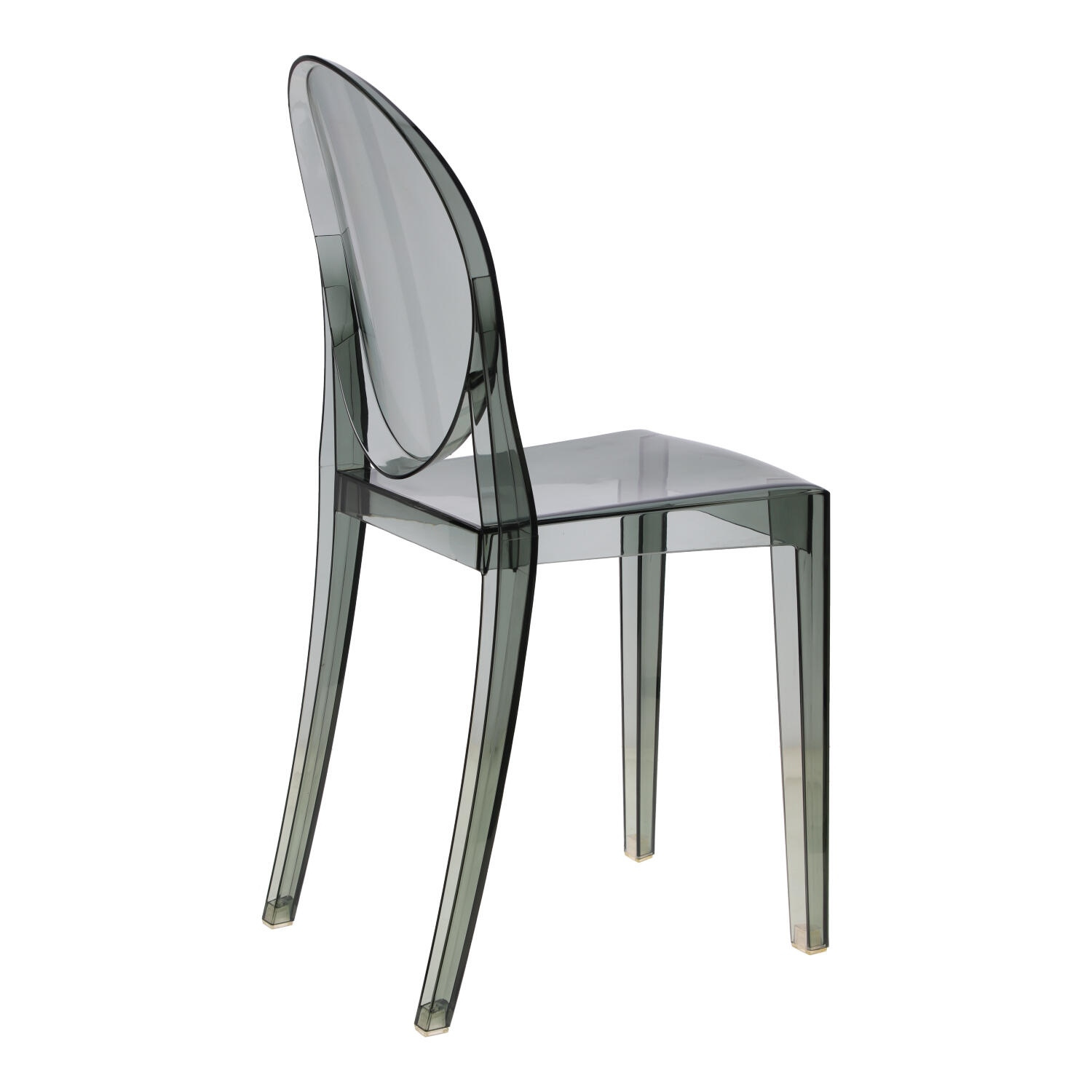 Wykonane z pojedynczego kawałka polycarbonatu, krzesło łączy w sobie czysty design i mocną strukturę z lekkością wyglądu. Zaokrąglona górna część,oparcia kontrastuje z kwadratowym siedziskiem tworząc niespodziewanie elegancką całość. Mimo delikatności formy, krzesło jest stabilne i solidne, a dodatkowo odporne na pogodę.,Prezentowany produkt jest inspirowany projektem Victoria.Maksymalne obciążenie wynosi 120kg Wymiar kartonu: 64x104x38cmCechy produktu