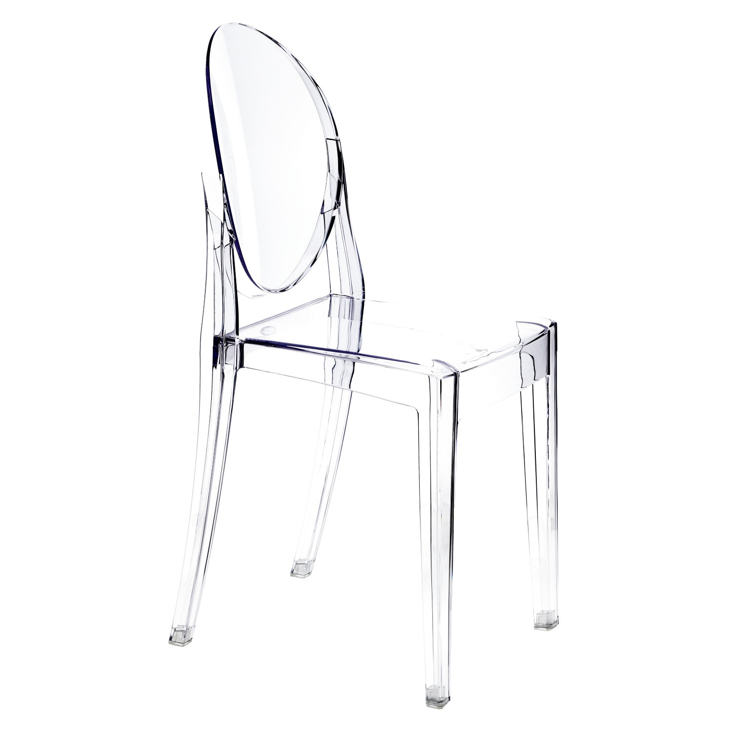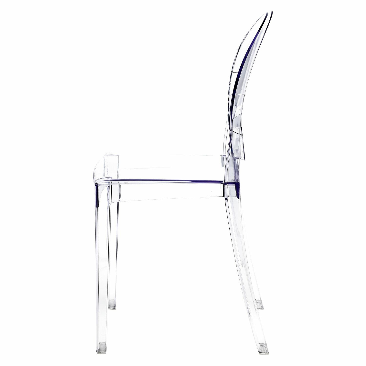 Wykonane z pojedynczego kawałka polycarbonatu, krzesło łączy w sobie czysty design i mocną strukturę z lekkością wyglądu. Zaokrąglona górna część,oparcia kontrastuje z kwadratowym siedziskiem tworząc niespodziewanie elegancką całość. Mimo delikatności formy, krzesło jest stabilne i solidne, a dodatkowo odporne na pogodę.,Prezentowany produkt jest inspirowany projektem Victoria.Maksymalne obciążenie wynosi 120kg Wymiar kartonu: 64x104x38cmCechy produktu