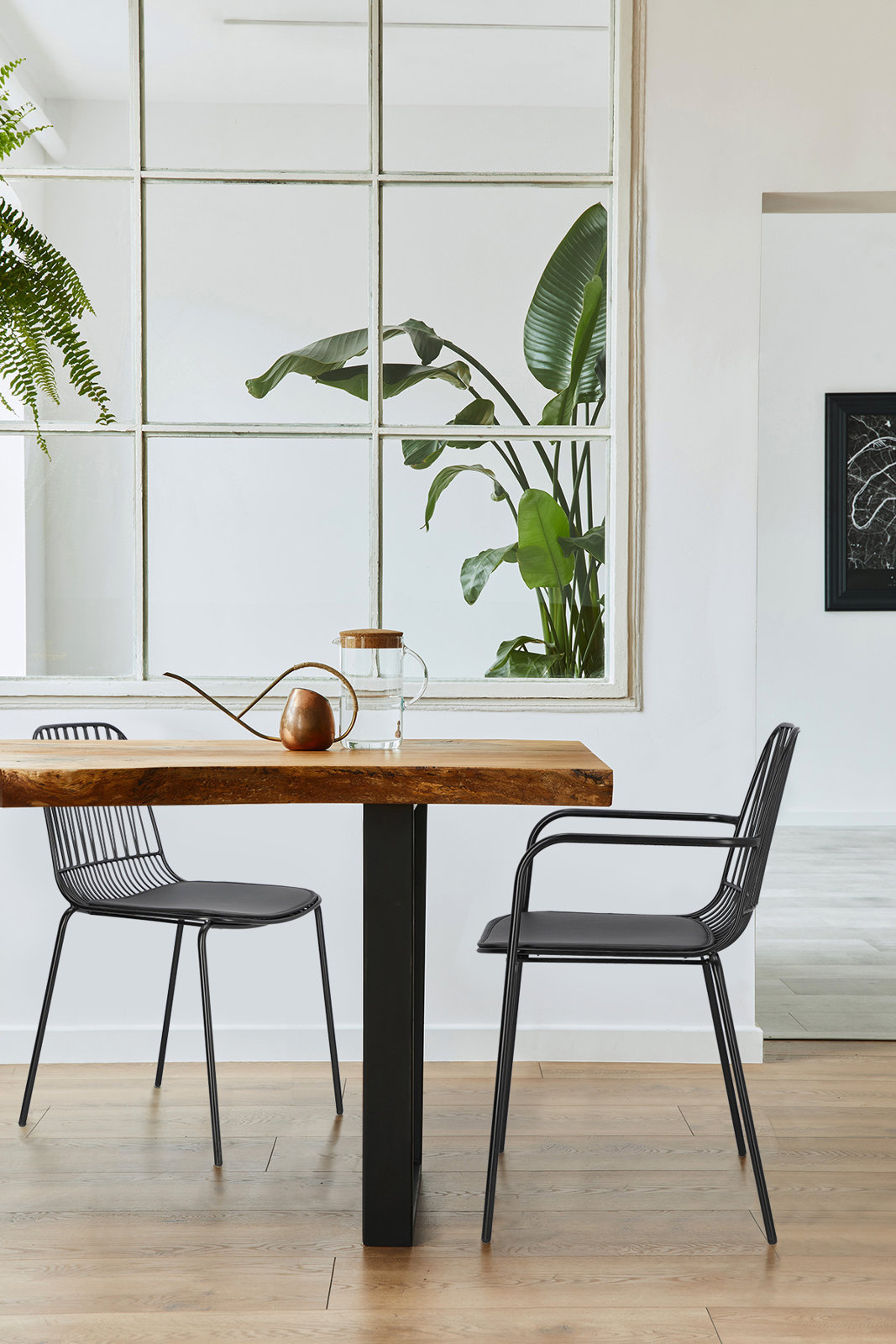 Czarne metalowe krzesło Willy z podłokietnikami to industrialny mebel, który zachwyli swoim designem. Krzesła Willy zostały pomalowane proszkowo na czarno. Półmatowe wykończenie krzeseł dodaje im klasycznego i stonowanego wyglądu. Krzesło zostało wyprodukowane z precyzyjnie połączonych ze sobą metalowych wsporników. Siedzisko krzesła wyposażone jest w miękką poduszkę z pianki tapicerskiej, która obszyta została eko skórą. Nogi krzesła zostały zabezpieczone stopkami z tworzywa, które zapobiegają rysowaniu się podłogi. Szerokość siedziska; 44,5 cm Głębokość siedziska: 45 cm Waga krzesła: 6 kg Wymiary opakowania: 67x91x58 cm Max. 4szt. w kartonieCechy produktu