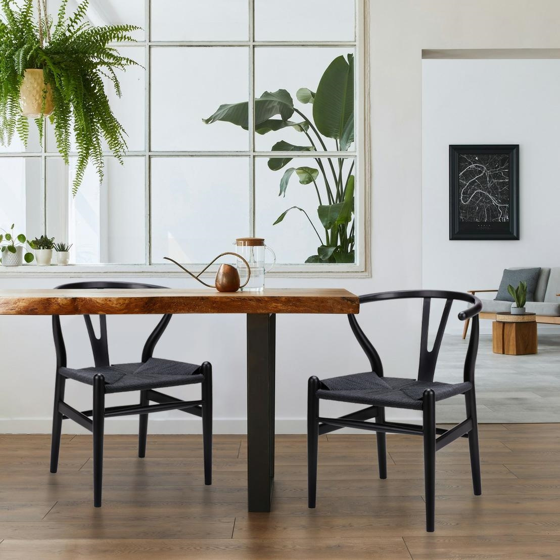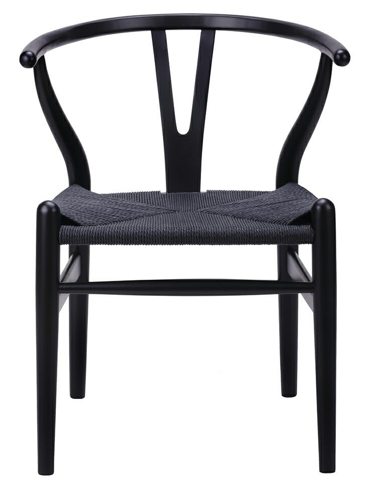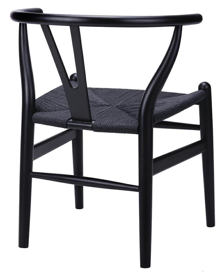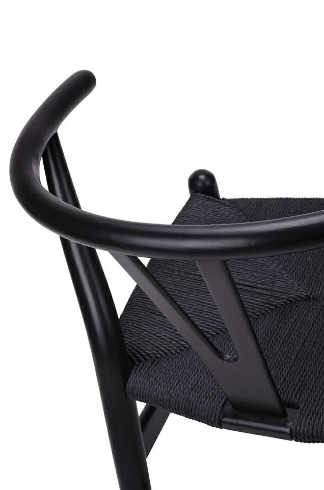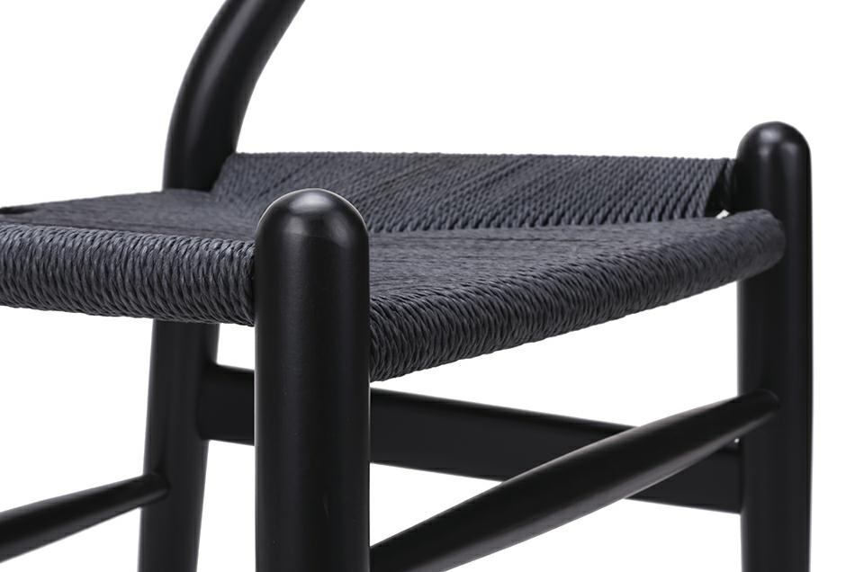 • Krzesło WISHBONE czarne - drewno bukowe, czarne włókno. Połączenie rzemieślniczego kunsztu z ponadczasową estetyką. Konstrukcja wykonana z litego drewna bukowego w kolorze czarnym zachwyca swoją trwałością i eleganckim wykończeniem. Siedzisko z naturalnyc