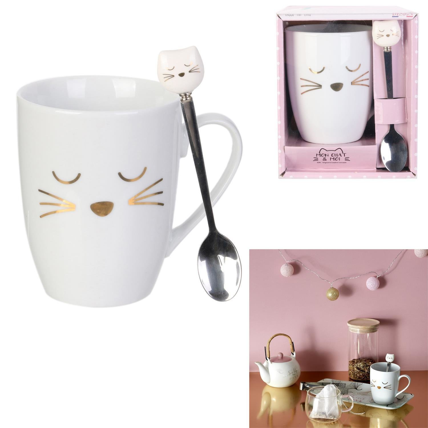 Kubek Kotek z łyżeczką 350 ml | Akcesoria \ Akcesoria kuchenne | Elite Living – Wyszukane meble i oświetlenie do domu, biura i ogrodu.