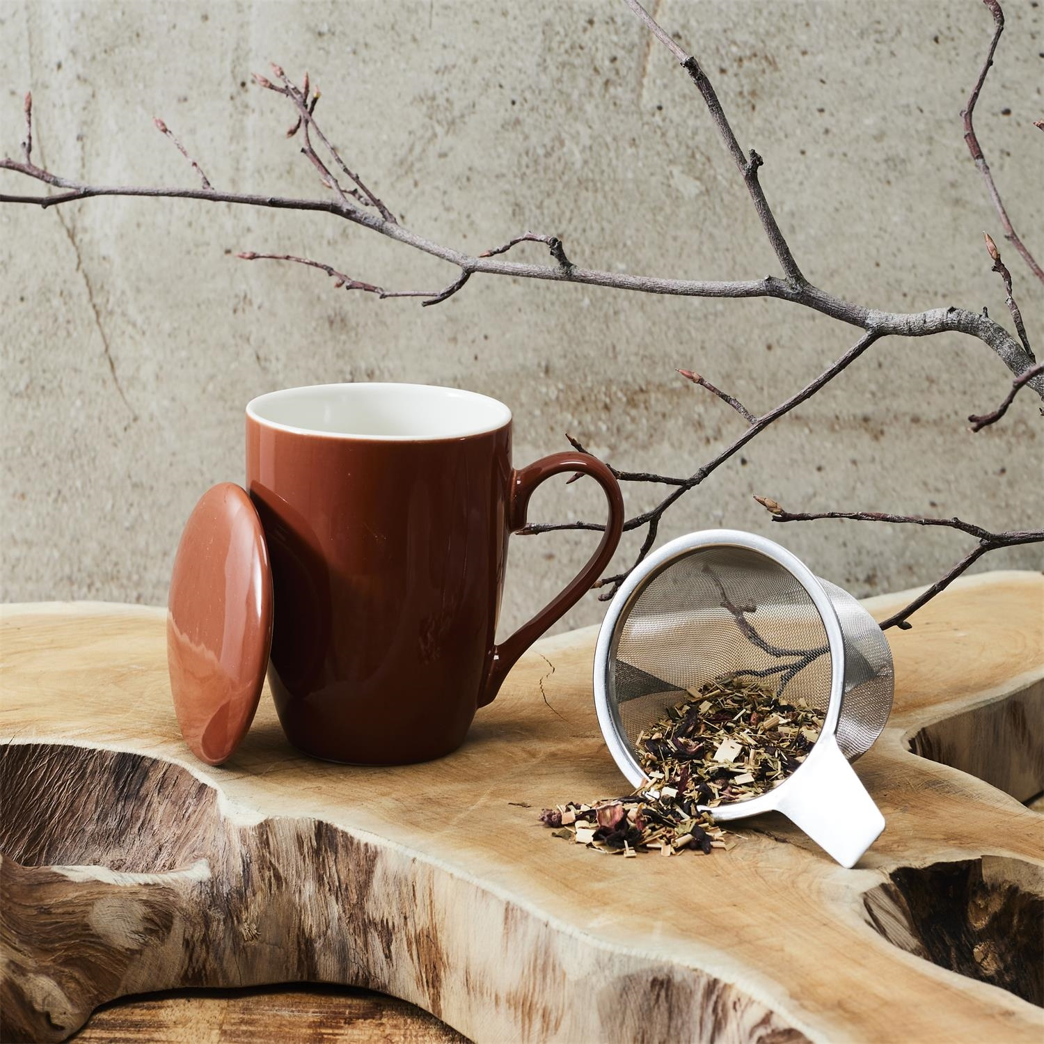 Kubek Mira pomarańczowy z zaparzaczem i pokrywką