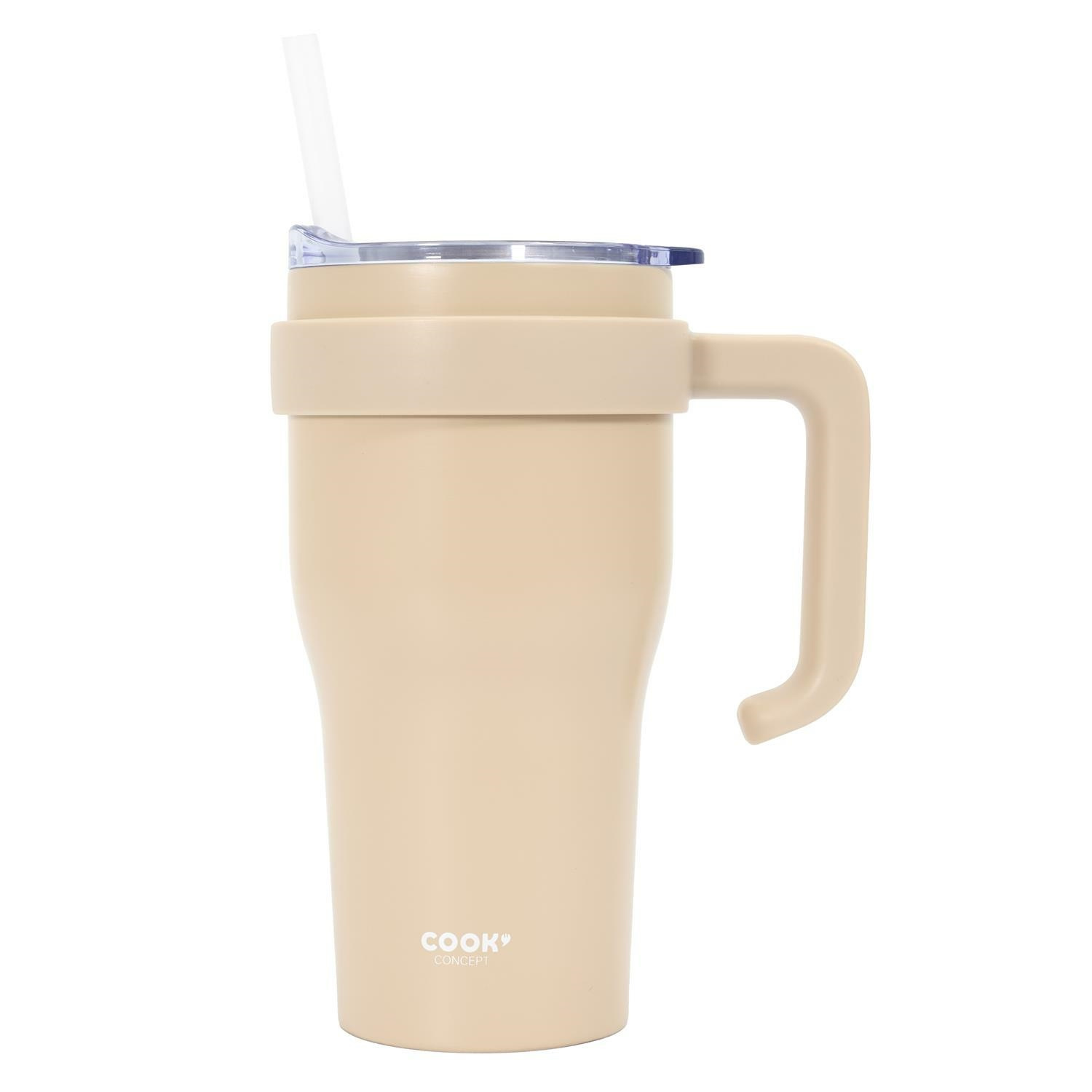 Kubek termiczny z uchwytem i słomką Miami 600ml beżowy | | Elite Living – Wyszukane meble i oświetlenie do domu, biura i ogrodu.