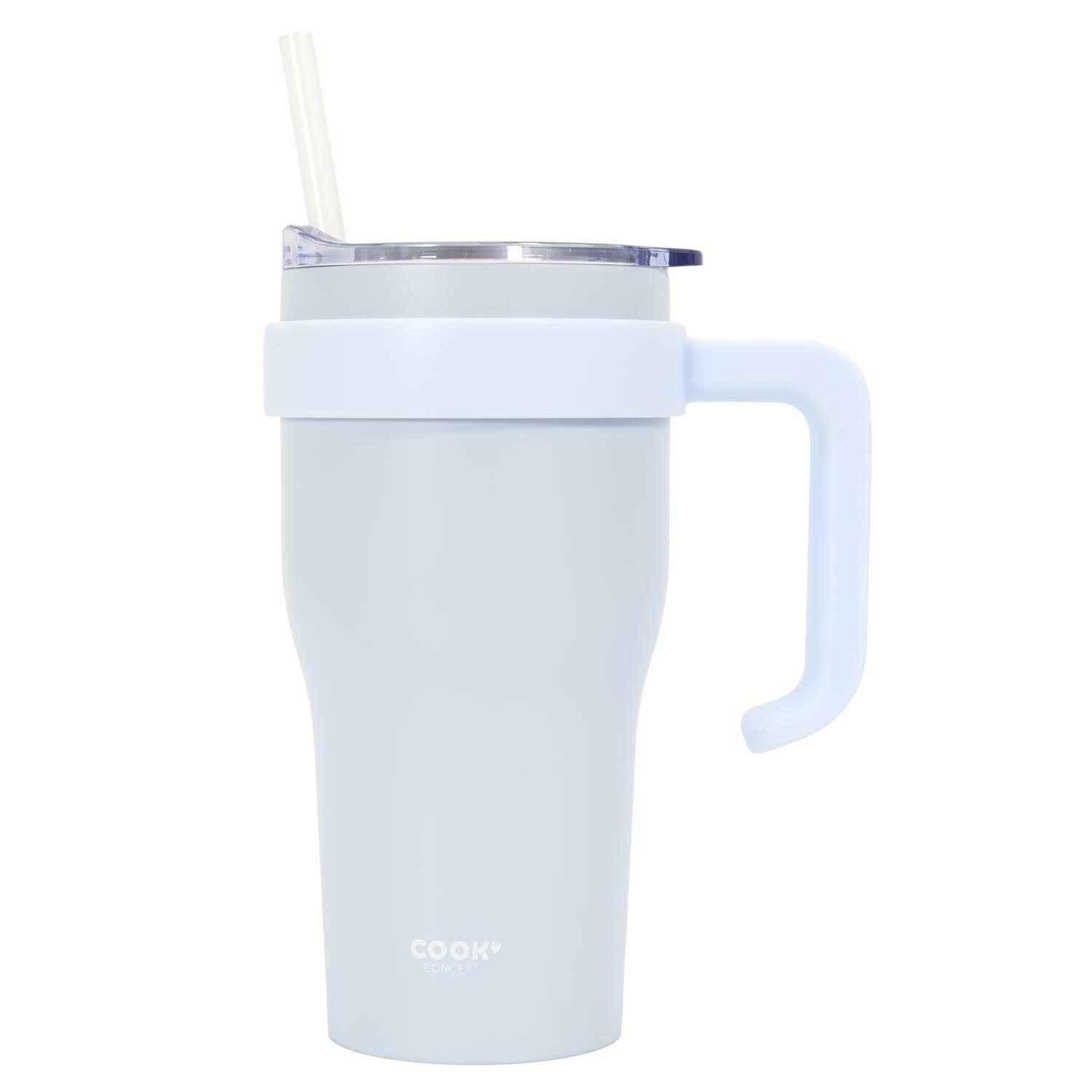 Kubek termiczny z uchwytem i słomką Miami 600ml biały