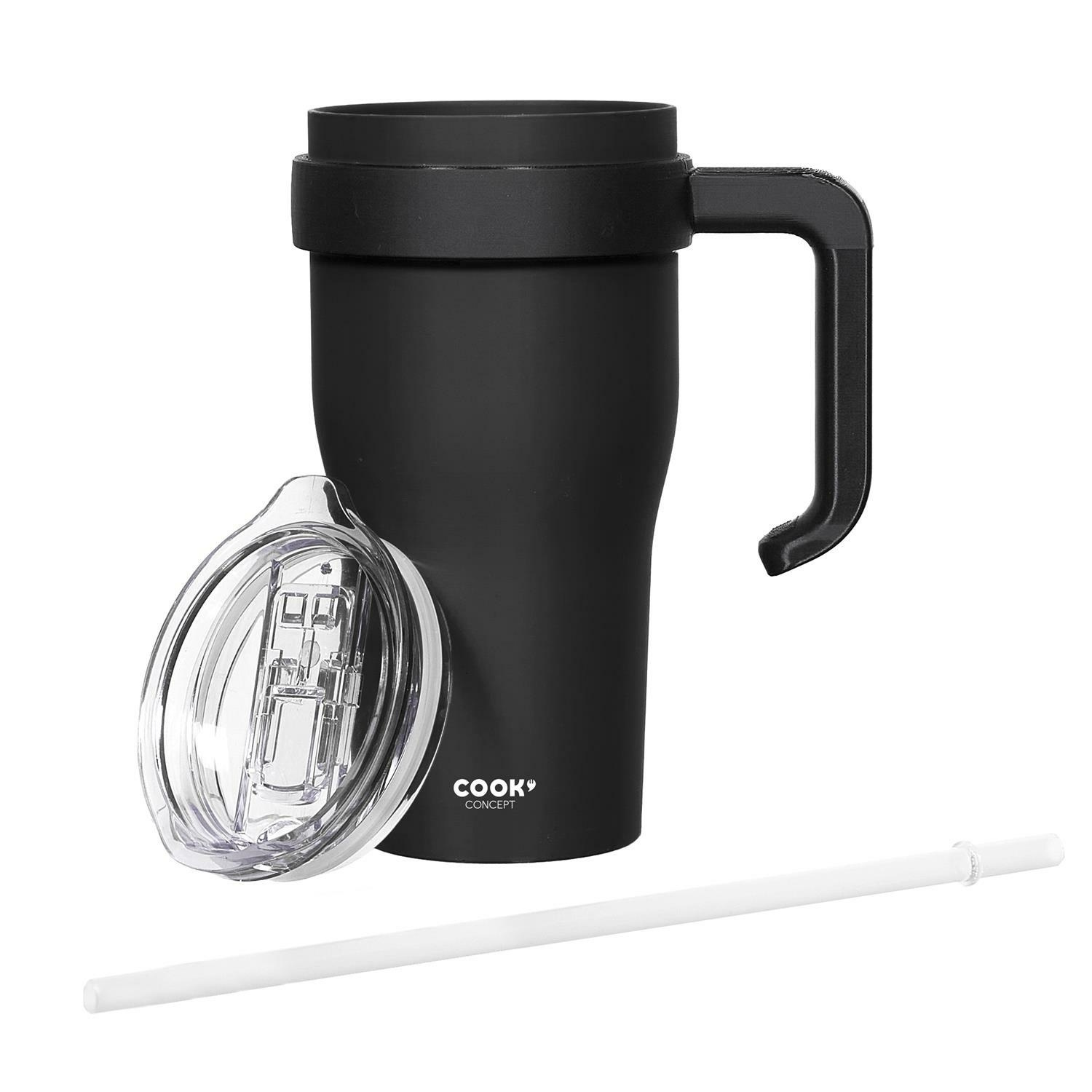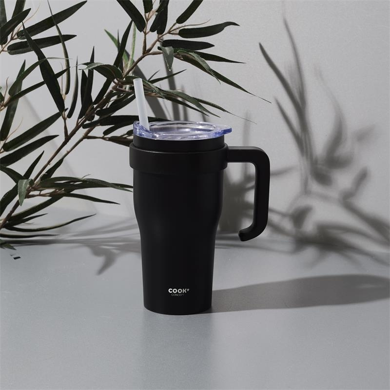 Kubek termiczny z uchwytem i słomką Miami 600ml czarny