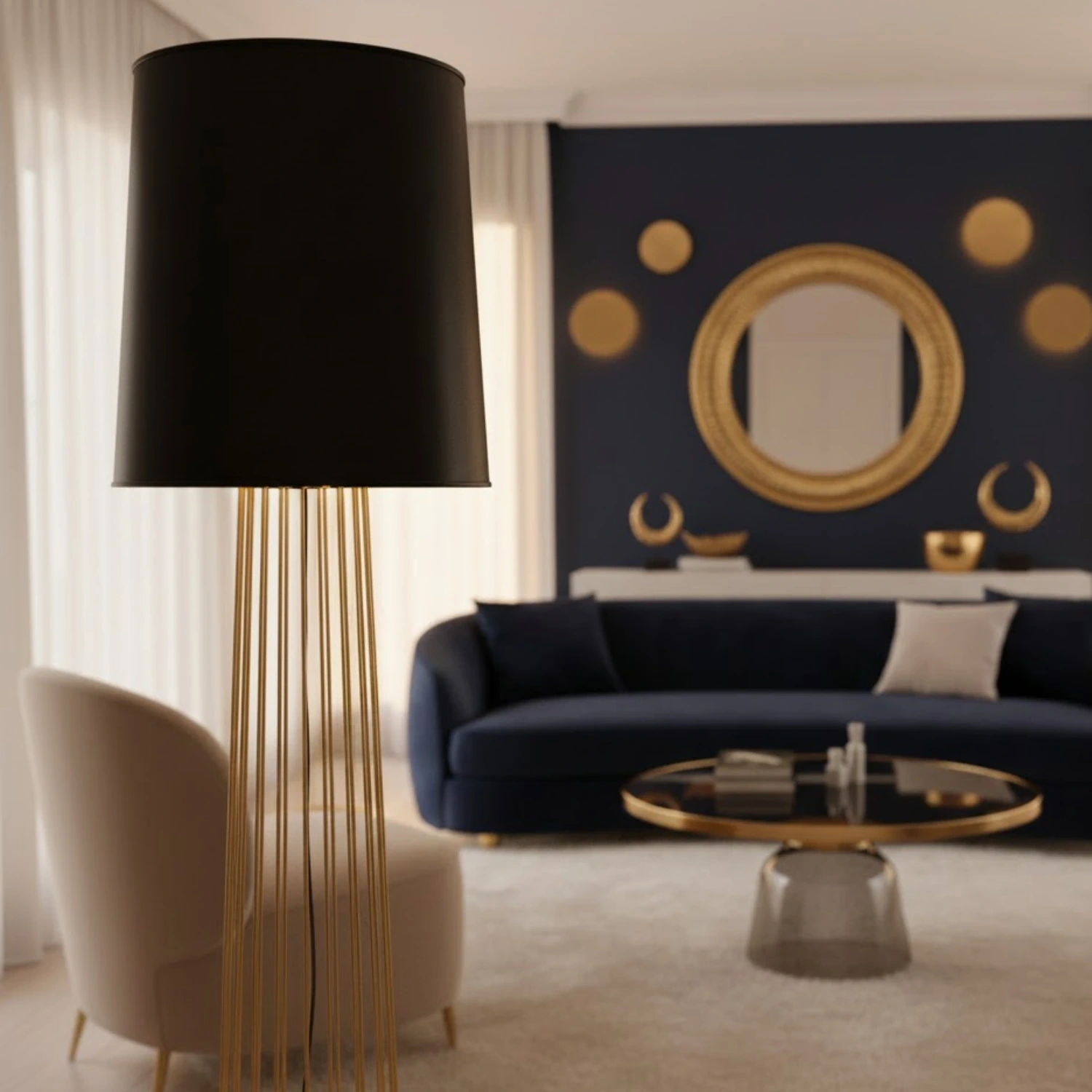 Lampa podłogowa FILO-2 to klasyczna oprawa oświetleniowa o prostych proporcjach i luksusowym wykończeniu. Połączenie czerni i złota wpisuje się w aktualne trendy wnętrzarskie oraz ponadczasowe projekty.