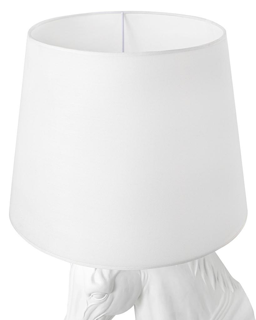 Lampa Horse Stand S w kształcie konia. Jeżeli lubisz trochę ekstrawagancji, ta lampa jest dla ciebie. Będzie głównym elementem wystroju każdego pomieszczenia. W całości wykonana została z włókna szklanego w kolorze białym ,matowym. Ruchomy klosz umożliwia regulację kąta padania światła. Całość umieszczono na marmurowej podstawie. Światło: E27 max. 40 W (brak w zestawie) Oprawa: wys. 120 cm / szer. 40 cm / gł. 45 cm Klosz: wys. 40 cm / śr. 40 cm Tułów: wys. 90 cm Podstawa: śr. 25 cm / śr. 25cm Przewód: 220 cm Waga netto: 25 kg Sposób wysyłki: paleta.Cechy produktu