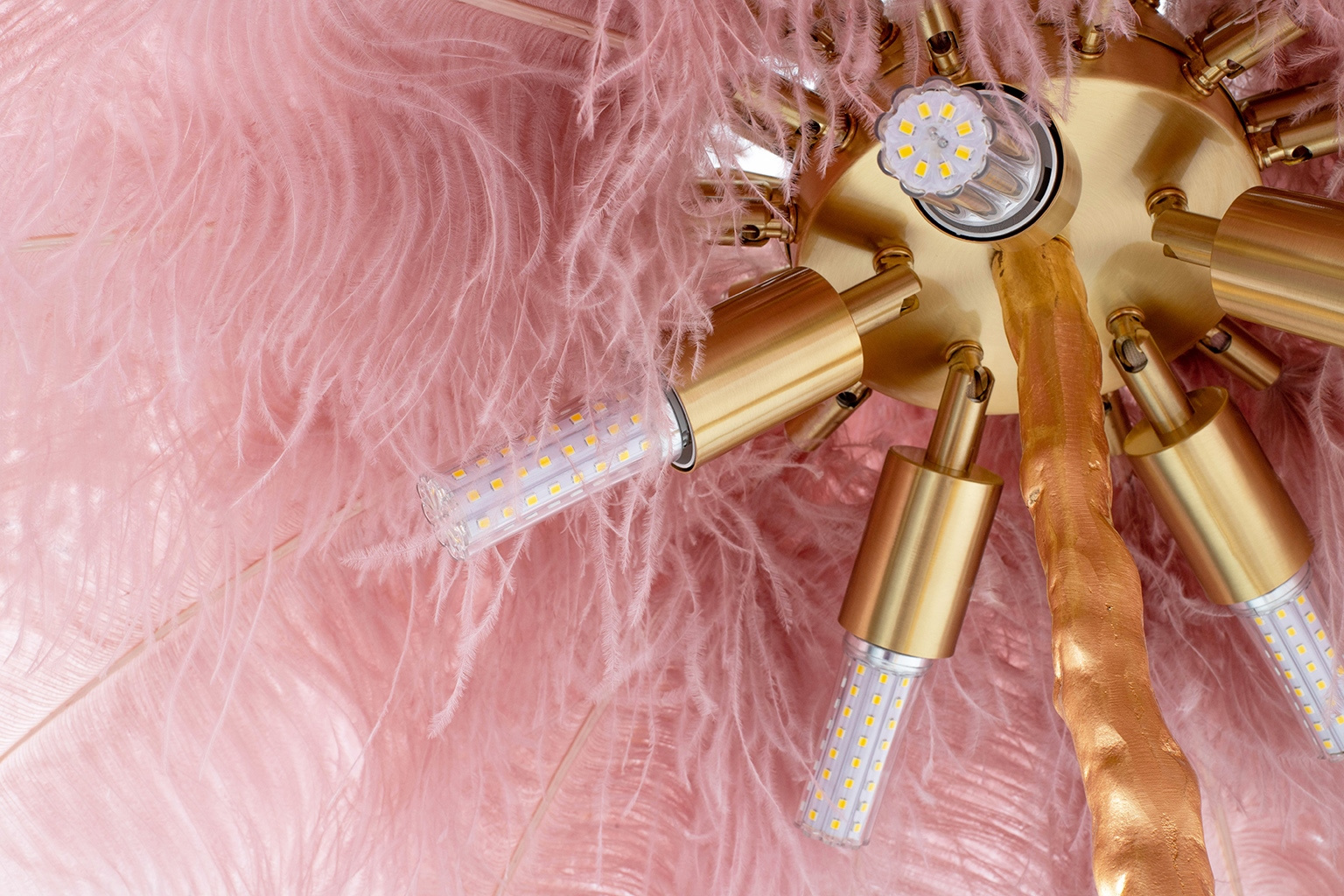 Lampa podłogowa TIFFANY 175 różowa mosiądz / naturalne pióra